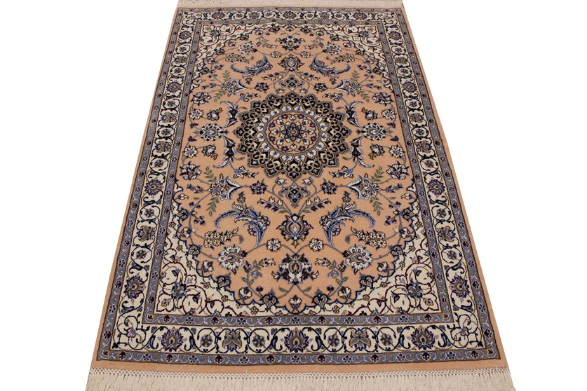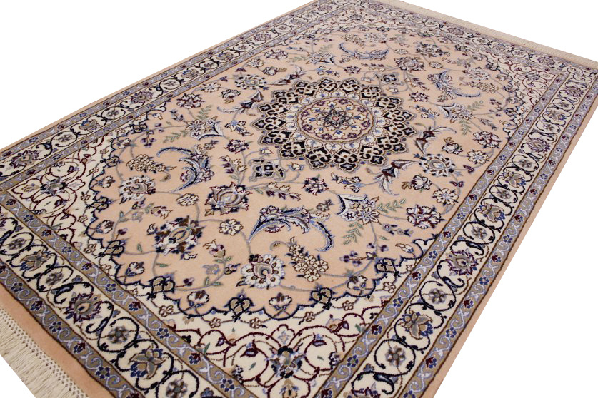 Die Stadt Nain in der Nähe von Isfahan im Zentralpersien ist bekannt für ihre feinen Teppiche, die mehr als eine Million Knoten pro Quadratmeter haben können. Je feiner die Kette, desto feiner kann auch die Knüpfung sein. In der Regel gibt es vier Qualitäten: Nain-Kaschmar (grob geknüpft), Nain-Noh-La (Baumwollfaden der Kette aus 9 Fasern gezwirnt, wodurch 40 Raj auf 7 cm kommen), Nain-Schisch-La (6 Fasern entsprechend 60 Raj), Nain-Tchaha-La (4 Fasern entsprechend 80 Raj). Alle Nain Teppiche sind durchgemustert und mit Medaillon.