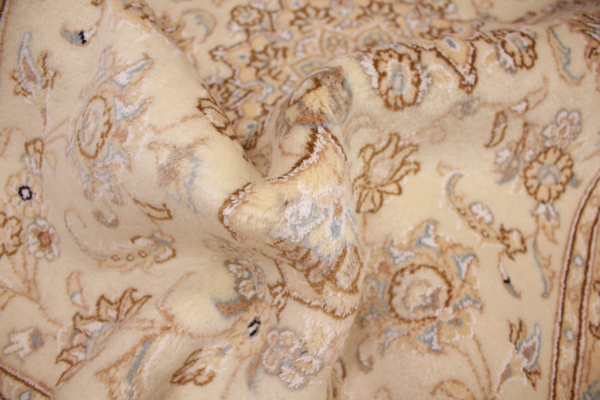 Die Stadt Nain in der Nähe von Isfahan im Zentralpersien ist bekannt für ihre feinen Teppiche, die mehr als eine Million Knoten pro Quadratmeter haben können. Je feiner die Kette, desto feiner kann auch die Knüpfung sein. In der Regel gibt es vier Qualitäten: Nain-Kaschmar (grob geknüpft), Nain-Noh-La (Baumwollfaden der Kette aus 9 Fasern gezwirnt, wodurch 40 Raj auf 7 cm kommen), Nain-Schisch-La (6 Fasern entsprechend 60 Raj), Nain-Tchaha-La (4 Fasern entsprechend 80 Raj). Alle Nain Teppiche sind durchgemustert und mit Medaillon.