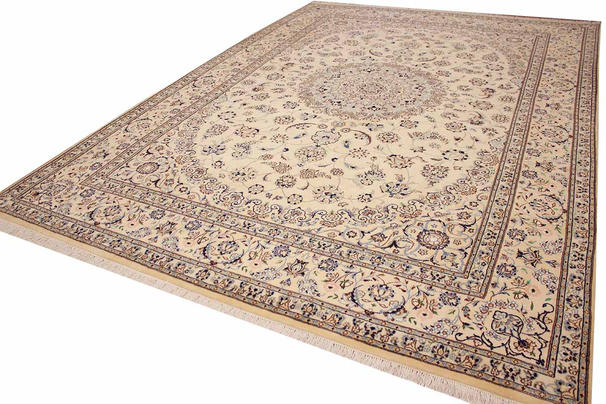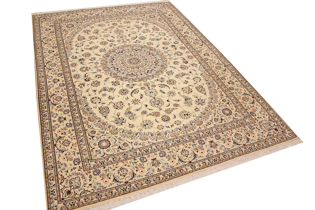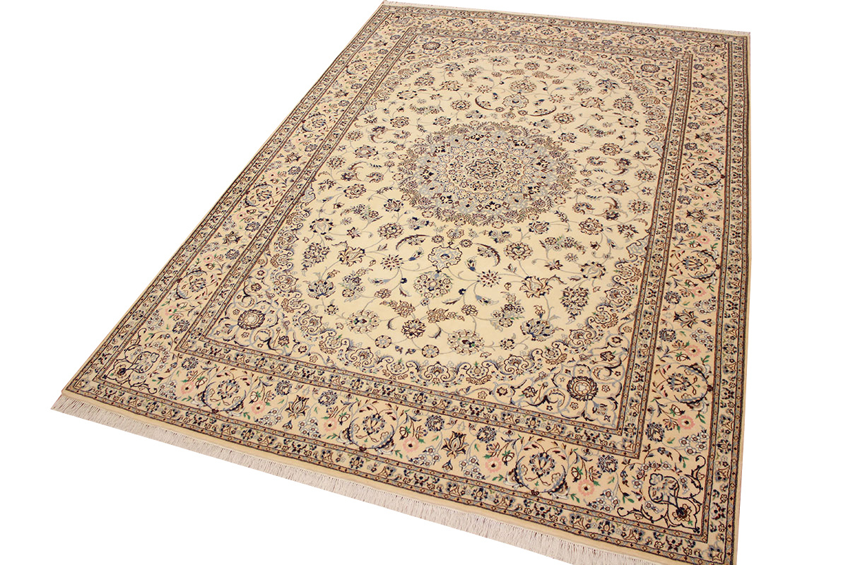 Perserteppich Nain 9la mit Seide 350x250 cm Beige