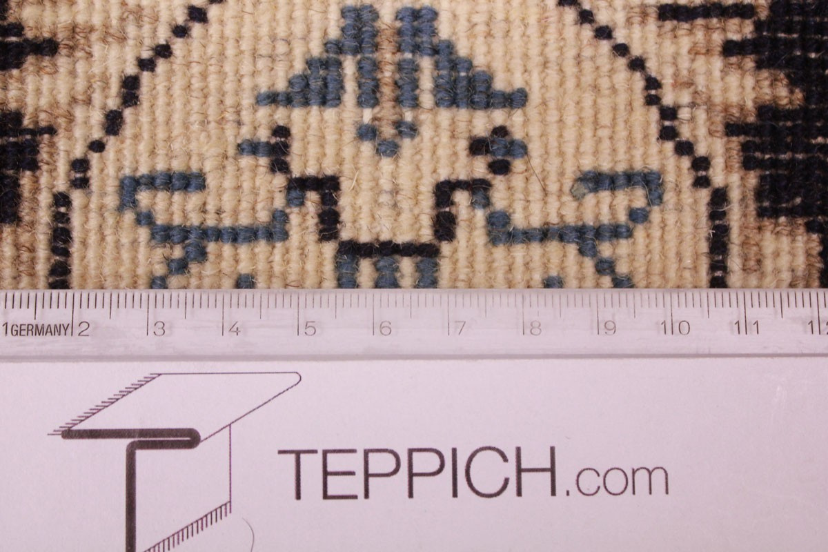 Die Stadt Nain in der Nähe von Isfahan im Zentralpersien ist bekannt für ihre feinen Teppiche, die mehr als eine Million Knoten pro Quadratmeter haben können. Je feiner die Kette, desto feiner kann auch die Knüpfung sein. In der Regel gibt es vier Qualitäten: Nain-Kaschmar (grob geknüpft), Nain-Noh-La (Baumwollfaden der Kette aus 9 Fasern gezwirnt, wodurch 40 Raj auf 7 cm kommen), Nain-Schisch-La (6 Fasern entsprechend 60 Raj), Nain-Tchaha-La (4 Fasern entsprechend 80 Raj). Alle Nain Teppiche sind durchgemustert und mit Medaillon.