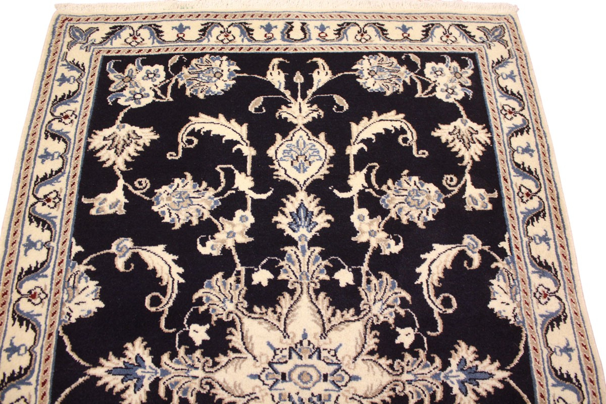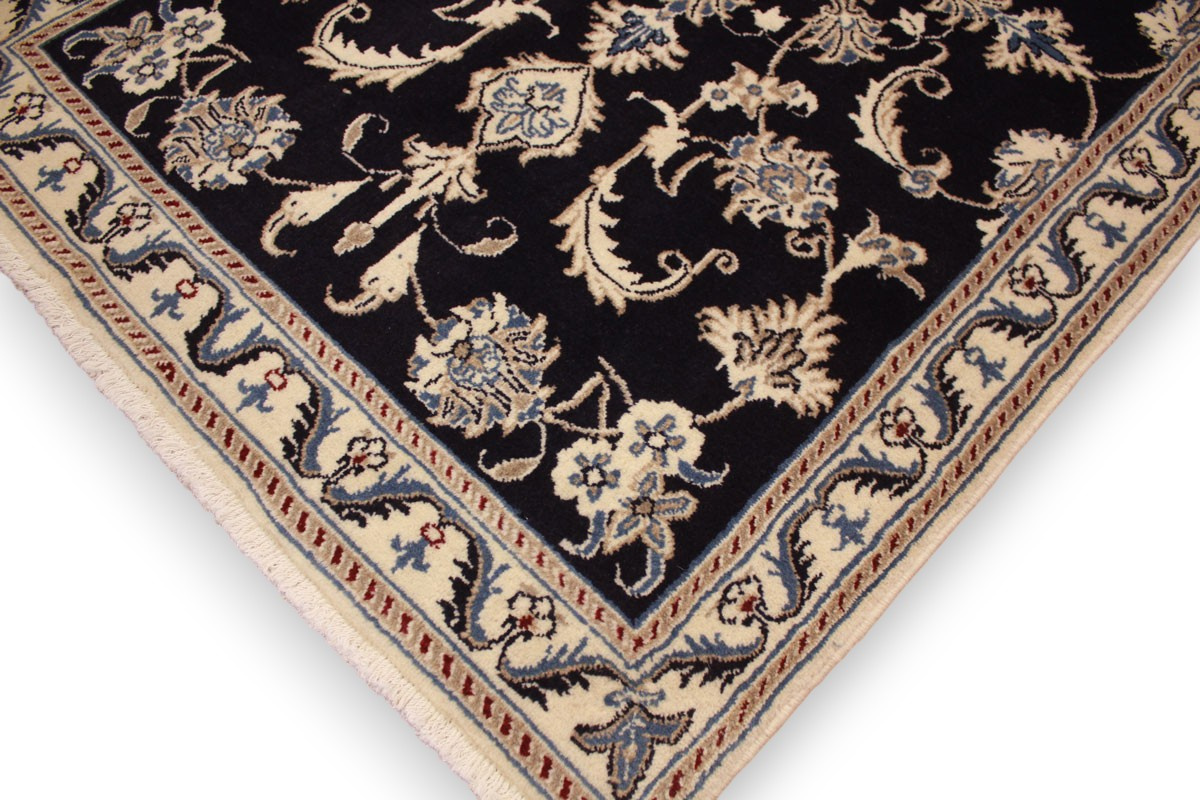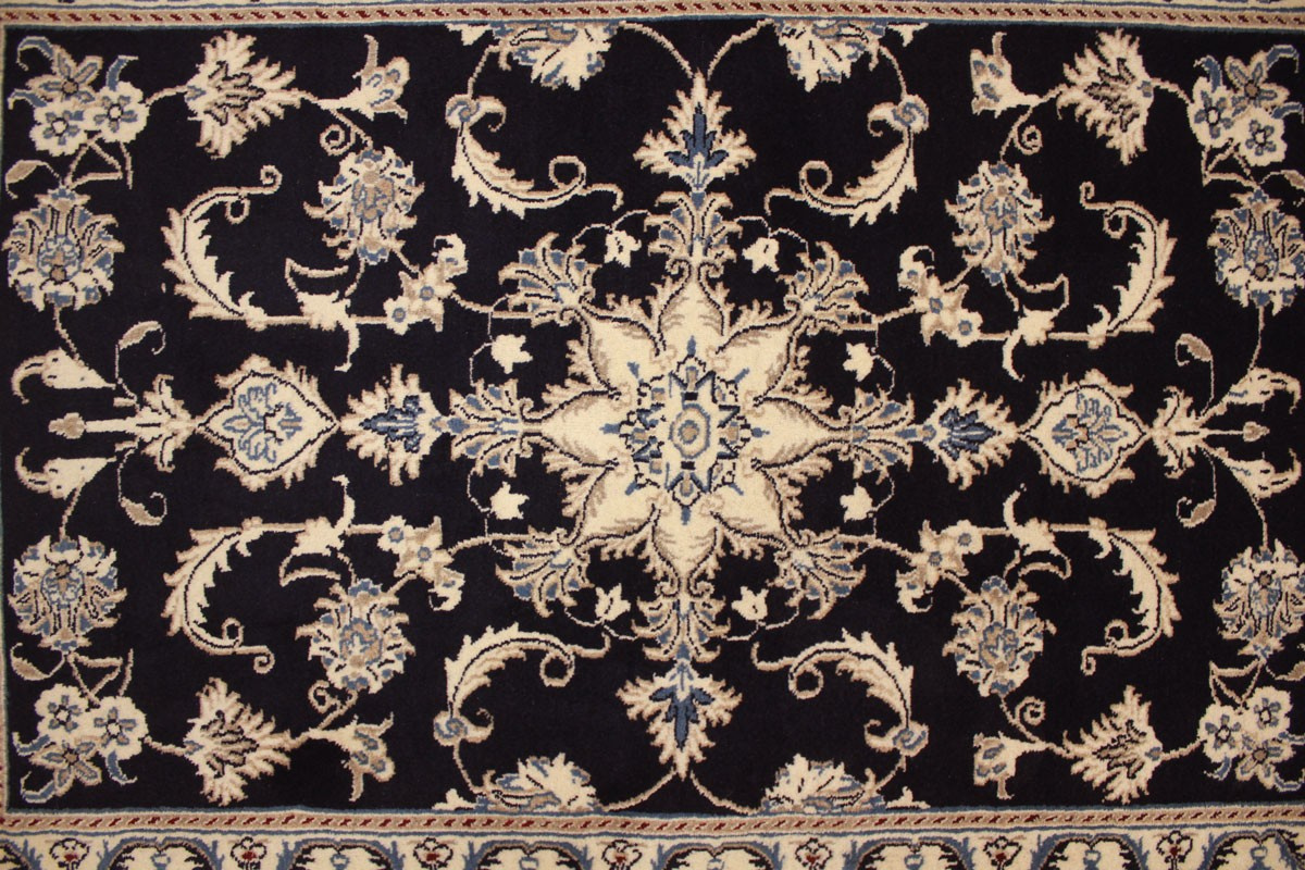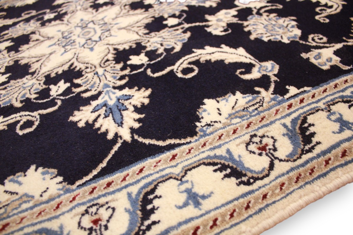 Perserteppich Nain mit Seide 148x86 cm Dunkelblau