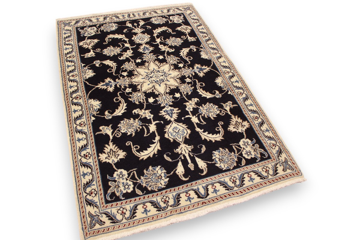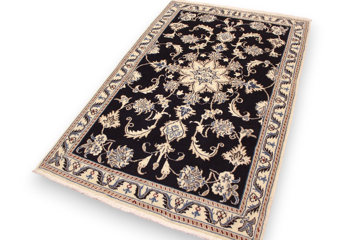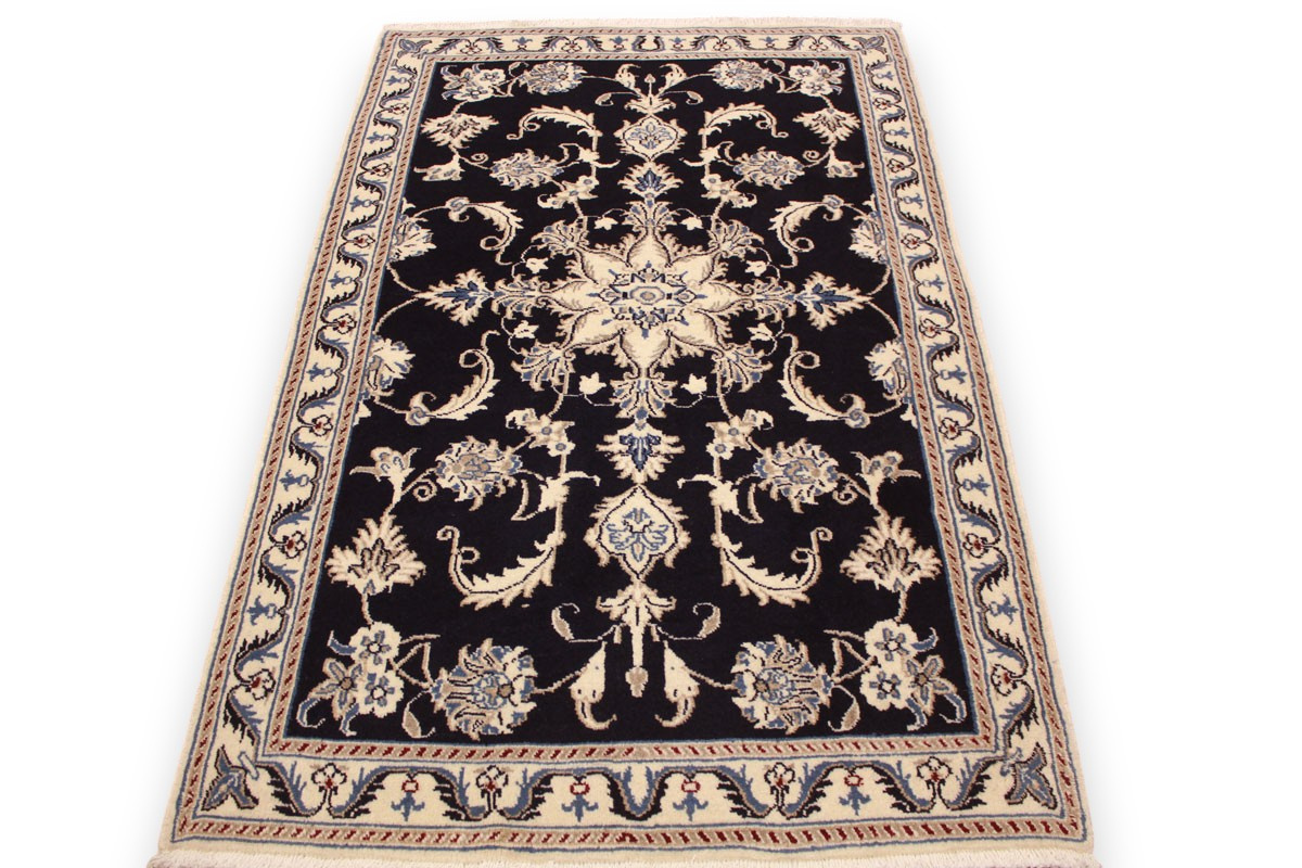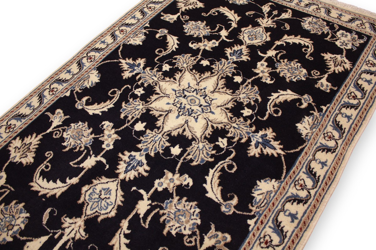 Perserteppich Nain mit Seide 148x86 cm Dunkelblau