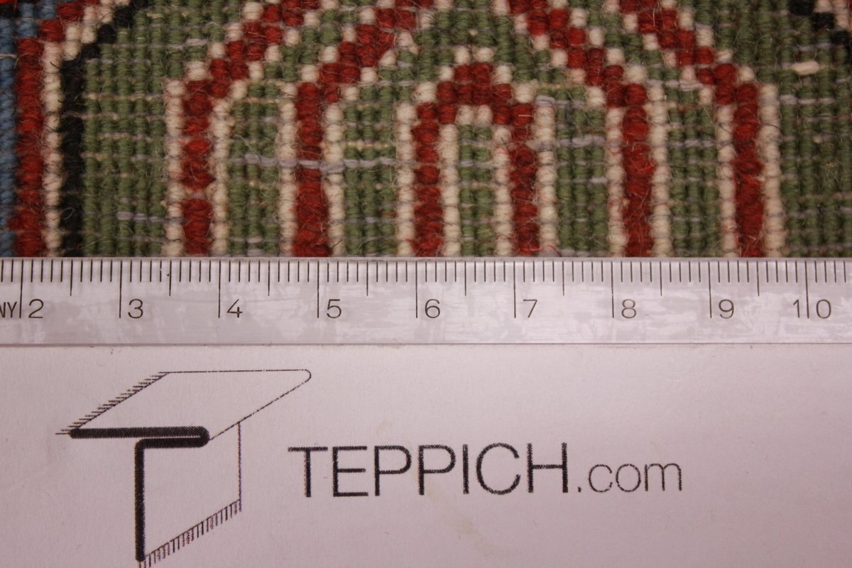 Trotz der vielseitigen Farbpalette hat der Gom-Teppich niemals grelle Farkontraste, sondern achtet auf eine harmonische Farbabstimmung. Bemerkenswert ist auch die äußerst exakte Knüpfung, die fast an Maschinenarbeit erinnert.