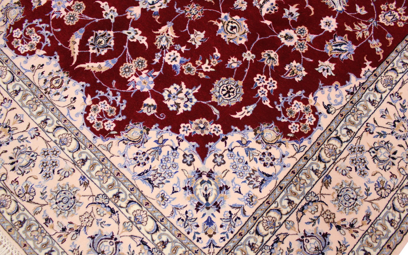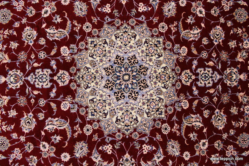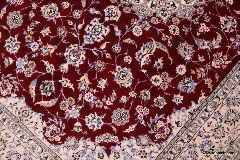Die Stadt Nain in der Nähe von Isfahan im Zentralpersien ist bekannt für ihre feinen Teppiche, die mehr als eine Million Knoten pro Quadratmeter haben können. Je feiner die Kette, desto feiner kann auch die Knüpfung sein. In der Regel gibt es vier Qualitäten: Nain-Kaschmar (grob geknüpft), Nain-Noh-La (Baumwollfaden der Kette aus 9 Fasern gezwirnt, wodurch 40 Raj auf 7 cm kommen), Nain-Schisch-La (6 Fasern entsprechend 60 Raj), Nain-Tchaha-La (4 Fasern entsprechend 80 Raj). Alle Nain Teppiche sind durchgemustert und mit Medaillon.