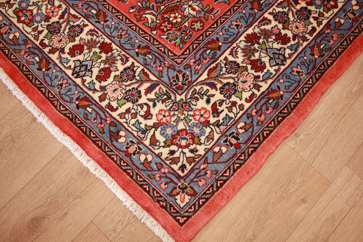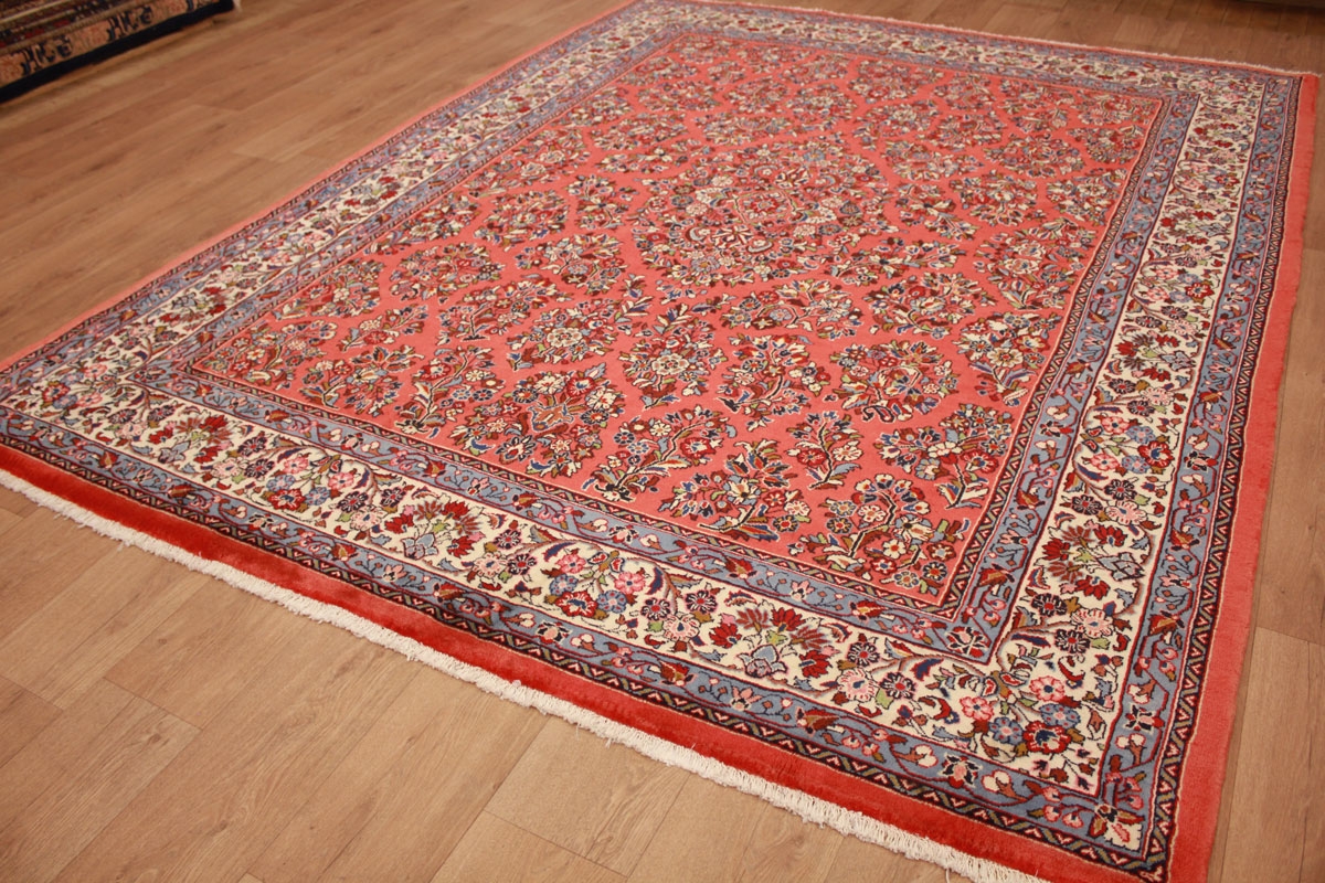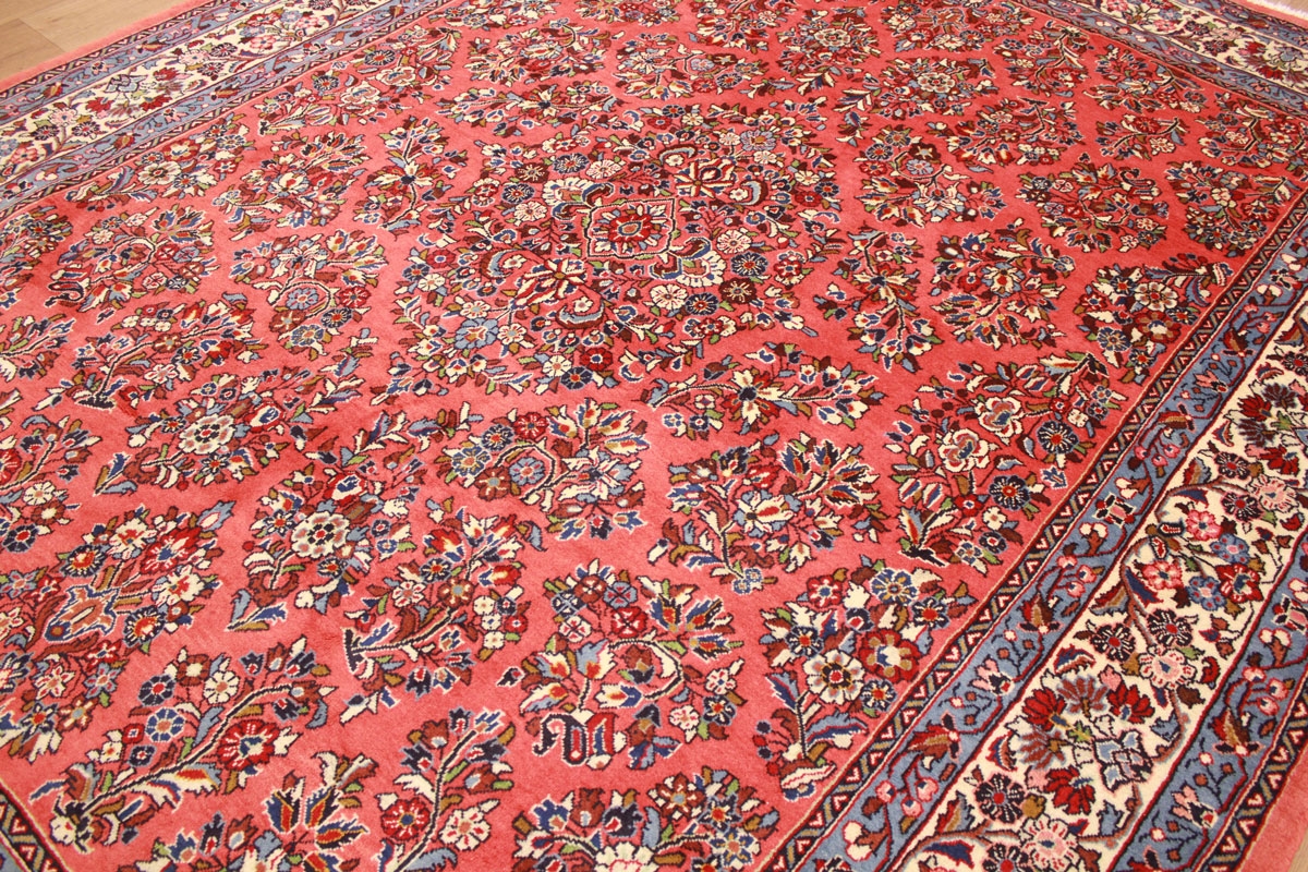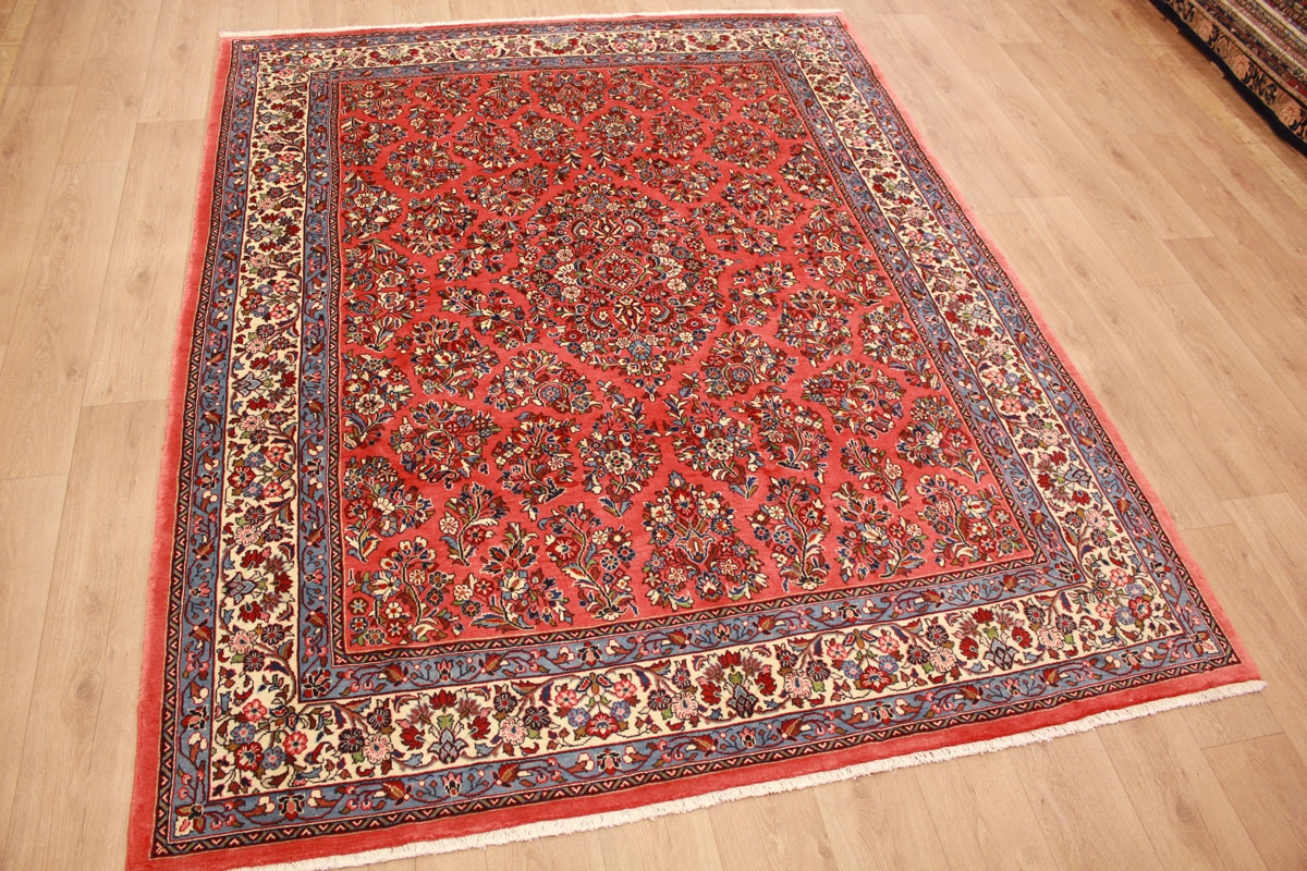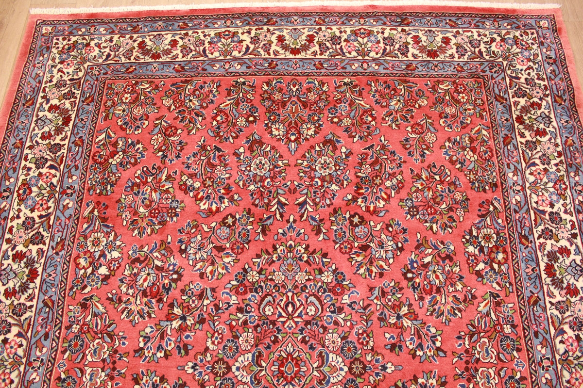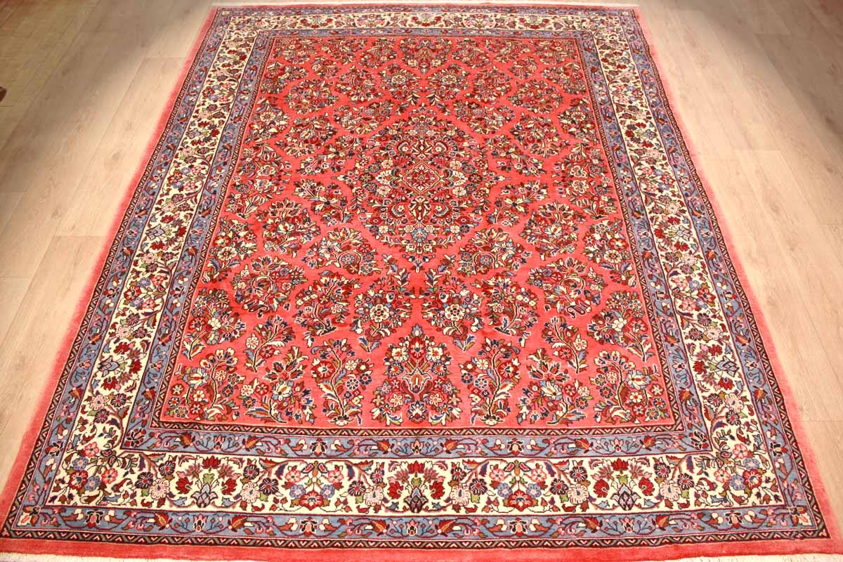 Saroug zählt qualitativ zu den bedeutendsten Knüpforten des Orients. Die Muster sind sehr originär und traditionsreich. Farbenfreudige Blatt- und Blumenmotive machen das Muster der Saroug Teppiche aus. Die exzellente Wollqualität sowie die hohe Knüpfdichte führten zur hohen Bekannt- und Beliebtheit von Saroug Teppichen weltweit. Antike Sarougs werden heute hoch gehandelt und unterstreichen die Hochwertigkeit und Qualität von Saroug Teppichen.