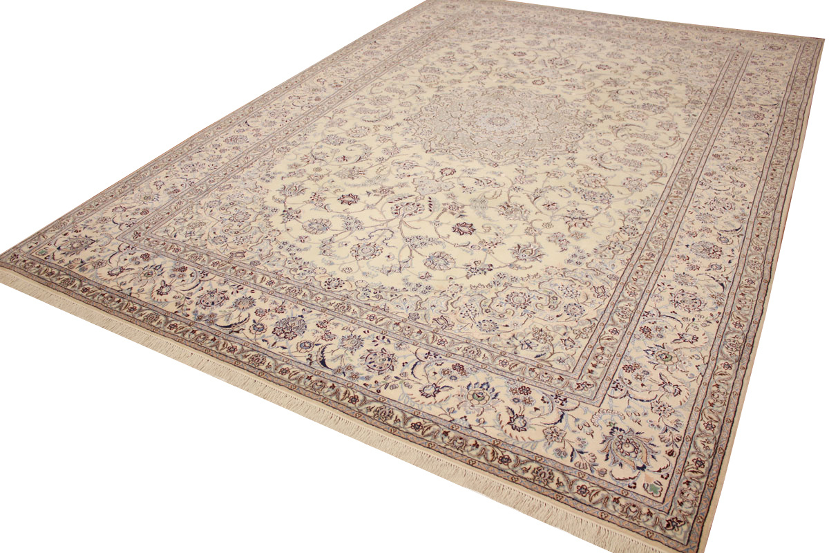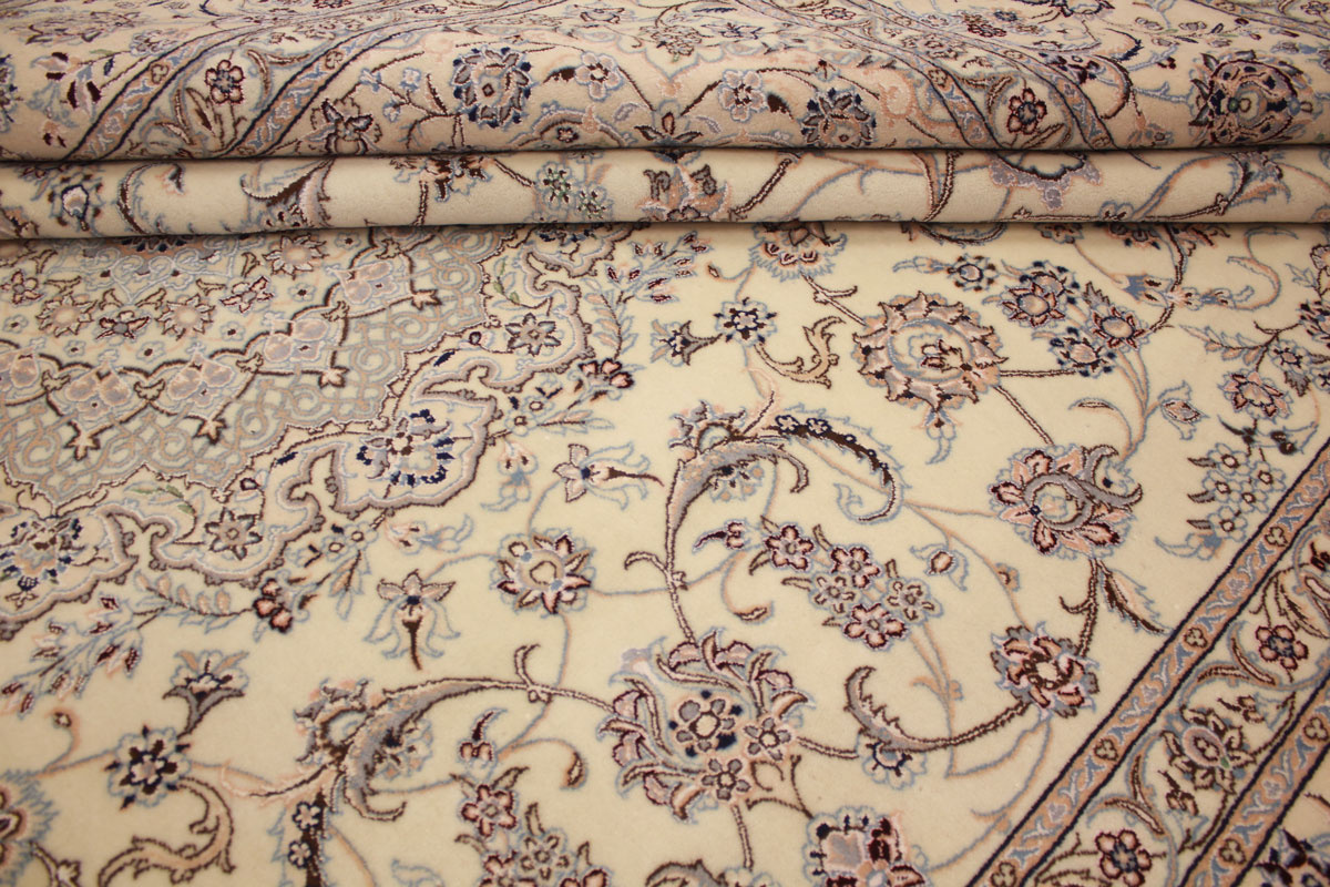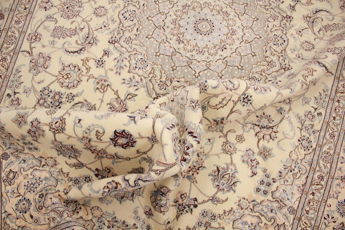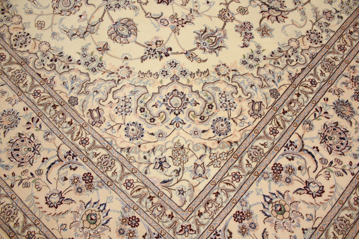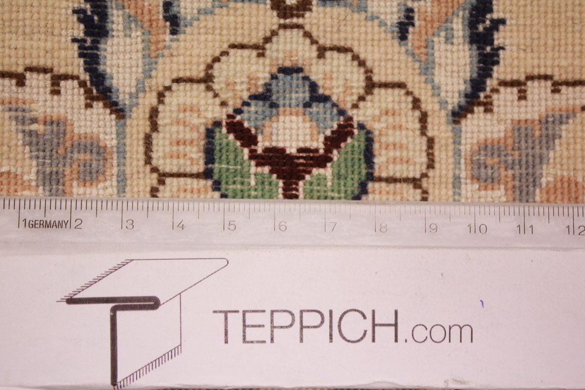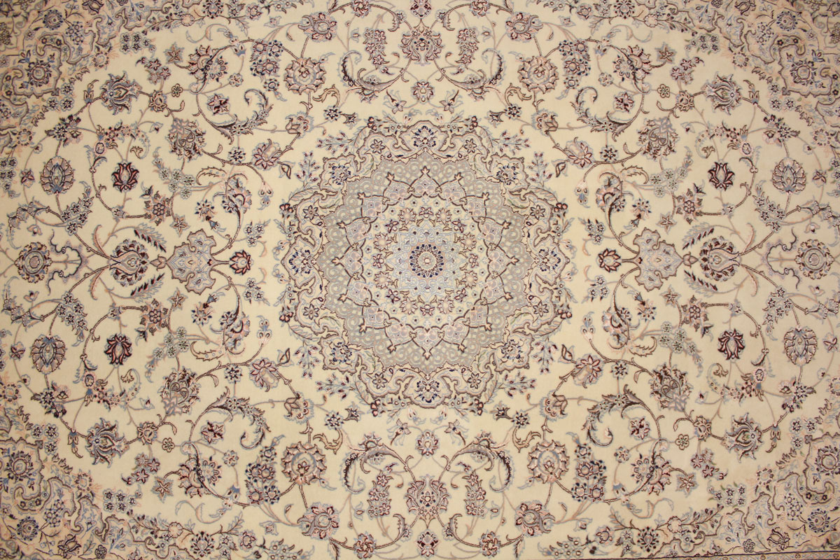 Nain Teppiche sind entweder durchgemustert oder mit Medallion. Typische Farbkombinationen von Nain Teppichen sind Blau-Beige oder Rot-Beige und selten Grün-Beige.