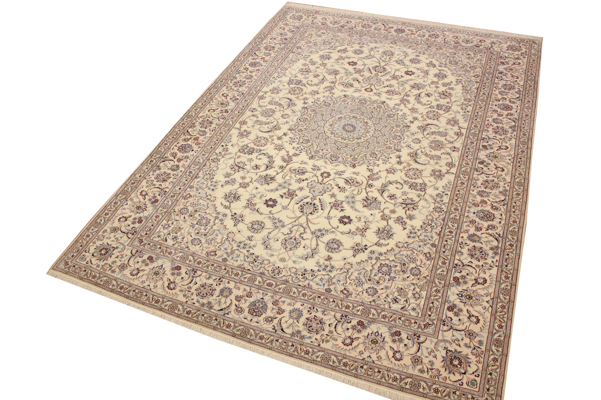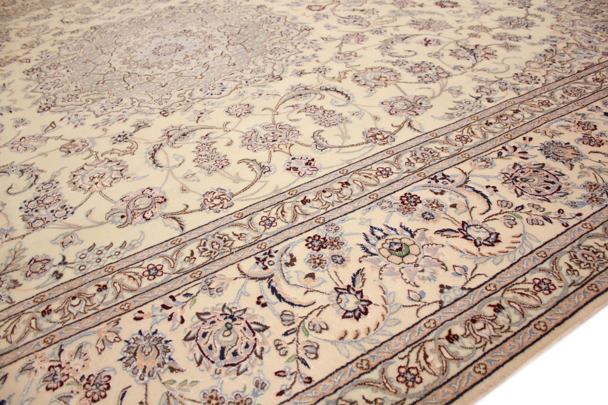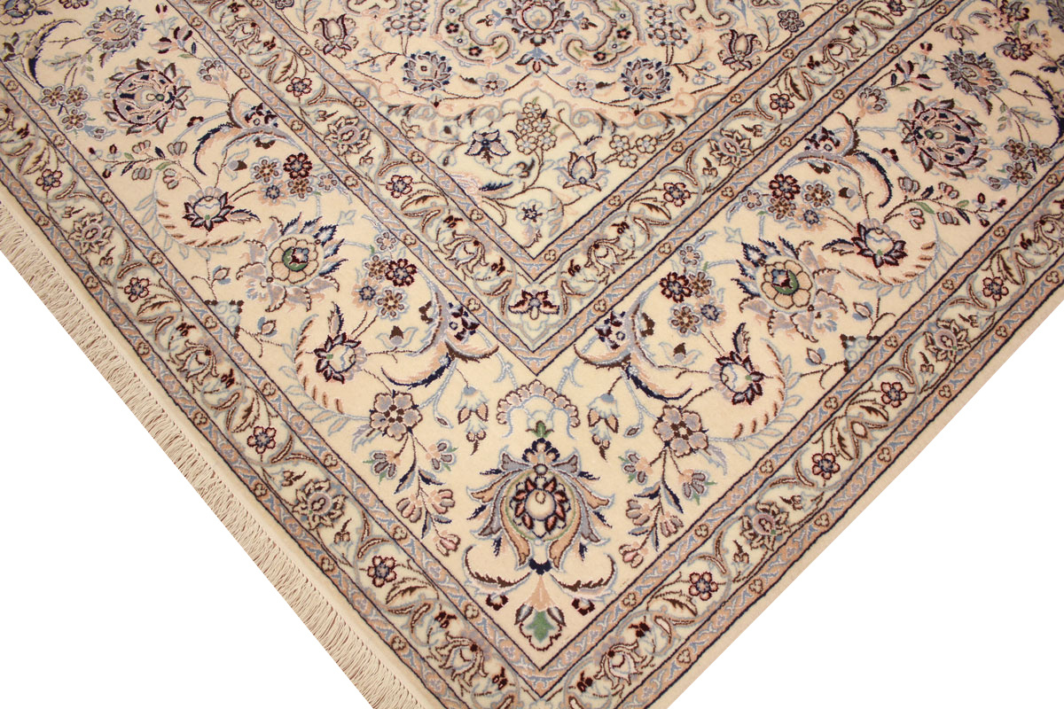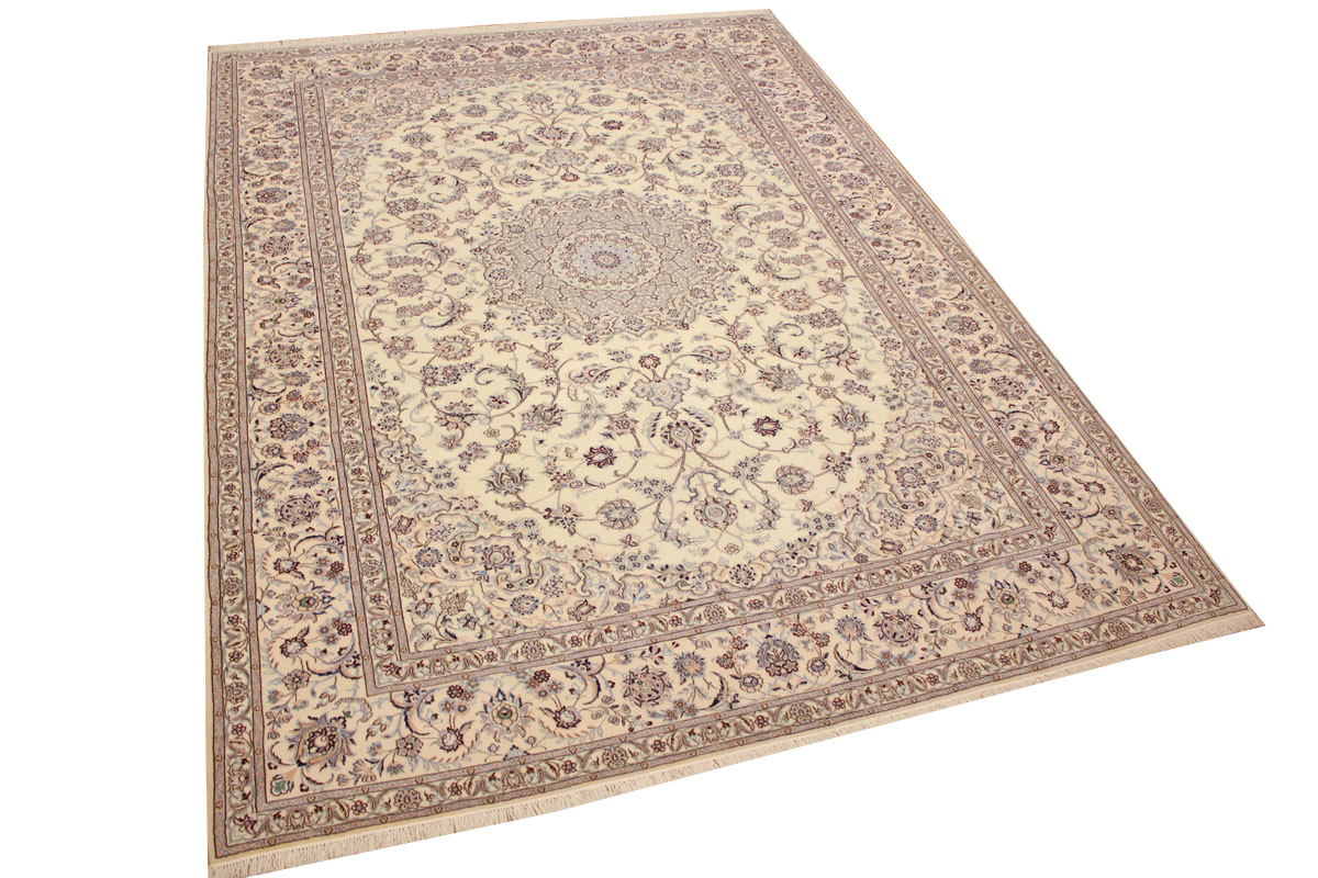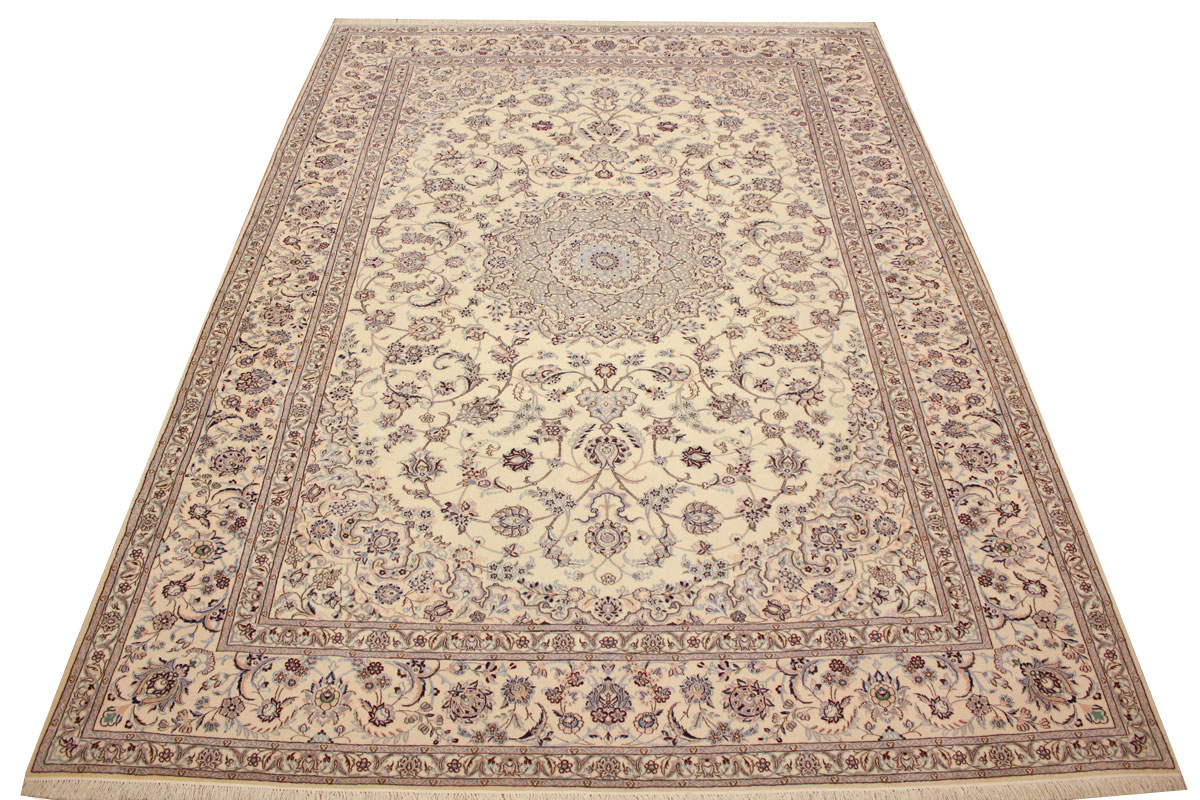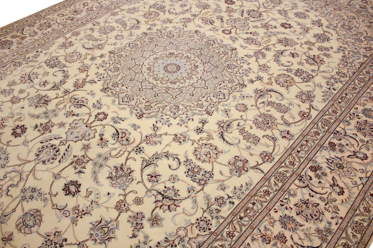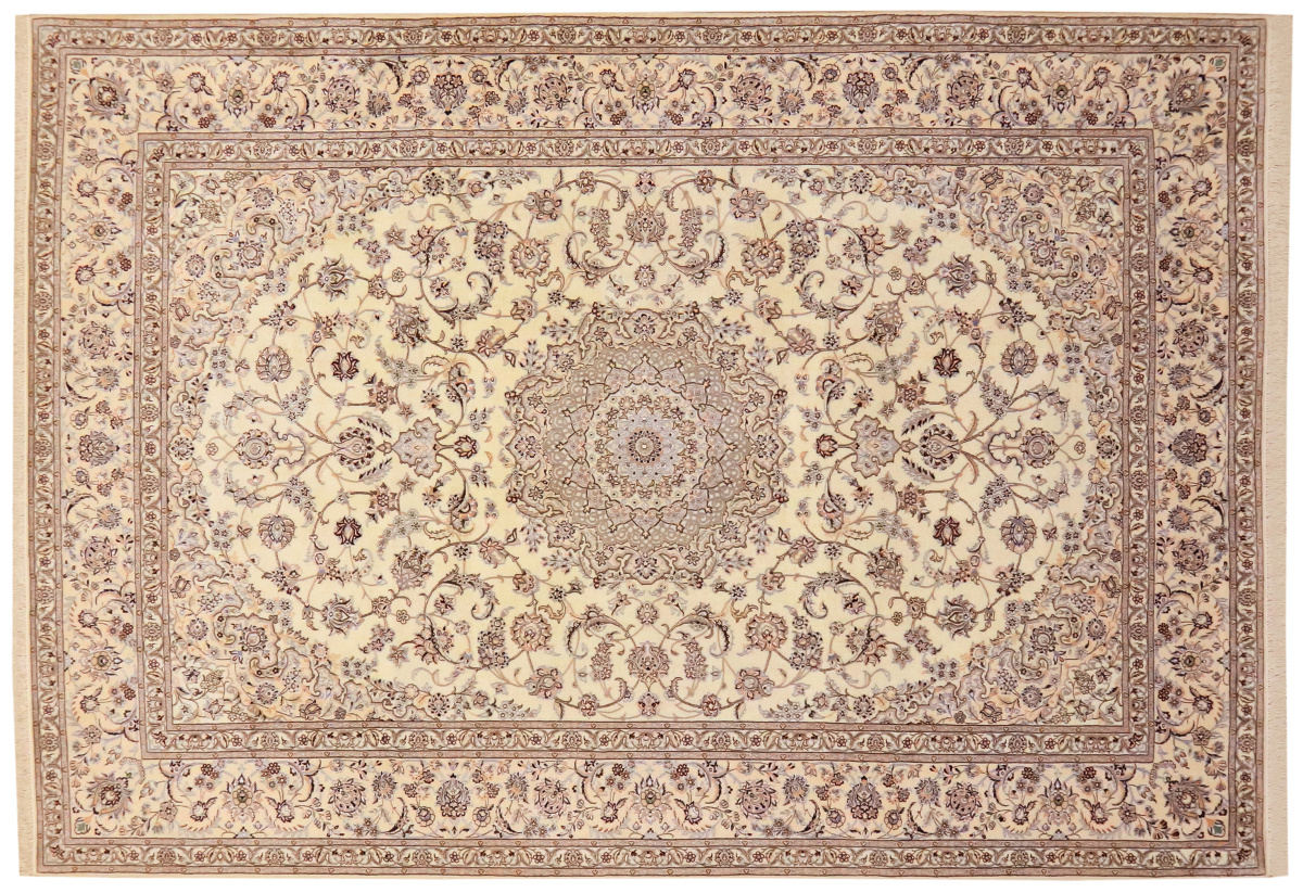 Nain Teppiche sind entweder durchgemustert oder mit Medallion. Typische Farbkombinationen von Nain Teppichen sind Blau-Beige oder Rot-Beige und selten Grün-Beige.