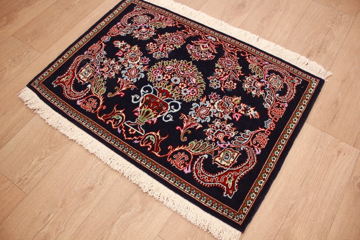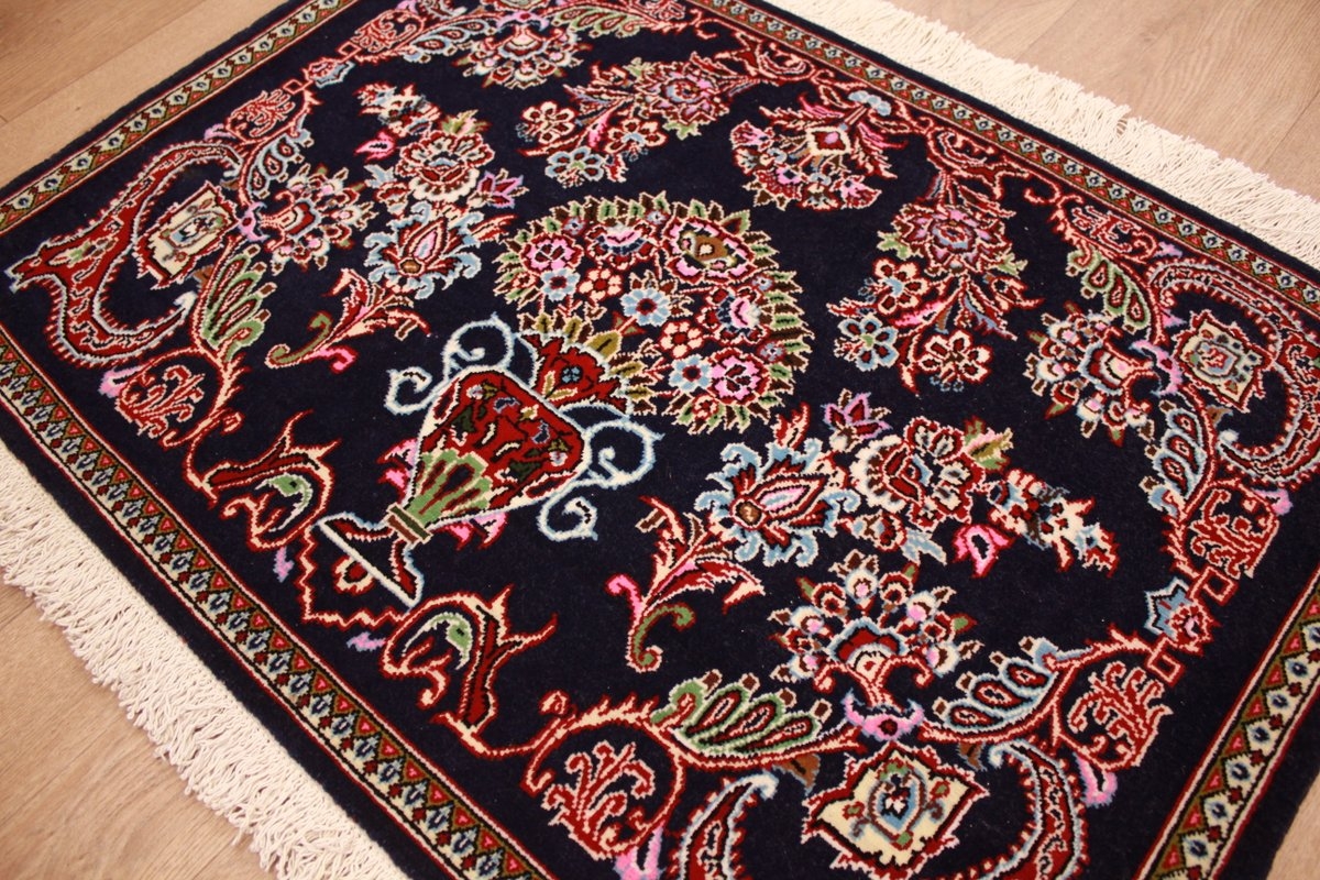 Perserteppich Ghom Orient Teppich 93x64 cm Blau