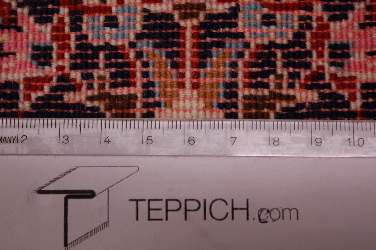 Trotz der vielseitigen Farbpalette hat der Gom-Teppich niemals grelle Farkontraste, sondern achtet auf eine harmonische Farbabstimmung. Bemerkenswert ist auch die äußerst exakte Knüpfung, die fast an Maschinenarbeit erinnert.