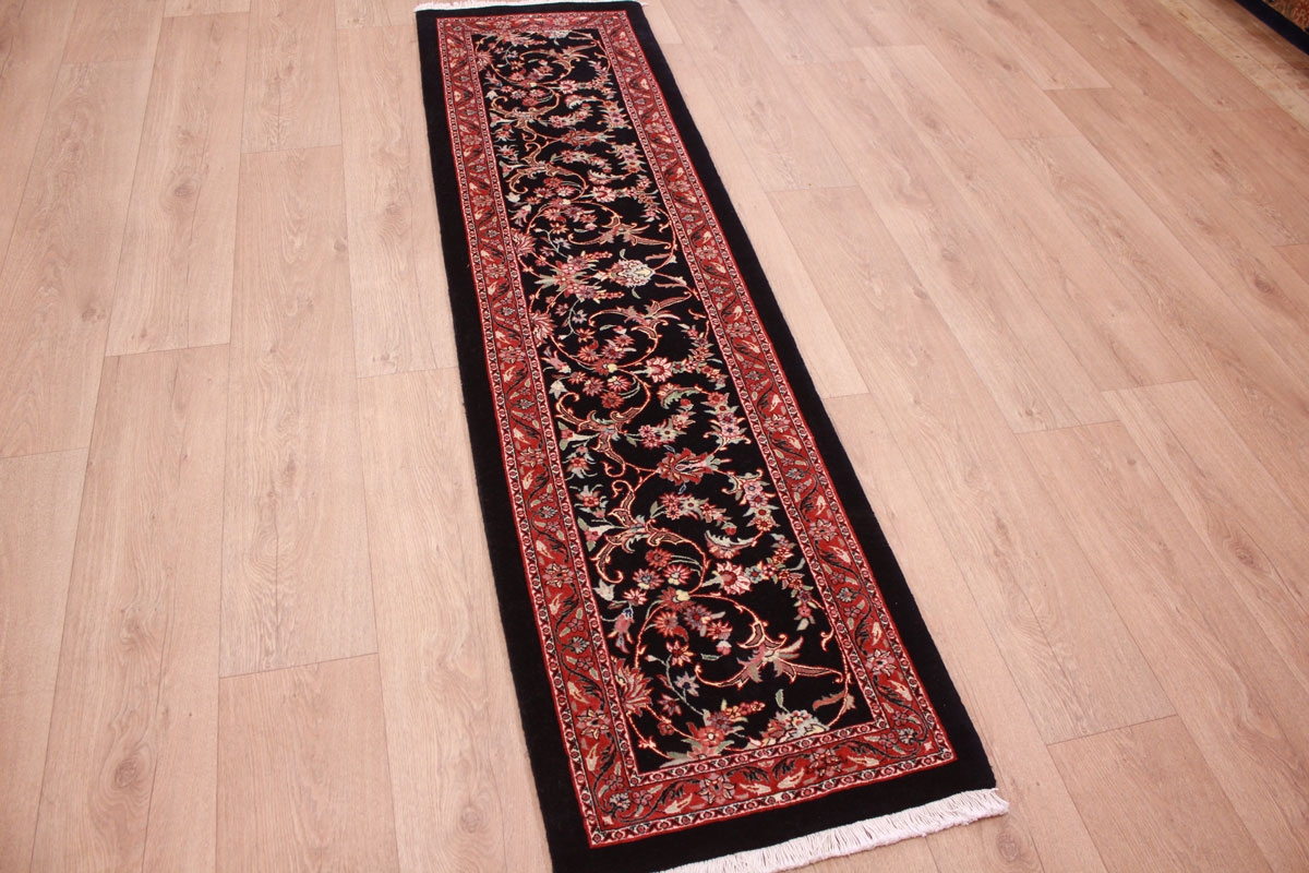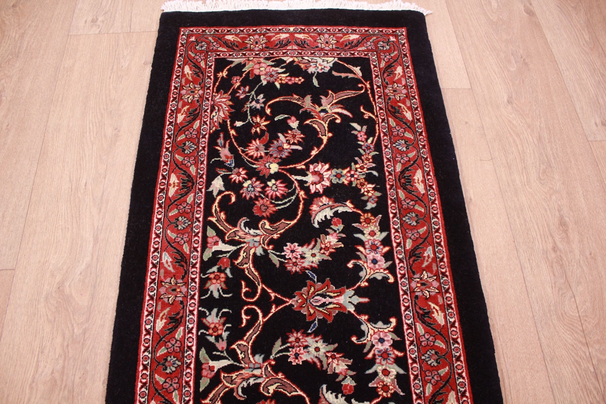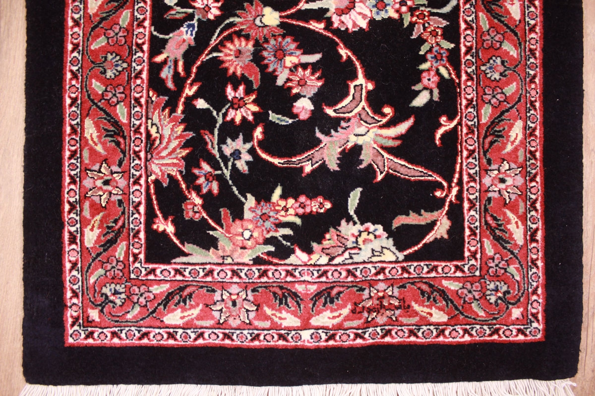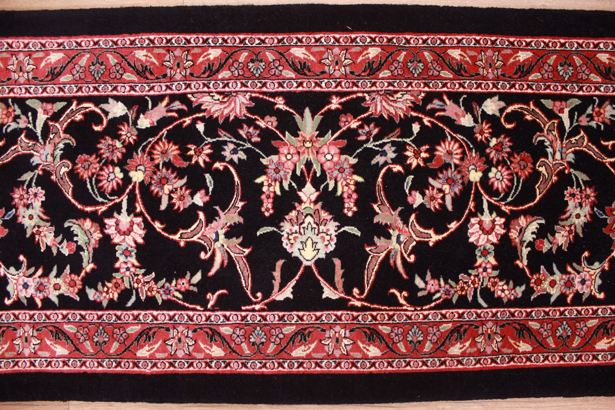 Perser Teppich Bidjar Läufer mit Seide 208x54 cm Schwarz