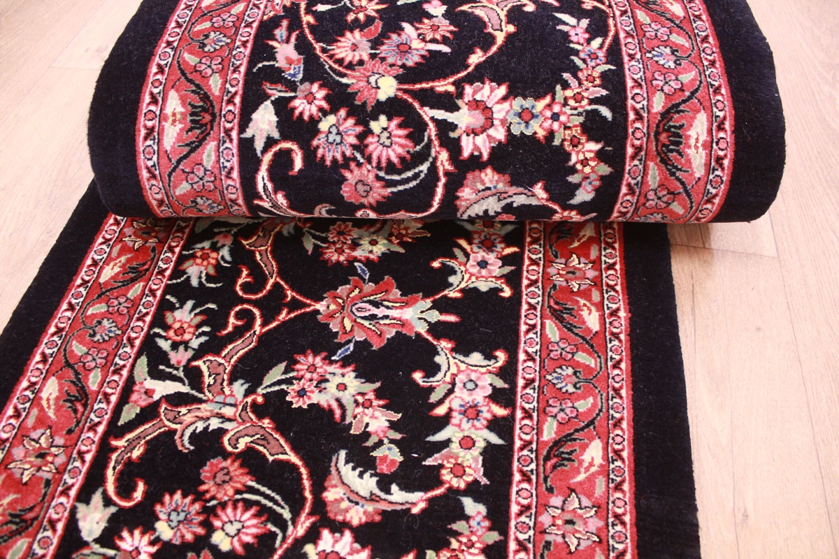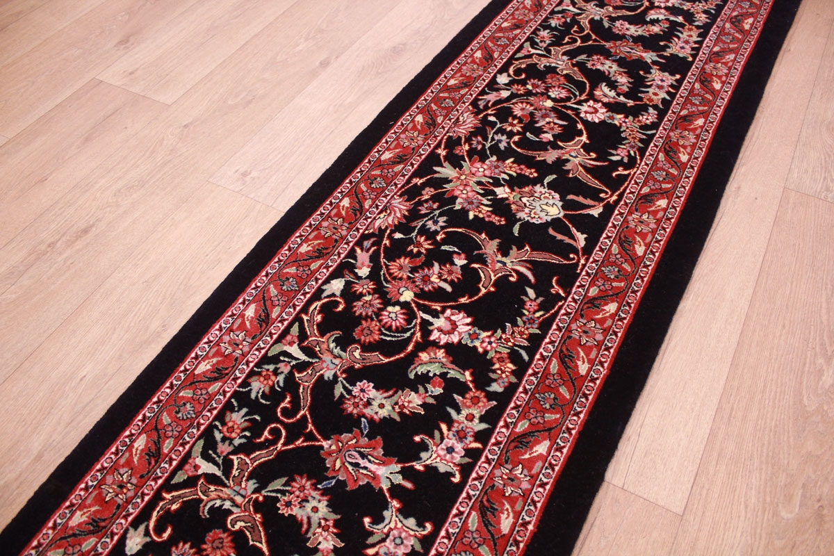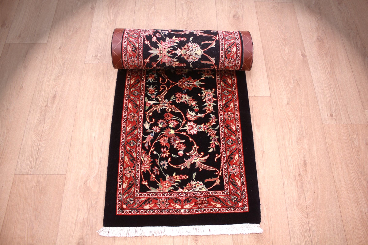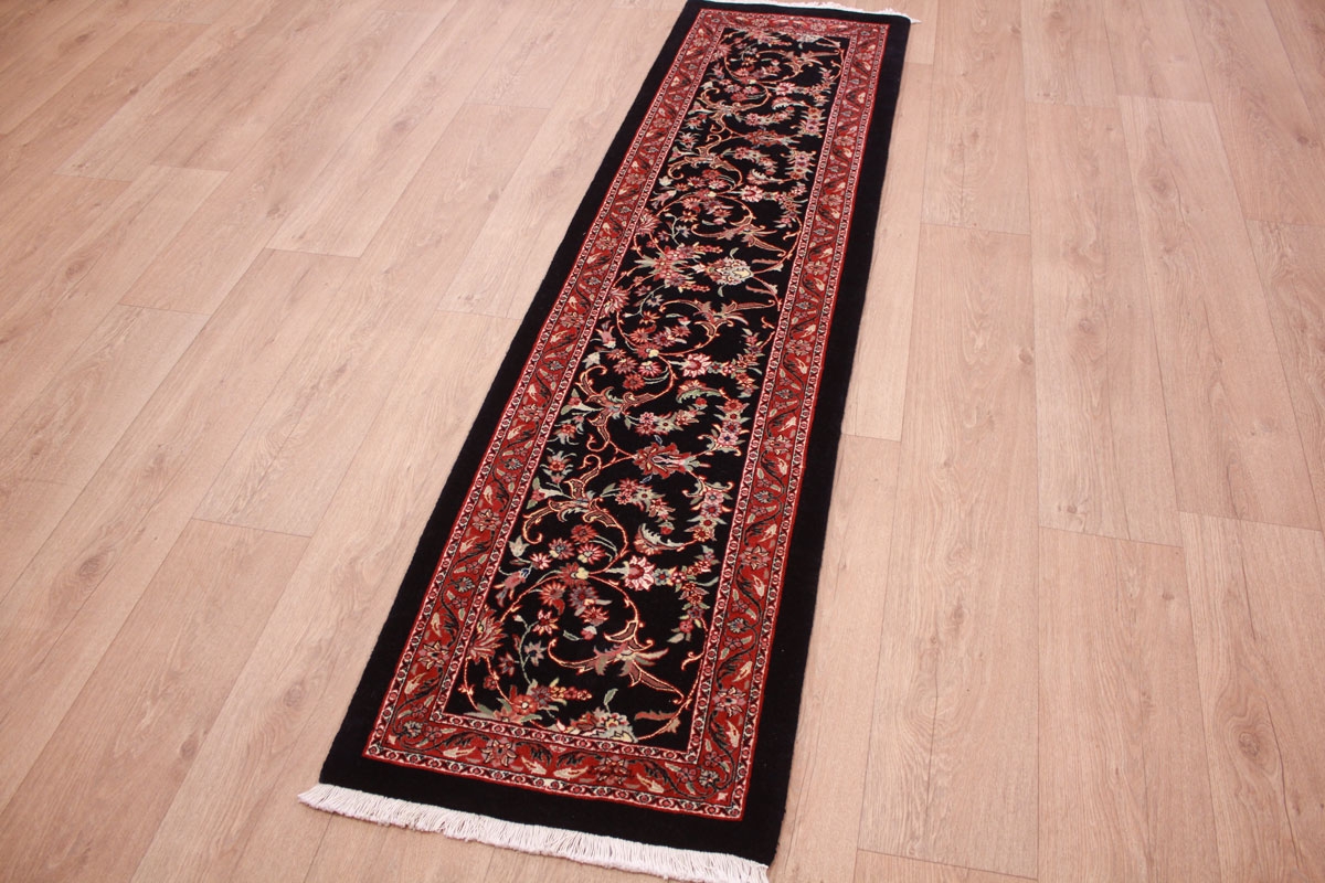 Perser Teppich Bidjar Läufer mit Seide 208x54 cm Schwarz