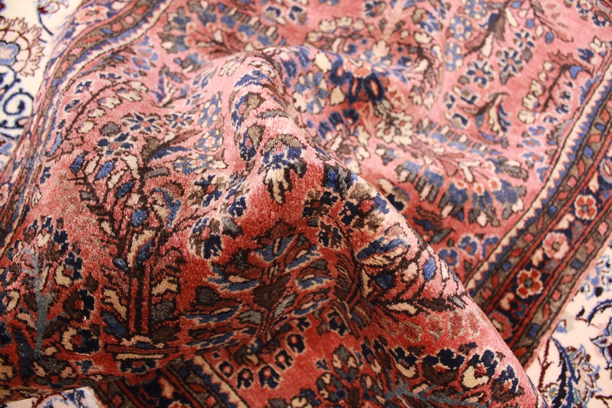 Saroug zählt qualitativ zu den bedeutendsten Knüpforten des Orients. Die Muster sind sehr originär und traditionsreich. Farbenfreudige Blatt- und Blumenmotive machen das Muster der Saroug Teppiche aus. Die exzellente Wollqualität sowie die hohe Knüpfdichte führten zur hohen Bekannt- und Beliebtheit von Saroug Teppichen weltweit. Antike Sarougs werden heute hoch gehandelt und unterstreichen die Hochwertigkeit und Qualität von Saroug Teppichen.