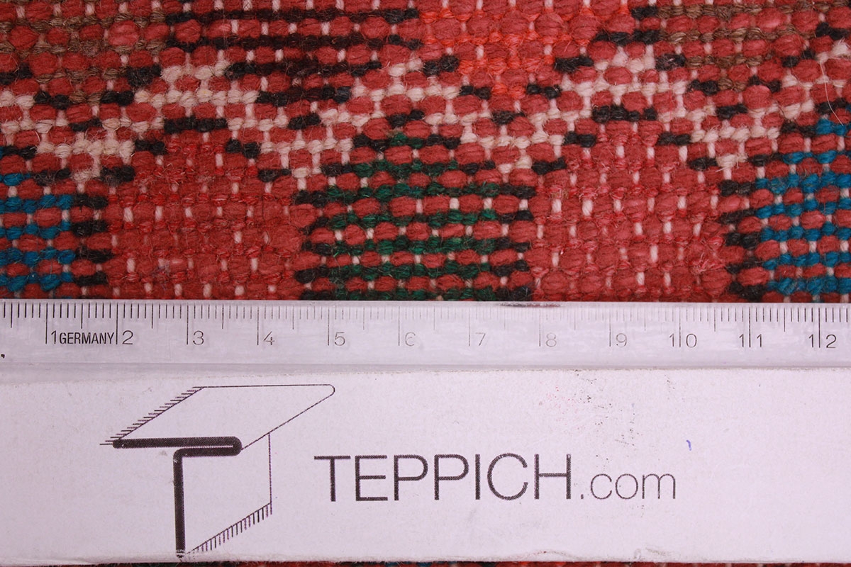 Vertikaler Webstuhl. Kette und Schuss aus Baumwolle. Flor aus Wolle. Türkischer Knoten mit einer Dichte zwischen 30 und 100 Knoten pro Quadratzoll. Die üblichen Maße sind der Dozar und der Treppenteppich oder der Strip.