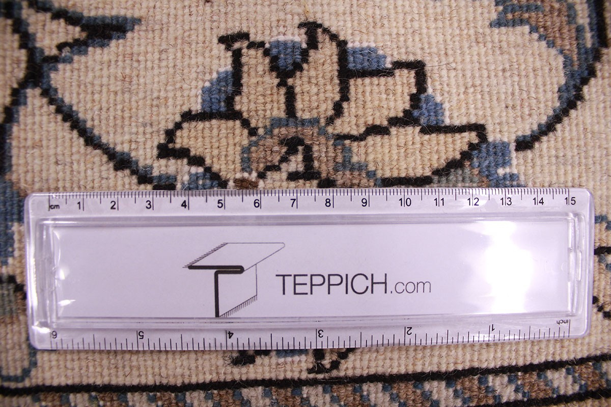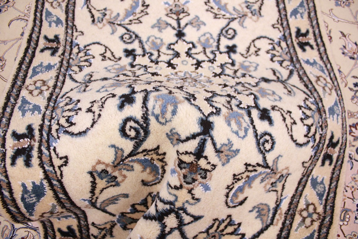 Die Stadt Nain in der Nähe von Isfahan im Zentralpersien ist bekannt für ihre feinen Teppiche, die mehr als eine Million Knoten pro Quadratmeter haben können. Je feiner die Kette, desto feiner kann auch die Knüpfung sein. In der Regel gibt es vier Qualitäten: Nain-Kaschmar (grob geknüpft), Nain-Noh-La (Baumwollfaden der Kette aus 9 Fasern gezwirnt, wodurch 40 Raj auf 7 cm kommen), Nain-Schisch-La (6 Fasern entsprechend 60 Raj), Nain-Tchaha-La (4 Fasern entsprechend 80 Raj). Alle Nain Teppiche sind durchgemustert und mit Medaillon.