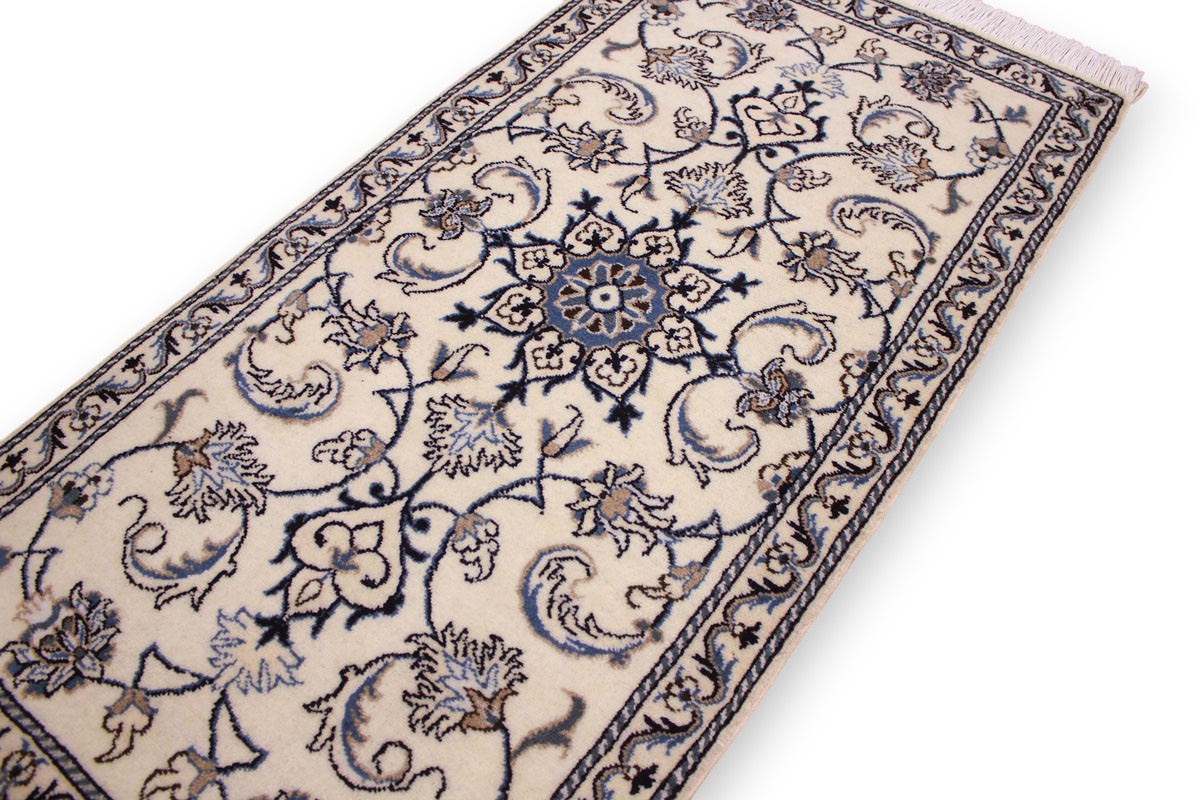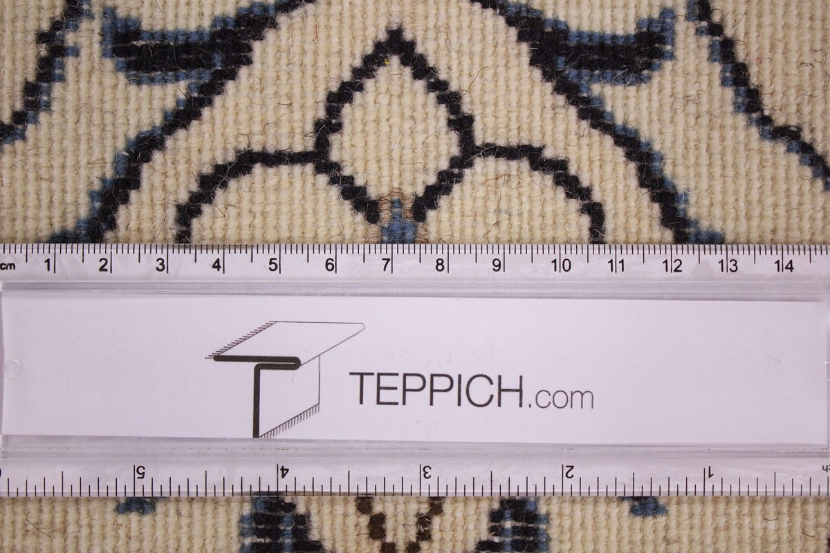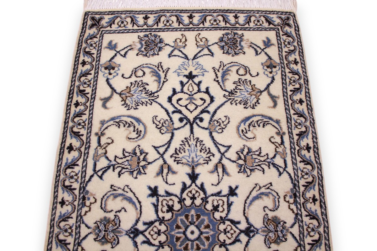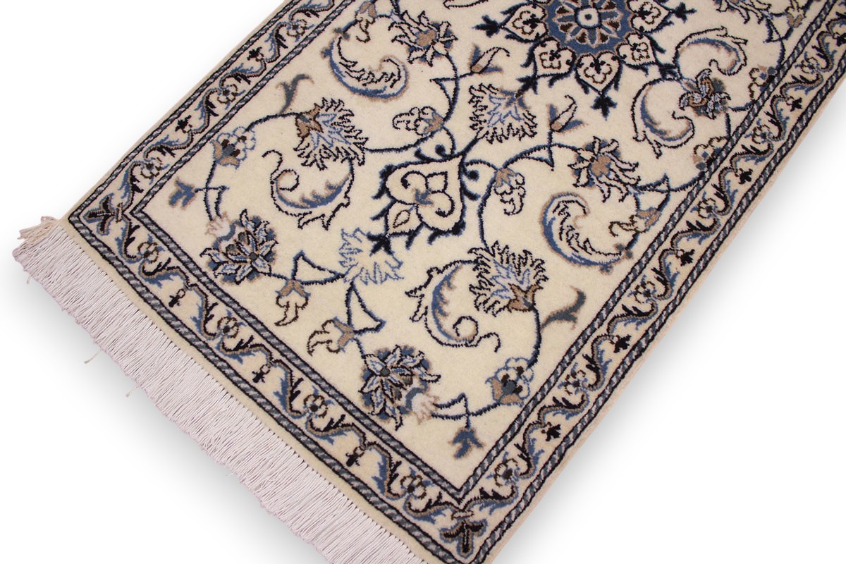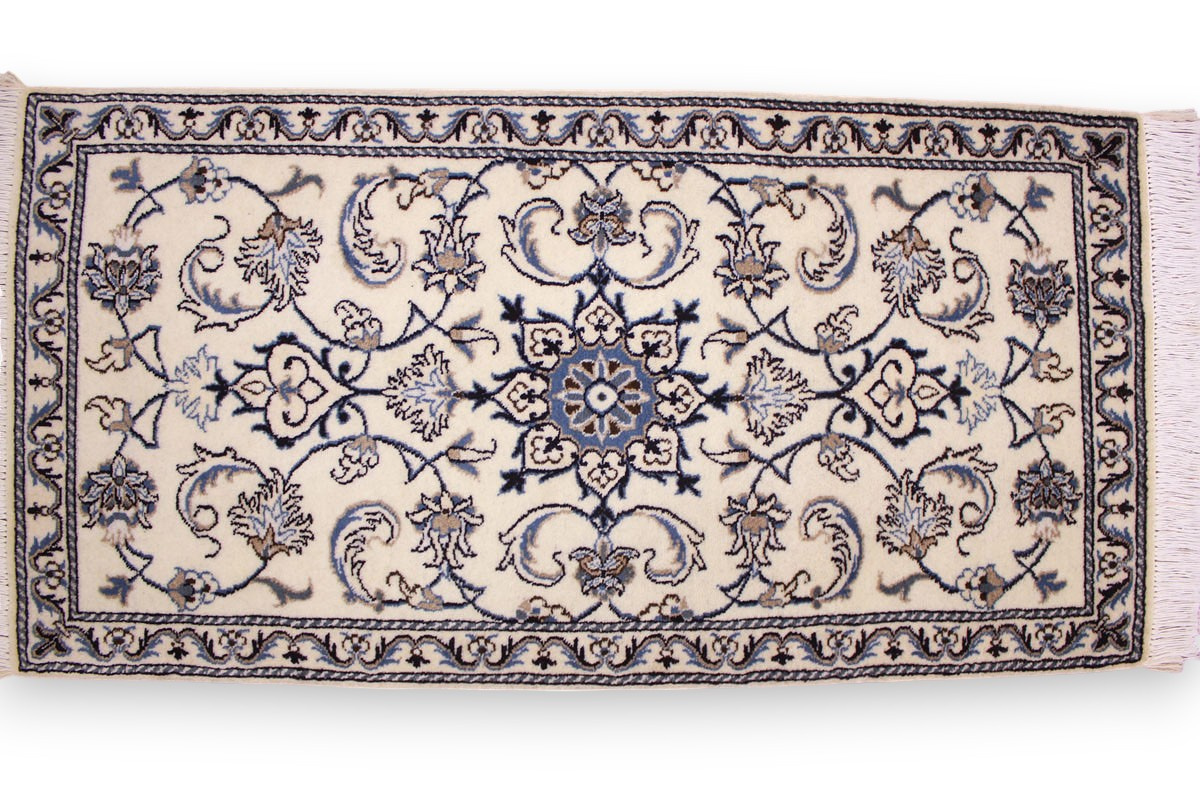 Die Stadt Nain in der Nähe von Isfahan im Zentralpersien ist bekannt für ihre feinen Teppiche, die mehr als eine Million Knoten pro Quadratmeter haben können. Je feiner die Kette, desto feiner kann auch die Knüpfung sein. In der Regel gibt es vier Qualitäten: Nain-Kaschmar (grob geknüpft), Nain-Noh-La (Baumwollfaden der Kette aus 9 Fasern gezwirnt, wodurch 40 Raj auf 7 cm kommen), Nain-Schisch-La (6 Fasern entsprechend 60 Raj), Nain-Tchaha-La (4 Fasern entsprechend 80 Raj). Alle Nain Teppiche sind durchgemustert und mit Medaillon.