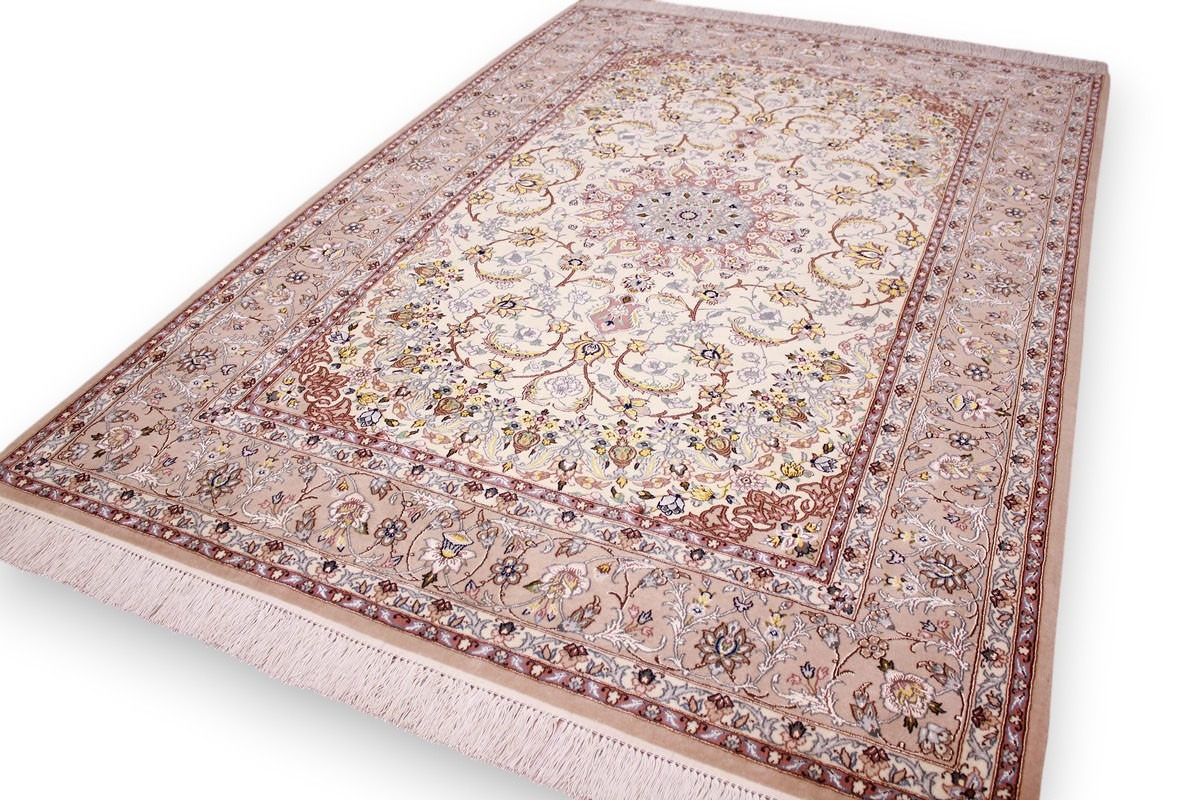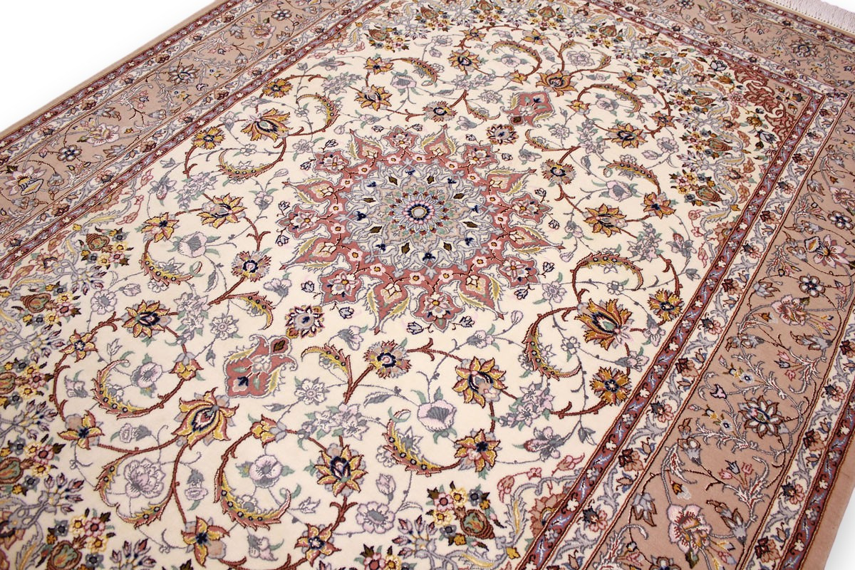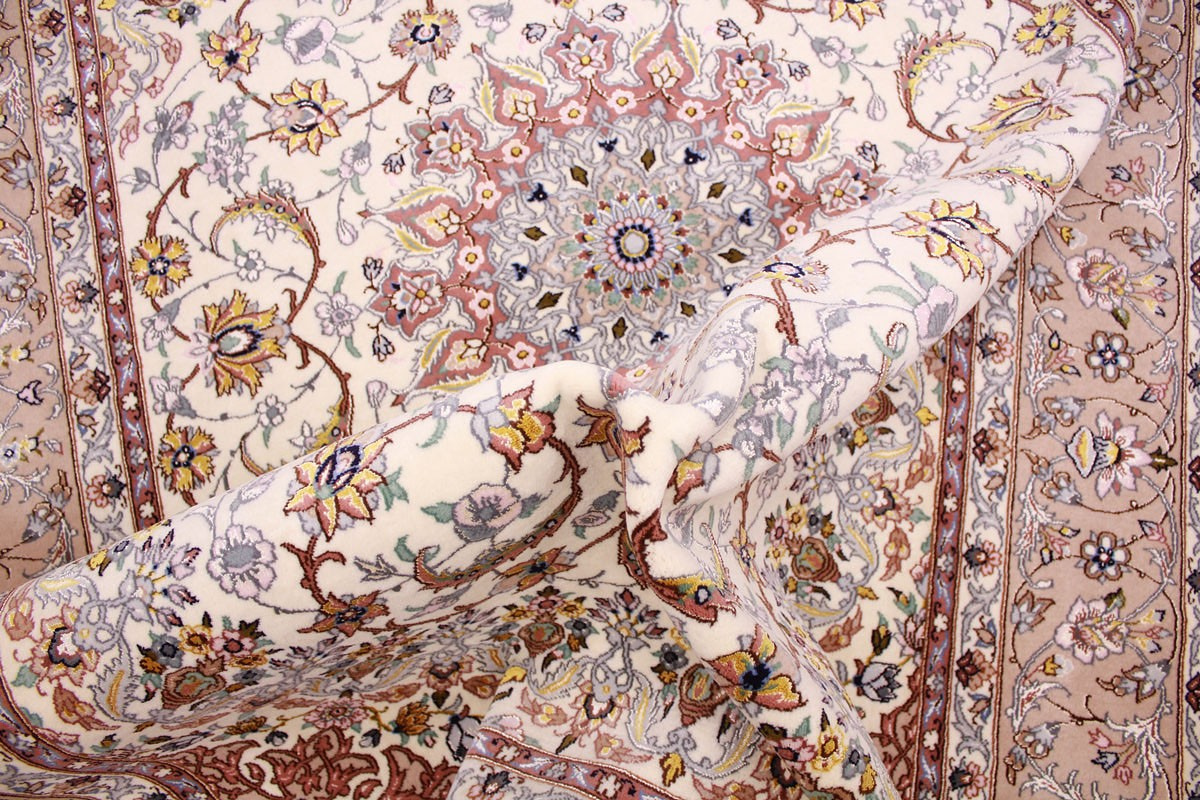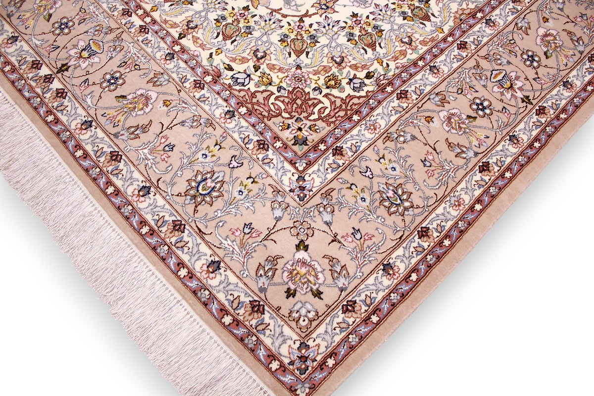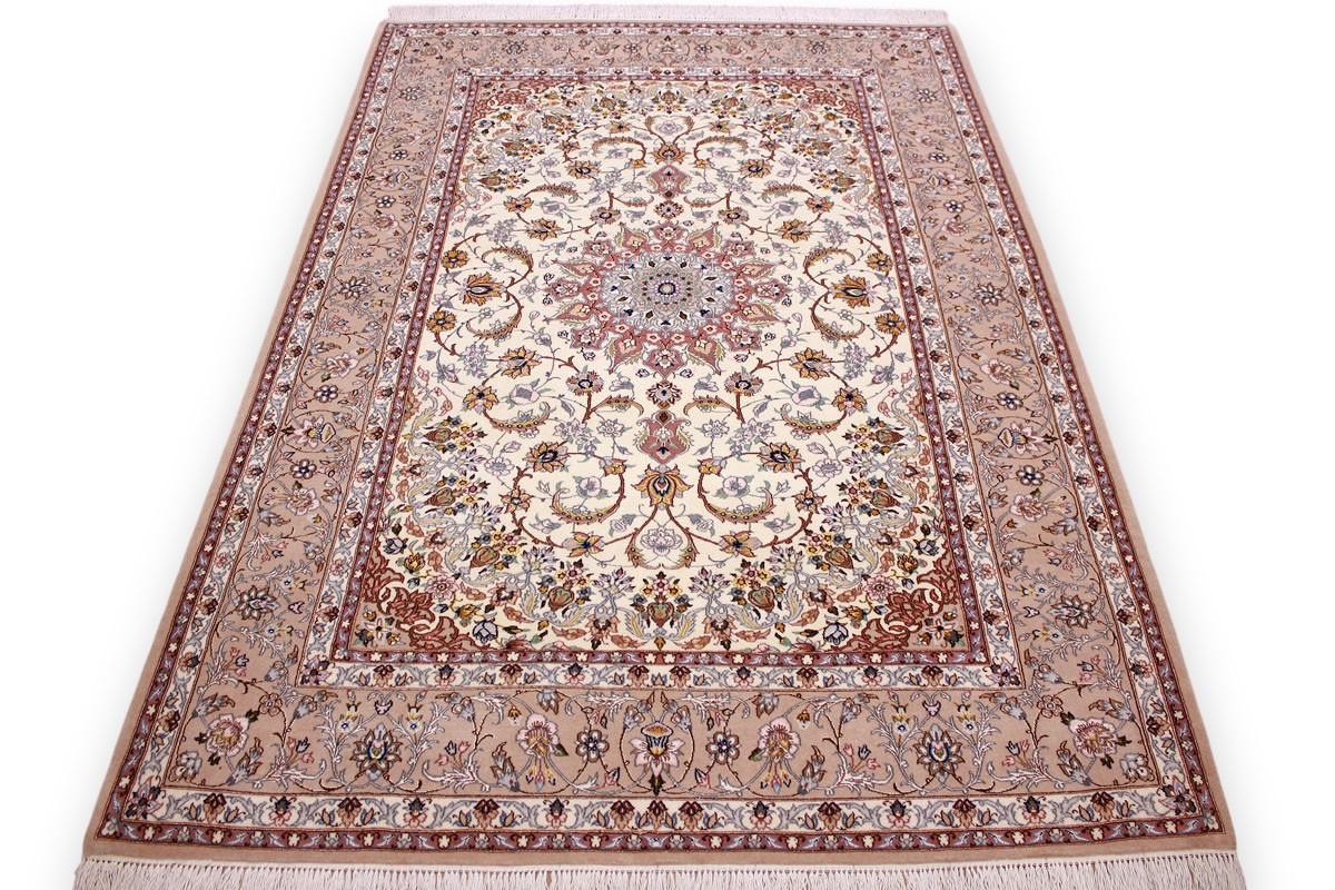 Perser Teppich Isfahan mit Seide 210x145 cm Beige