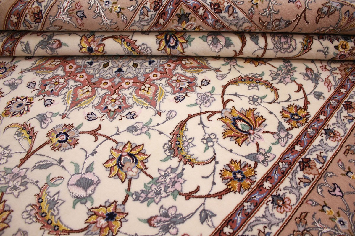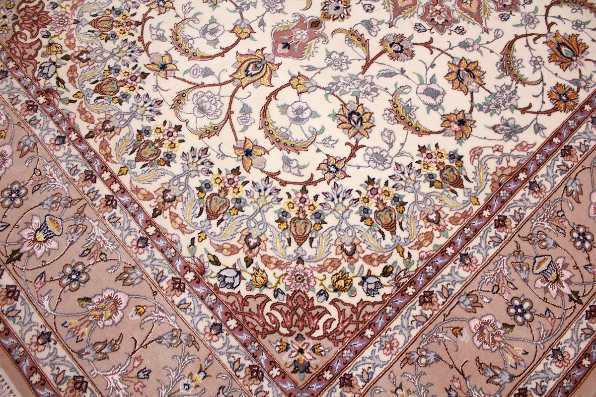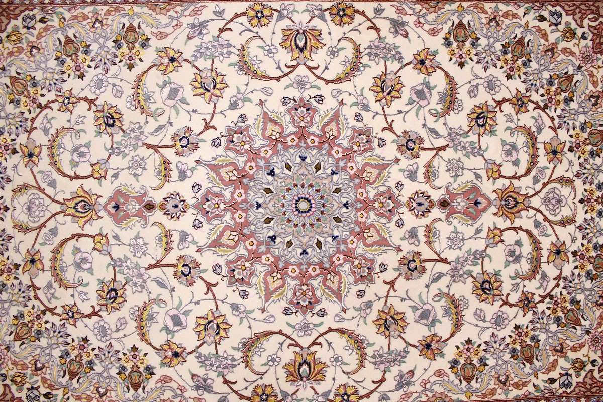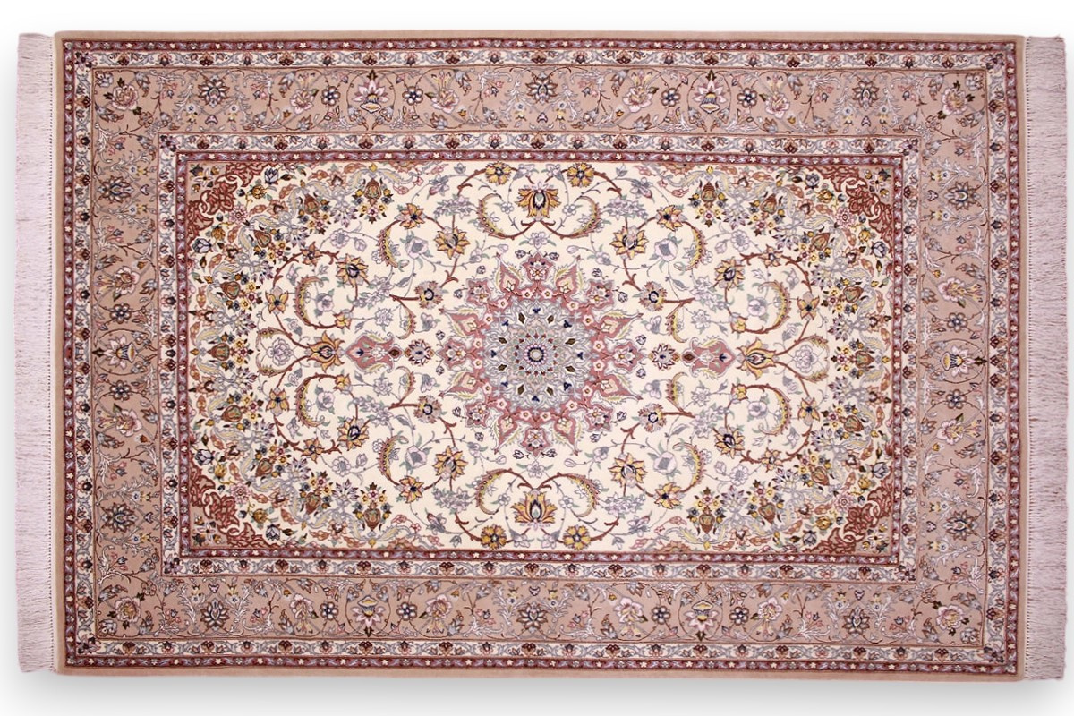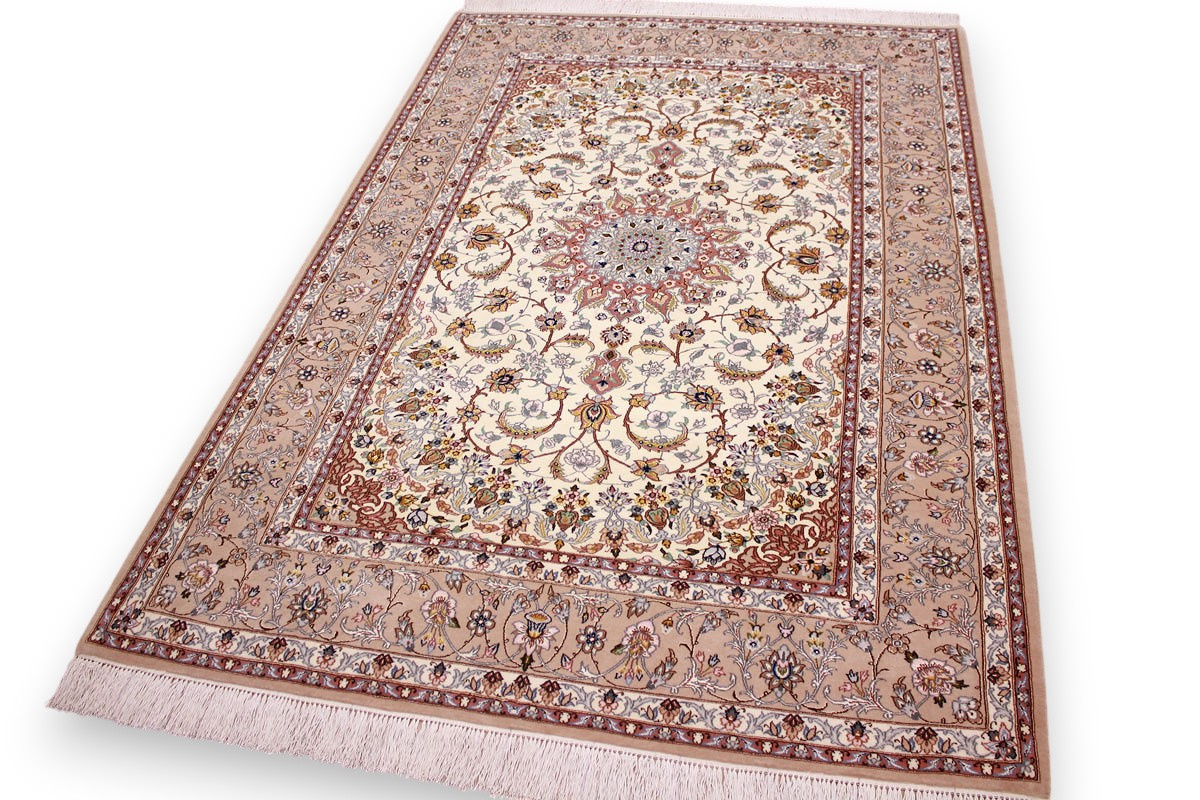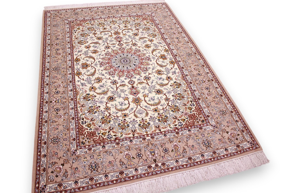 Perser Teppich Isfahan mit Seide 210x145 cm Beige