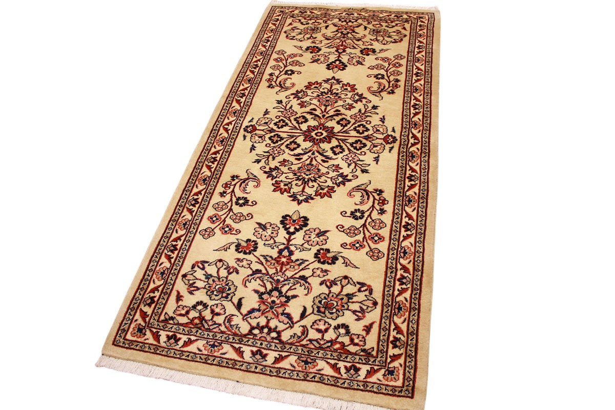 Läufer Sarough Perserteppich aus Wolle 204x90 cm Beige