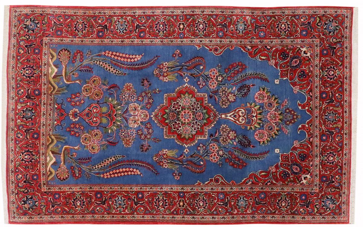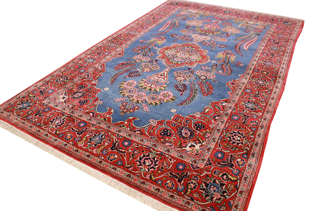 Antiker Perserteppich Keschan 208x132 cm Blau