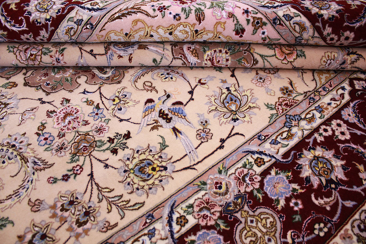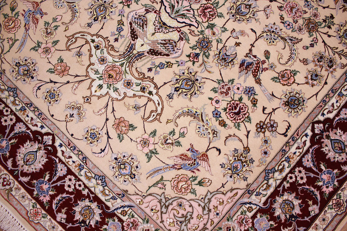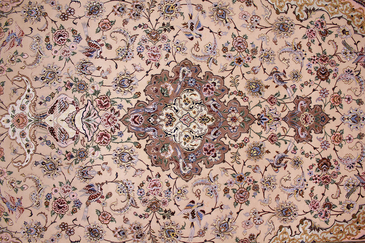 Eine breite Farbpalette findet bei Isfahan-Teppichen Verwendung, und ihre Knüpfer sind Meister im Gestalten harmonischer Kombinationen aus Untergrund und Design, wobei sie mit hellen und dunklen Farben zu variieren wissen.