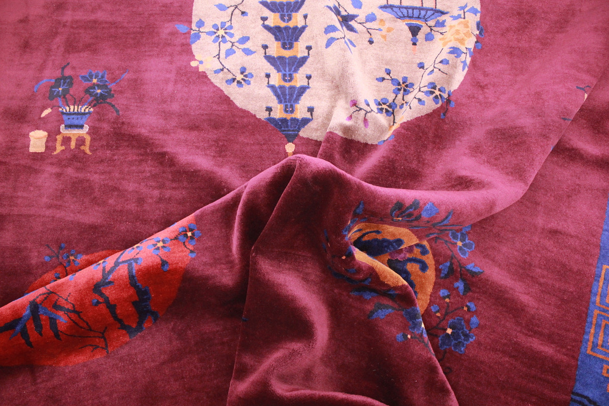Chinesiche Teppiche werden wie es sich gehört in China von Hand geknüpft. Chinesische Knüpfer verwenden für Ihre Teppiche Materialien wie Wolle, Schurwolle oder Seide. Chinesische Wollteppiche haben meist ein altes chinesischen Motiv wie das berühmte „Drachenmotiv“. Seidenteppiche aus China sind vom Motiv her sehr persisch eingehaucht.