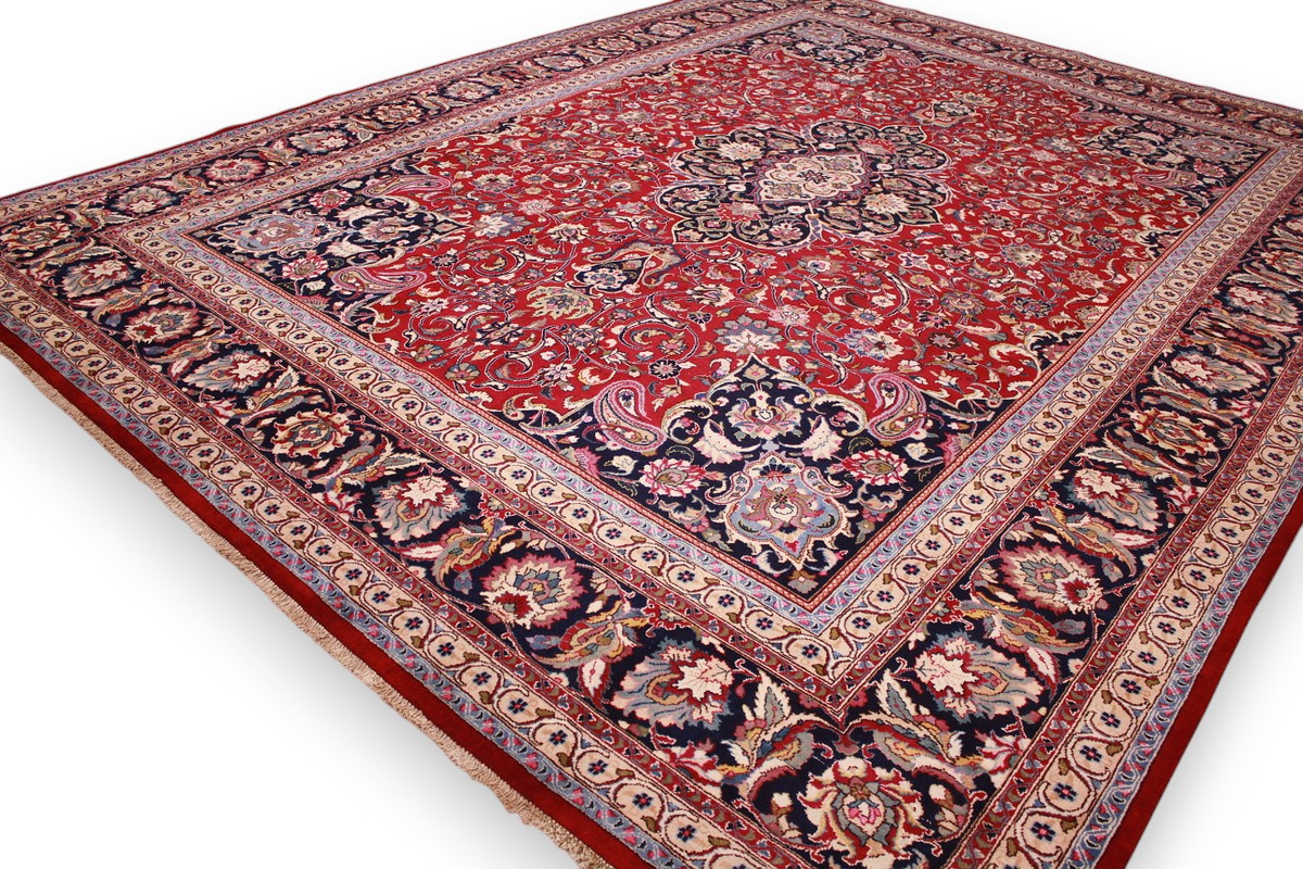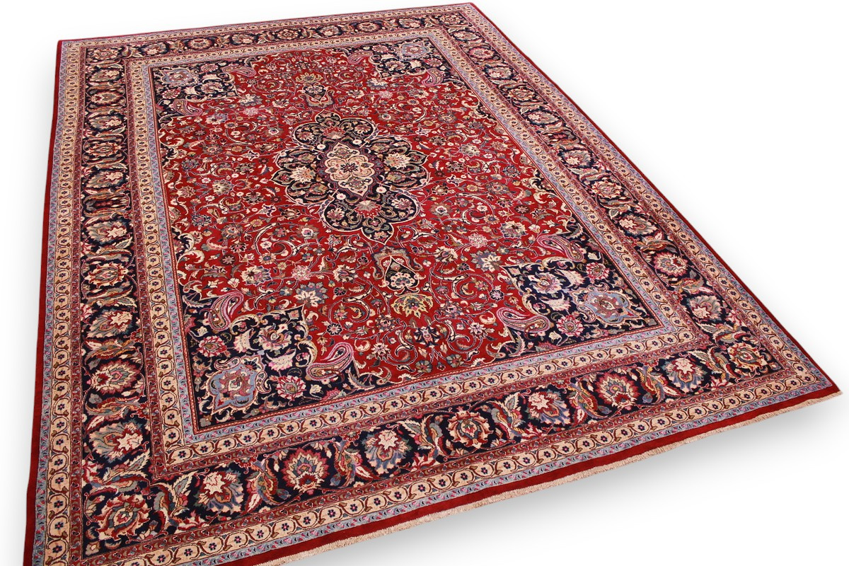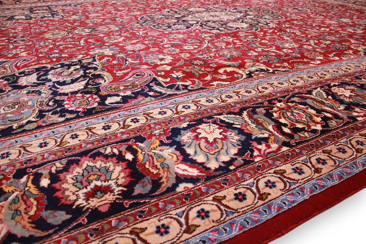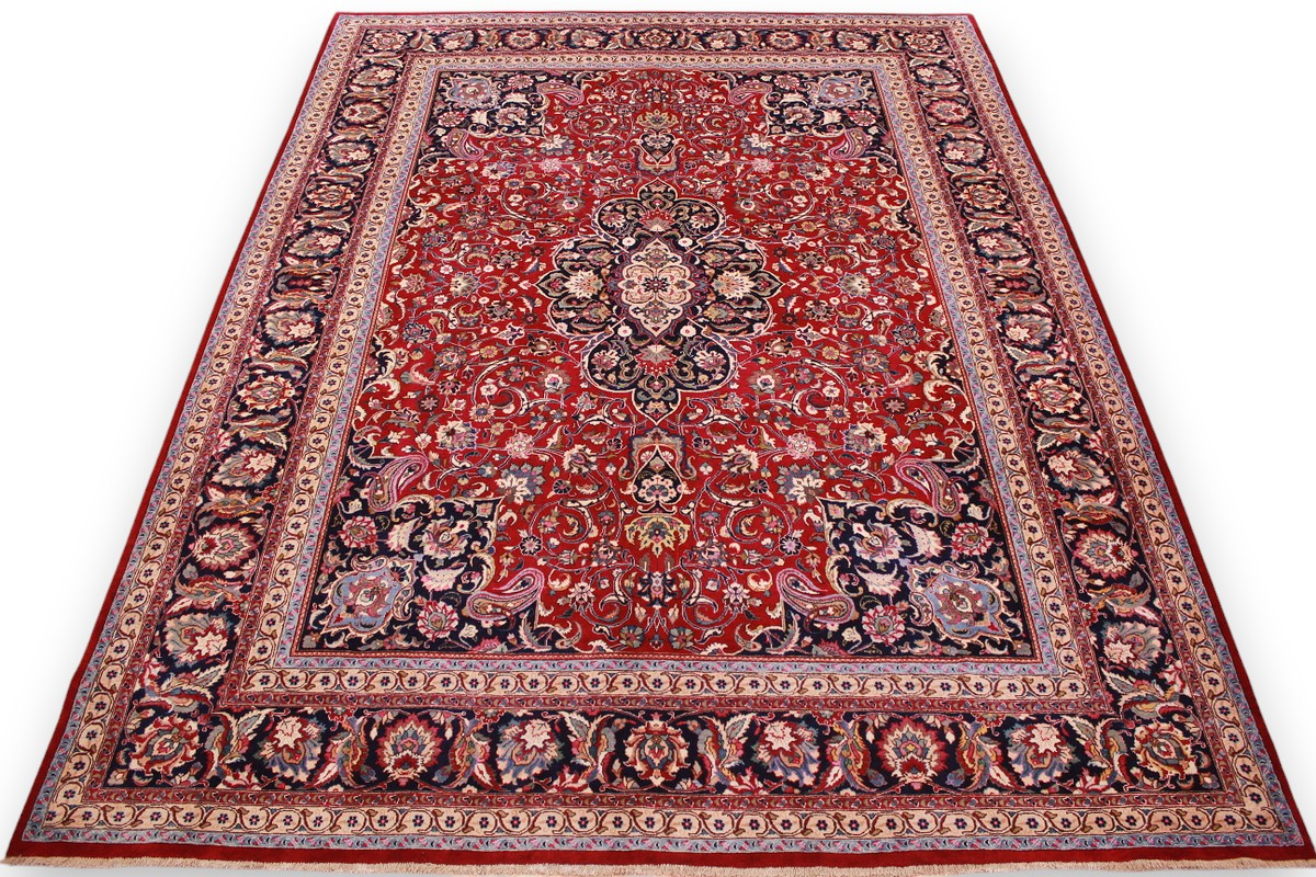 Maschhad-Teppiche können zwei Gruppen zugeordnet werden: Maschhad und türkisch Maschhad. Der Unterschied zwischen diesen beiden Gruppen liegt in den Knoten. Sowohl bei Maschhad- als auch bei Türkisch-Maschhad-Teppichen findet das als Islim bekannte Blumendesign Verwendung. Das in der Mitte befindliche Medaillon ist meistens rund. Die Farben sind lebendig und beinhalten einen großen Rotanteil. Der Saum setzt sich aus zwei oder mehr Sicherheitsstreifen (guard) zusammen und ist mit kleinen Blumenmotiven verziert.