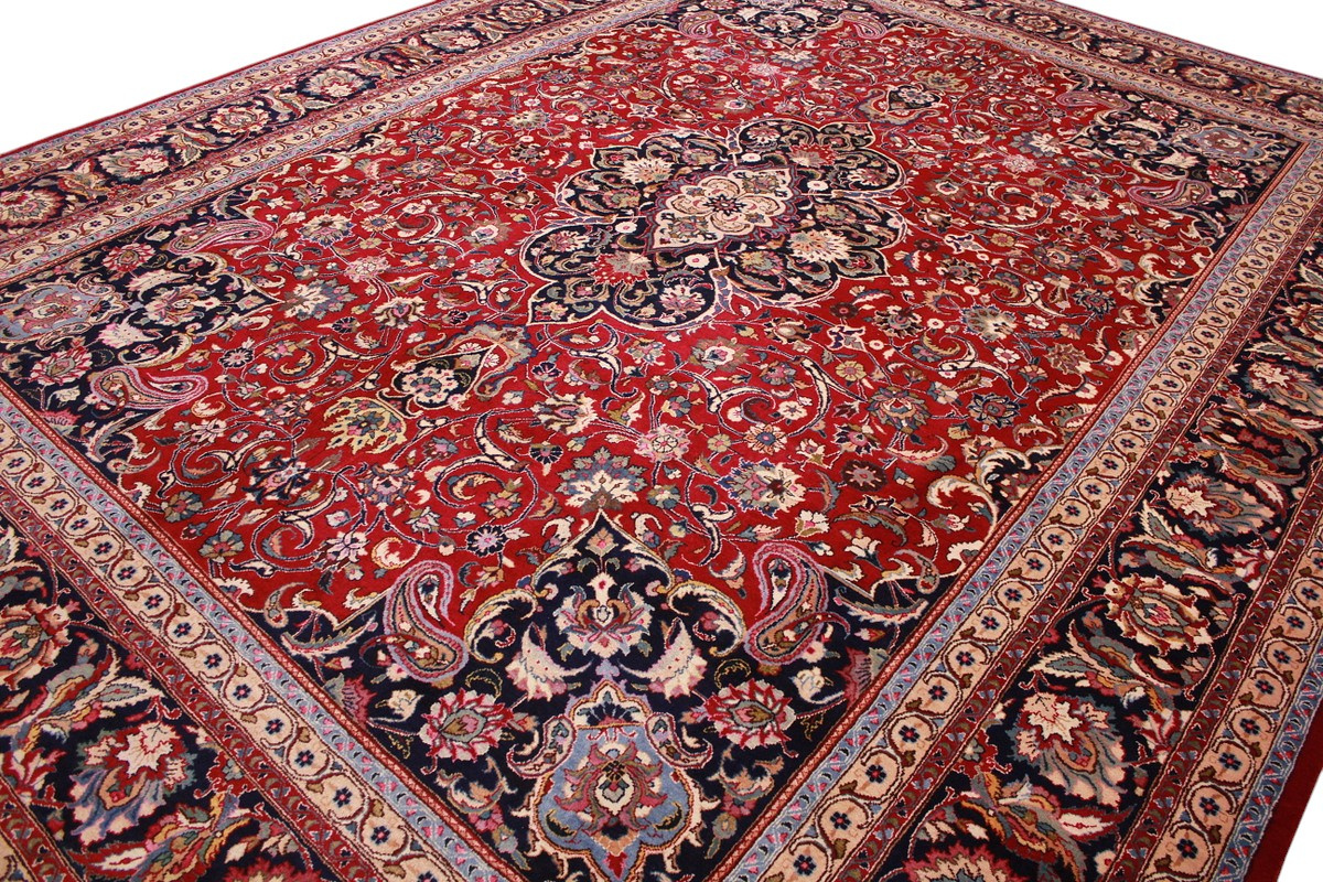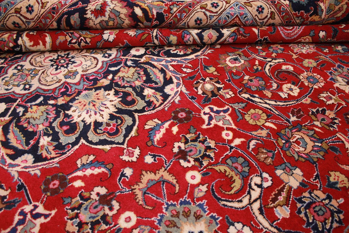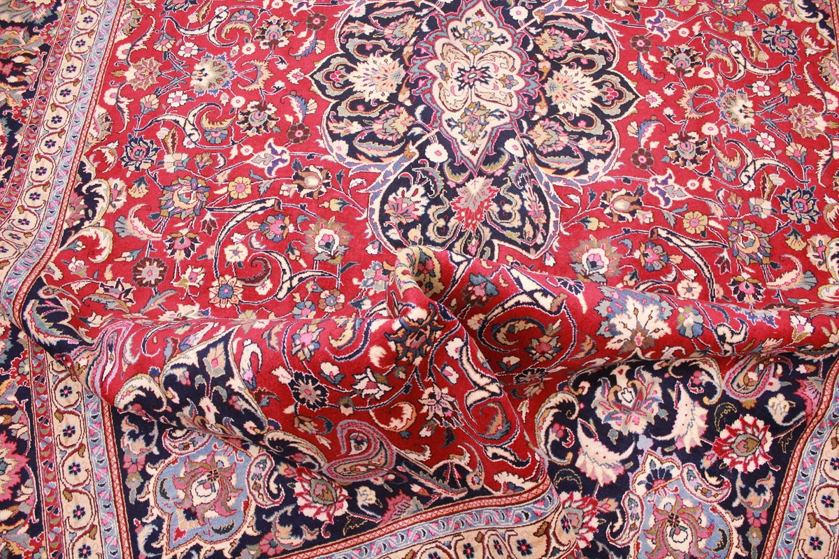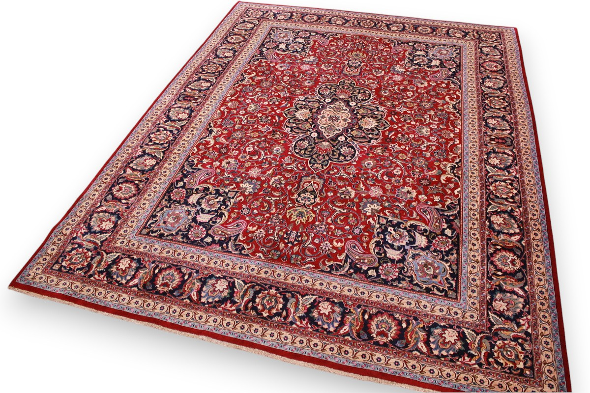 Maschhad-Teppiche können zwei Gruppen zugeordnet werden: Maschhad und türkisch Maschhad. Der Unterschied zwischen diesen beiden Gruppen liegt in den Knoten. Sowohl bei Maschhad- als auch bei Türkisch-Maschhad-Teppichen findet das als Islim bekannte Blumendesign Verwendung. Das in der Mitte befindliche Medaillon ist meistens rund. Die Farben sind lebendig und beinhalten einen großen Rotanteil. Der Saum setzt sich aus zwei oder mehr Sicherheitsstreifen (guard) zusammen und ist mit kleinen Blumenmotiven verziert.