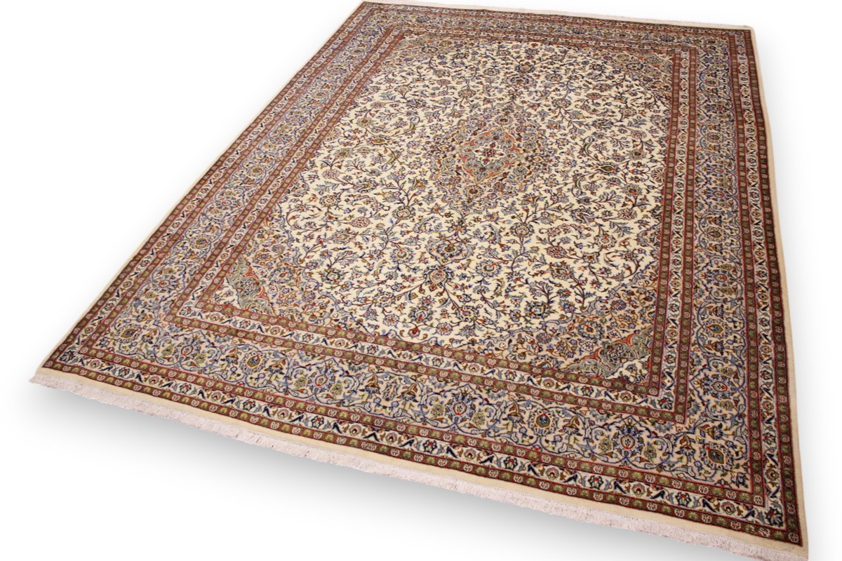Kashaan Teppiche stammen aus Zentralpersien und besitzen eine lange Textiltradition, unter anderem handgeknüpfte Teppiche. Diese klassischen Kashaan Teppiche werden von den Bewohnern der mittlerweile 80 umliegenden Dörfer hergestellt. Die Teppiche aus Kashaan haben meist ein Medallionmuster und rötliche und/oder dunkelblaue Farbtöne. Die Knüpfkunst der Kashaan Teppiche ist international sehr populär.