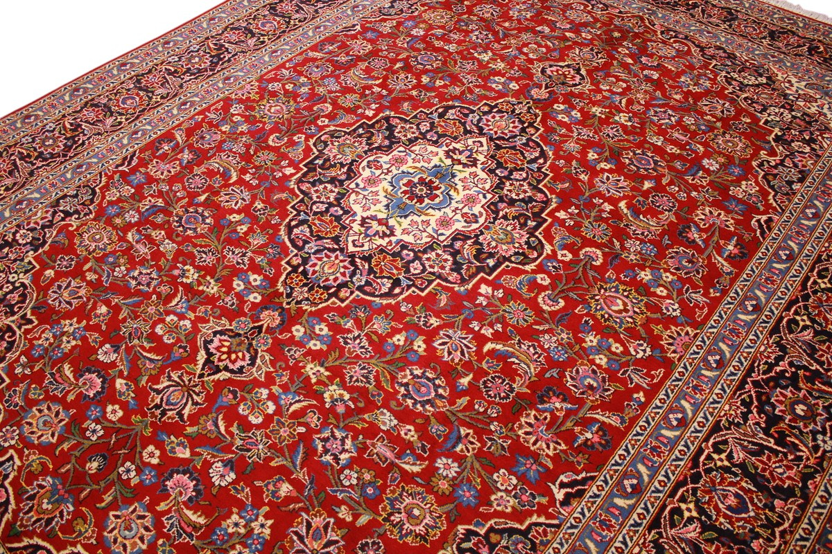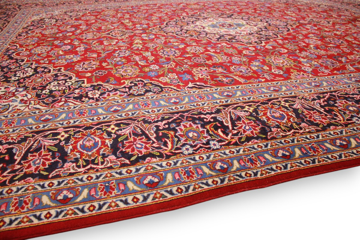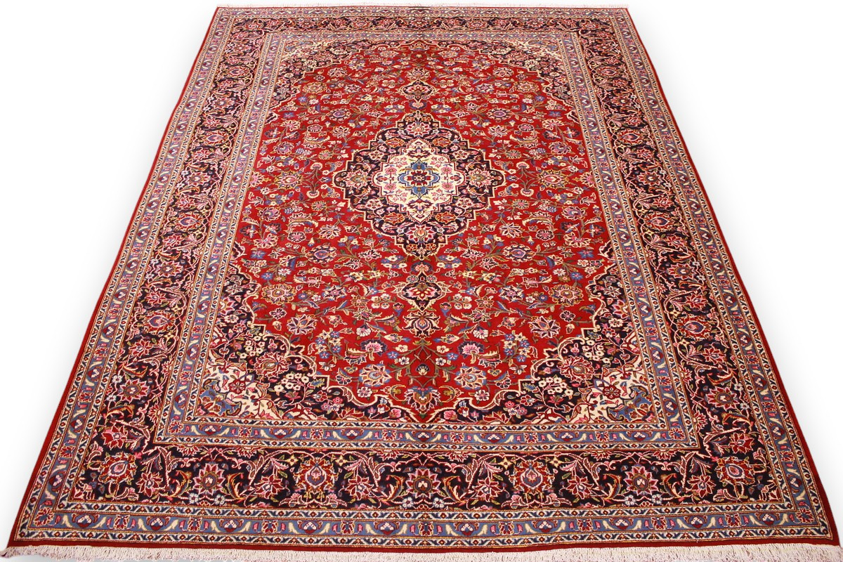 Kashaan Teppiche stammen aus Zentralpersien und besitzen eine lange Textiltradition, unter anderem handgeknüpfte Teppiche. Diese klassischen Kashaan Teppiche werden von den Bewohnern der mittlerweile 80 umliegenden Dörfer hergestellt. Die Teppiche aus Kashaan haben meist ein Medallionmuster und rötliche und/oder dunkelblaue Farbtöne. Die Knüpfkunst der Kashaan Teppiche ist international sehr populär.