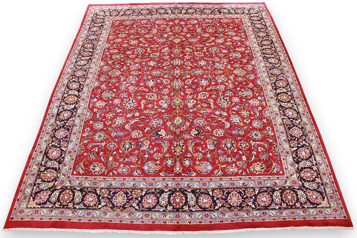Mashhad-Teppiche können zwei Gruppen zugeordnet werden: Mashhad und türkisch Maschhad. Der Unterschied zwischen diesen beiden Gruppen liegt in den Knoten. Sowohl bei Mashhad als auch bei Türkisch-Mashhad findet das als Islim bekannte Blumendesign Verwendung. Das in der Mitte befindliche Medaillon ist meistens rund. Die Farben sind lebendig und beinhalten einen großen Rotanteil. Der Saum setzt sich aus zwei oder mehr Sicherheitsstreifen (guard) zusammen und ist mit kleinen Blumenmotiven verziert.