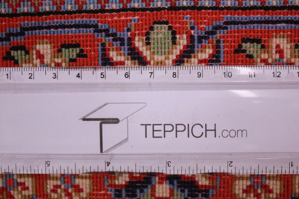 Trotz der vielseitigen Farbpalette hat der Gom-Teppich niemals grelle Farkontraste, sondern achtet auf eine harmonische Farbabstimmung. Bemerkenswert ist auch die äußerst exakte Knüpfung, die fast an Maschinenarbeit erinnert.