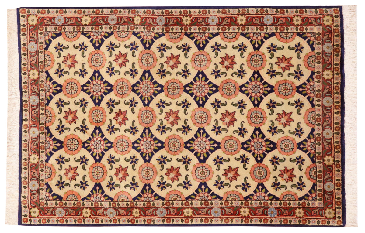 Waraminteppiche sind einer der qualitativ feinsten Teppiche überhaupt. Diese haben etwa 500.000 Knoten per Quadratmeter und haben ihr eigenes spezielles Design mit sehr vielen Vögelabbildungen und Paradiesmuster.