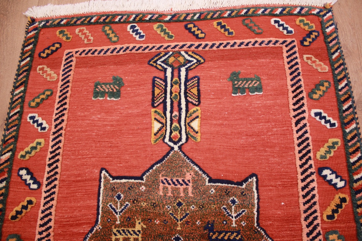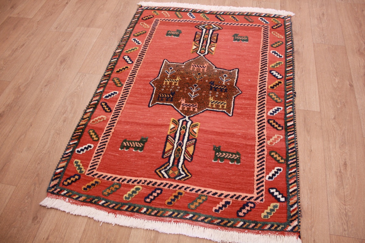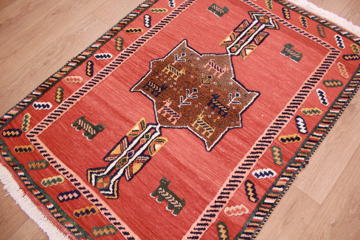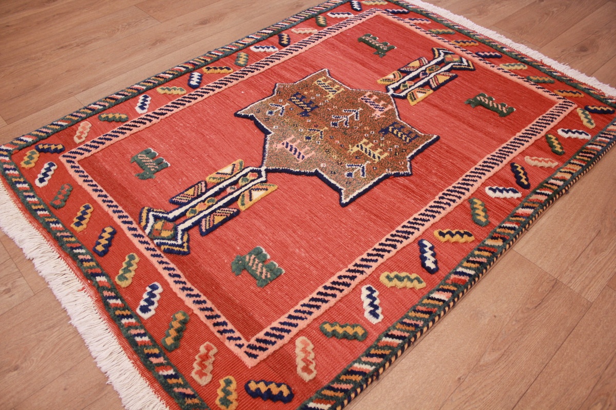Sie werden sehr kunstvoll geknüpft und sind eine Kombination aus handgewebtem Kelim und handgeknüpftem Teppich.