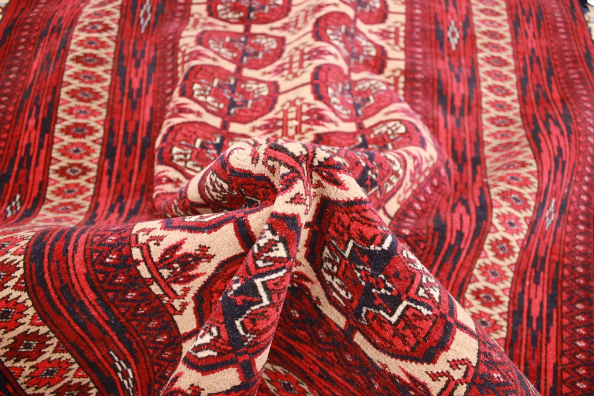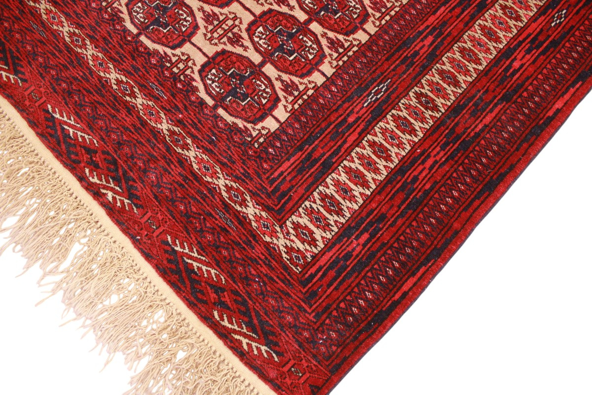 Turkmenische Teppiche werden in und um Turkmenistan geknüpft. Für die Herstellung von turkmenishe Teppiche verwendet man Wolle hoher Qualität und die Fransen sind aus Baumwolle oder Seide. Rot ist die dominierende Farbe bei diesen Teppichen.