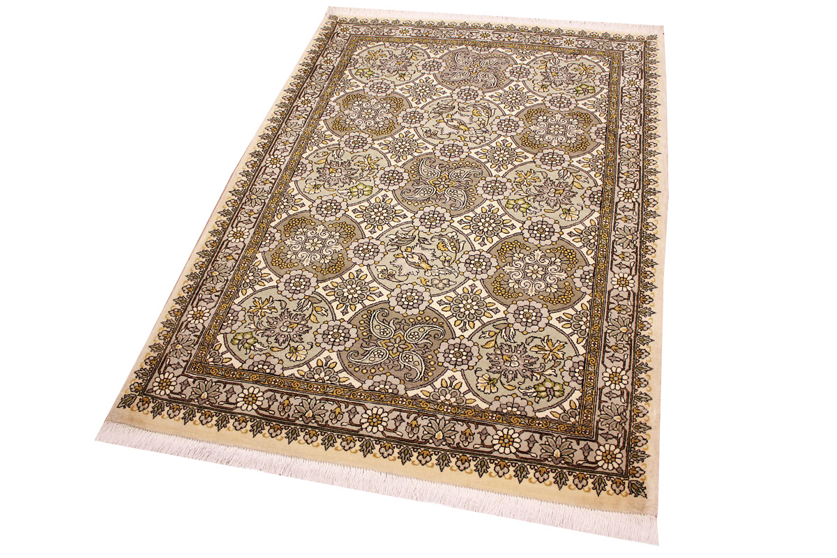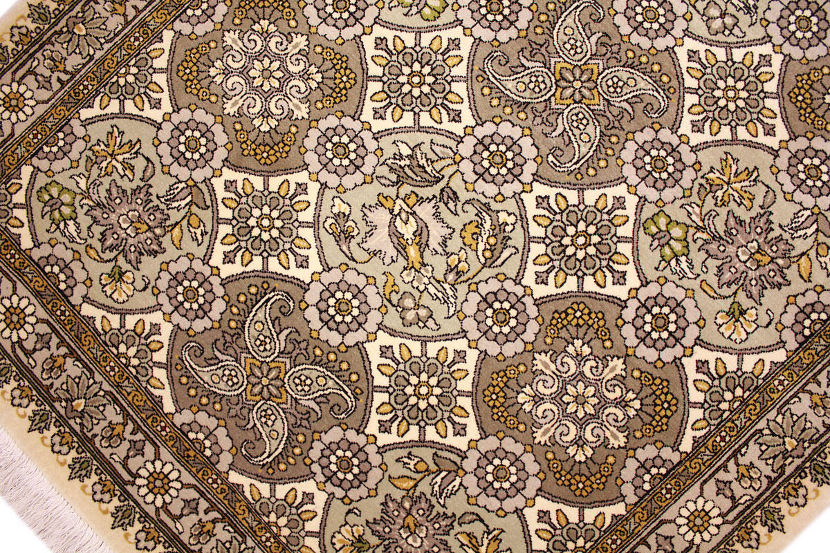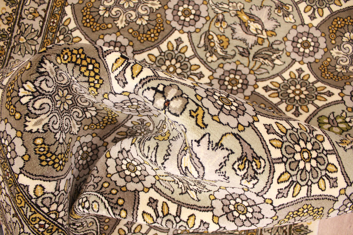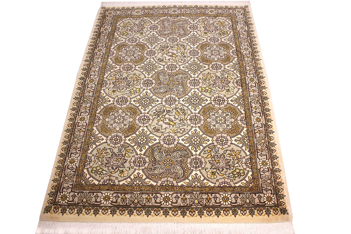 Waraminteppiche sind einer der qualitativ feinsten Teppiche überhaupt. Diese haben etwa 500.000 Knoten per Quadratmeter und haben ihr eigenes spezielles Design mit sehr vielen Vögelabbildungen und Paradiesmuster.