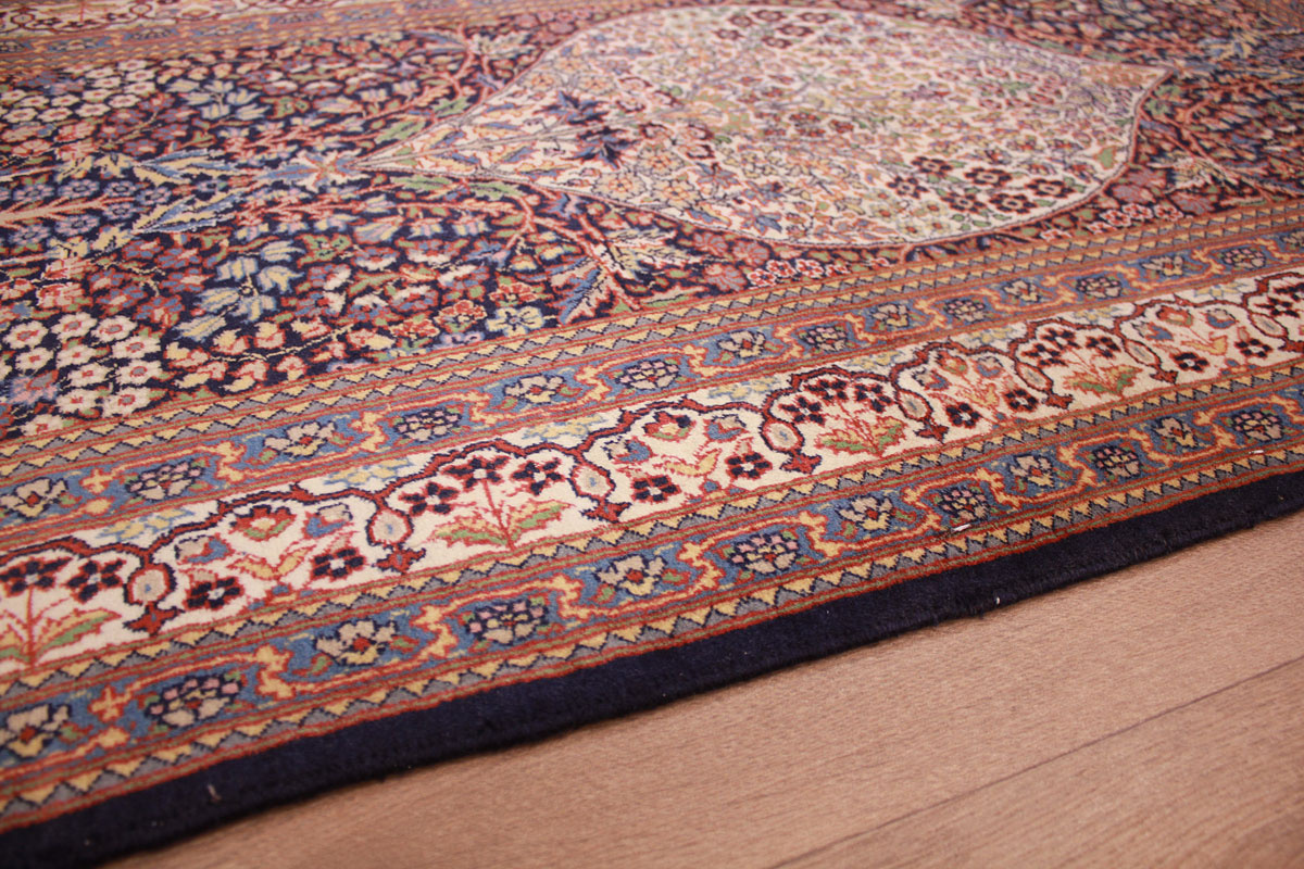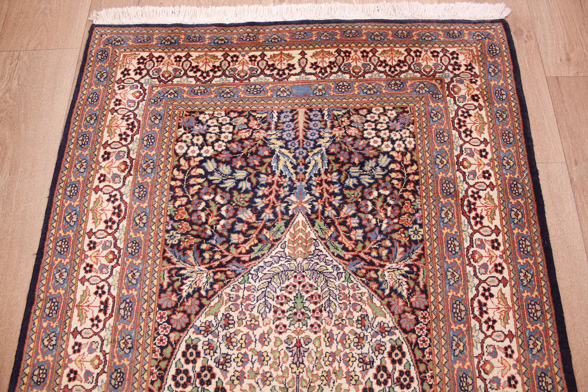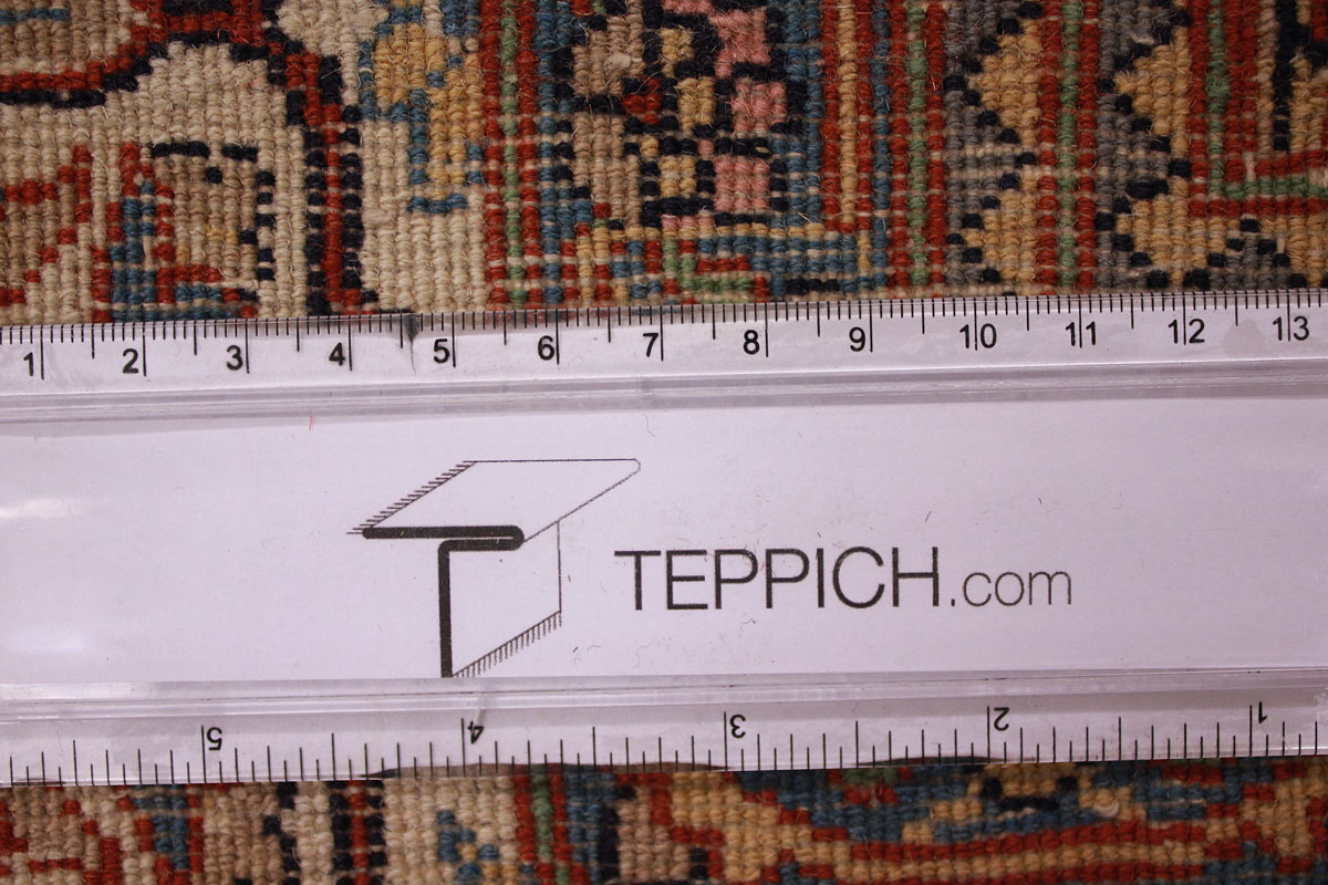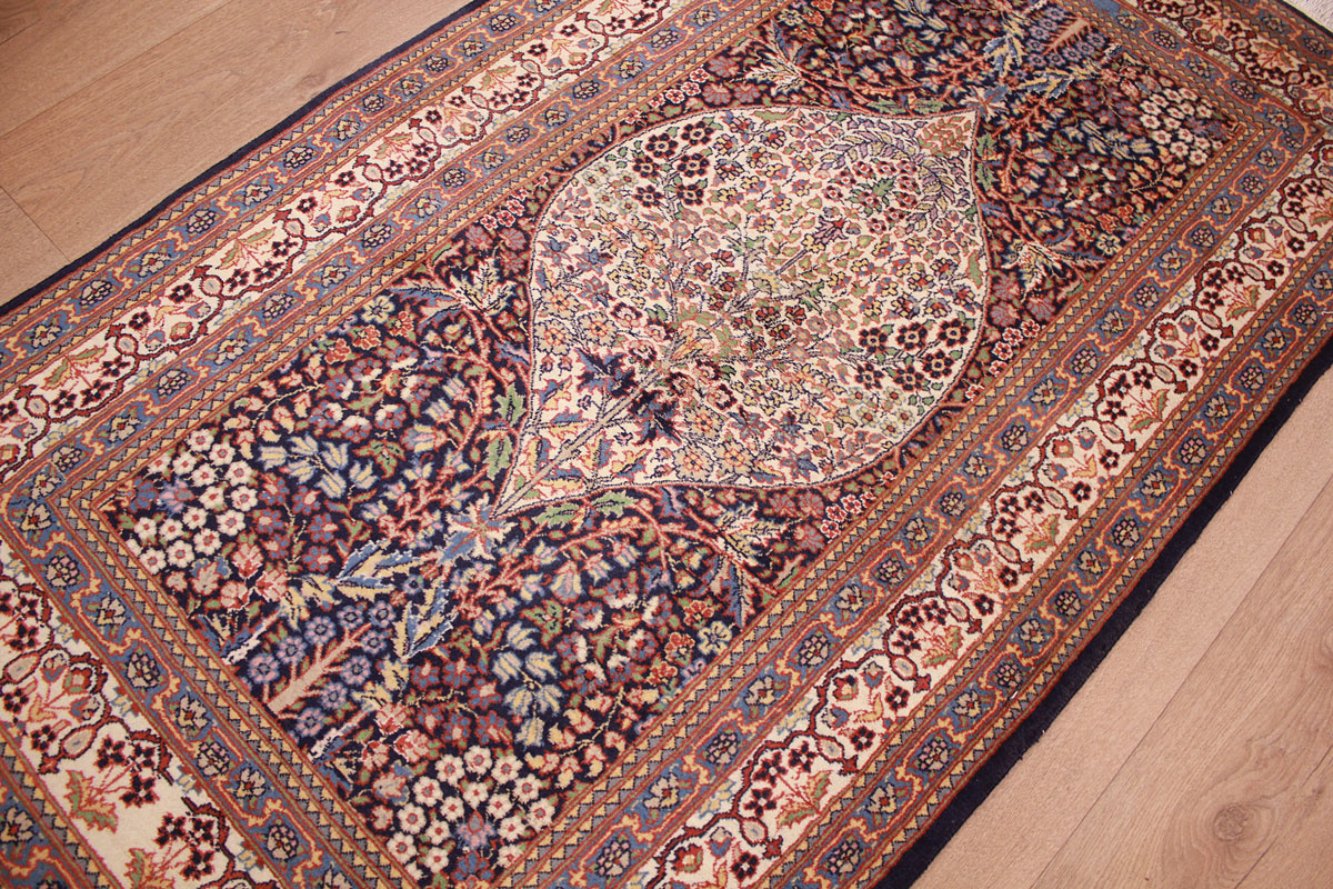 Trotz der vielseitigen Farbpalette hat der Gom-Teppich niemals grelle Farkontraste, sondern achtet auf eine harmonische Farbabstimmung. Bemerkenswert ist auch die äußerst exakte Knüpfung, die fast an Maschinenarbeit erinnert.
