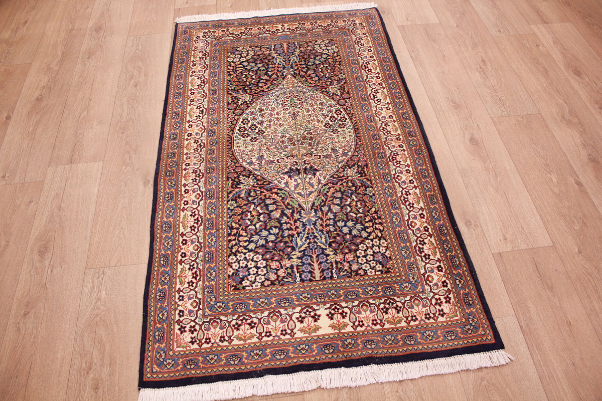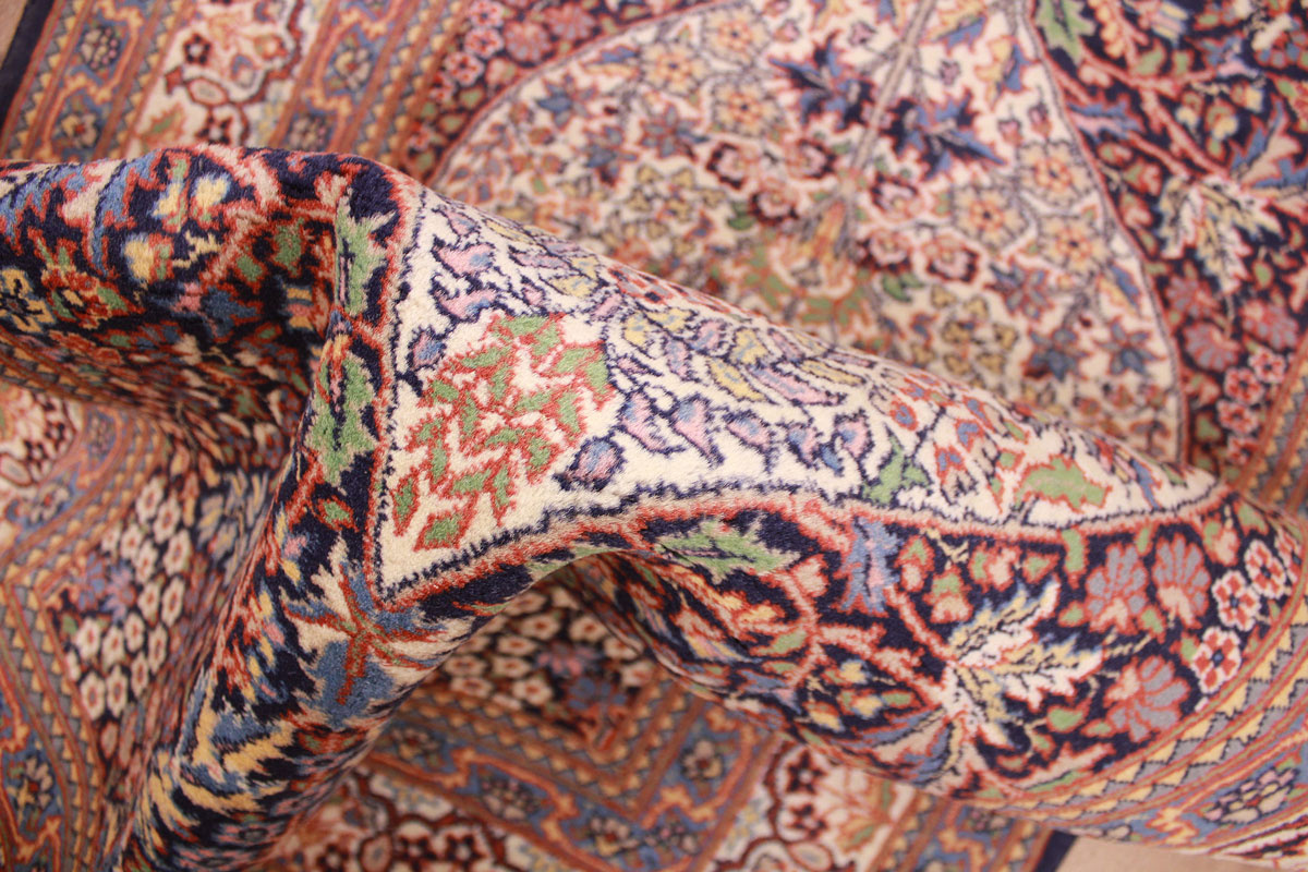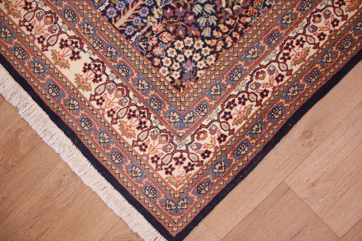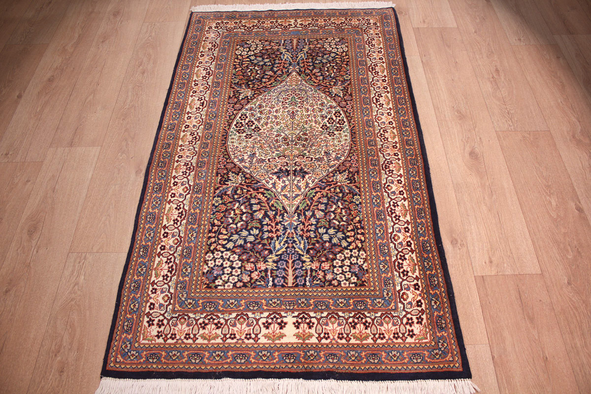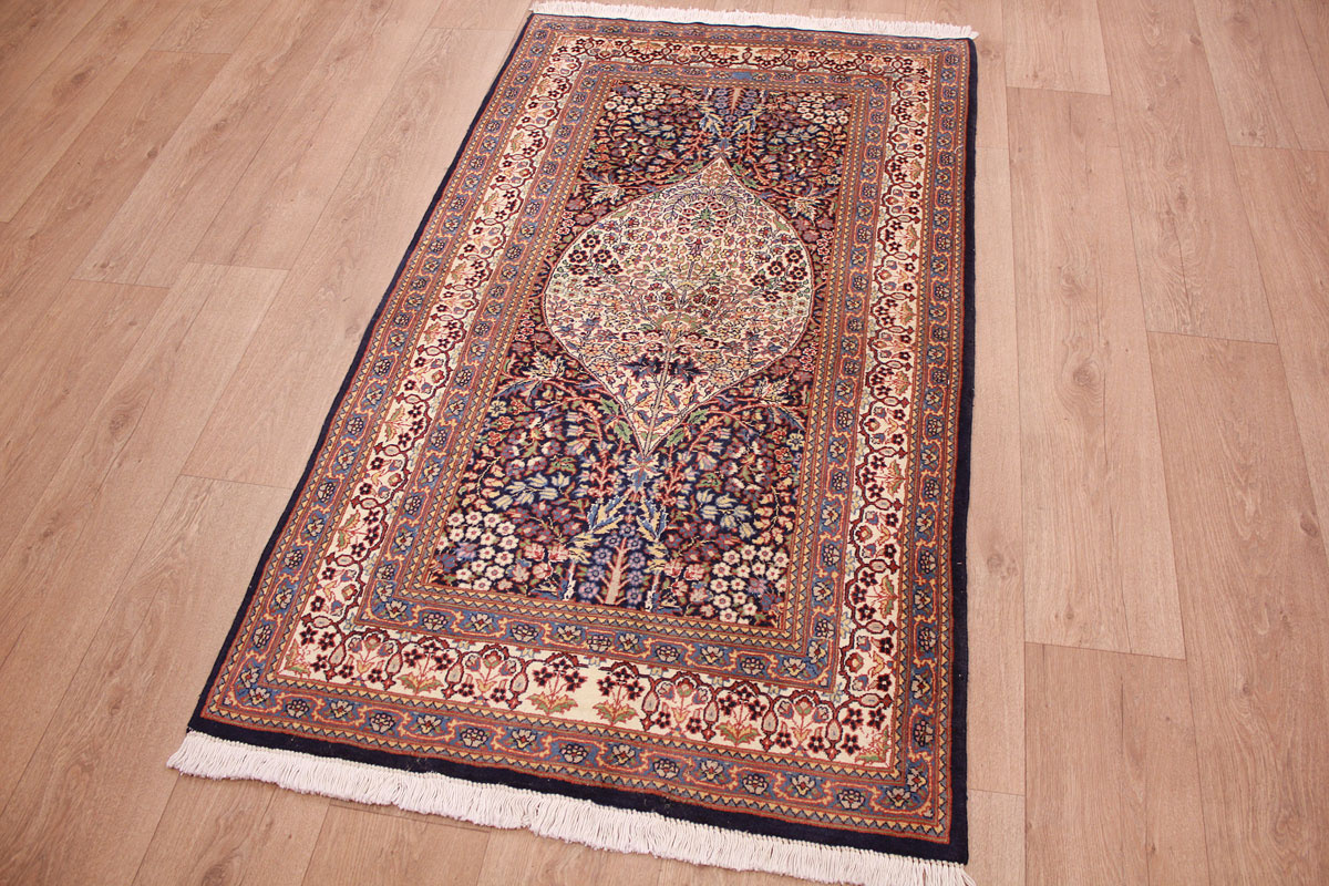 Trotz der vielseitigen Farbpalette hat der Gom-Teppich niemals grelle Farkontraste, sondern achtet auf eine harmonische Farbabstimmung. Bemerkenswert ist auch die äußerst exakte Knüpfung, die fast an Maschinenarbeit erinnert.