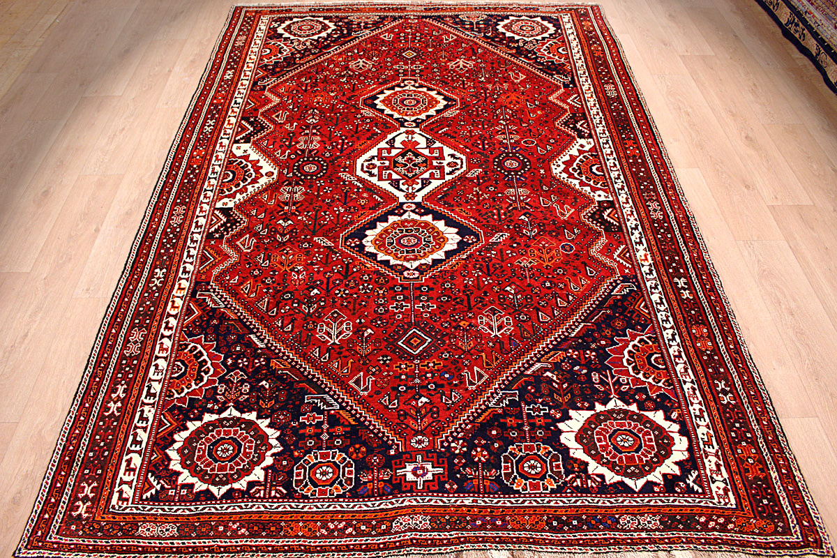 Die Ghashghai´s sind für ihre ausgezeichneten Stapelteppiche und andere gesponnene Wolleprodukte berühmt. Die Wolle, die in den Bergen und in den Senken nahe Shiraz produziert wird, ist außergewöhnlich weich und schön und nimmt eine tiefere Farbe als Wollen von anderen Teilen von Persien.
