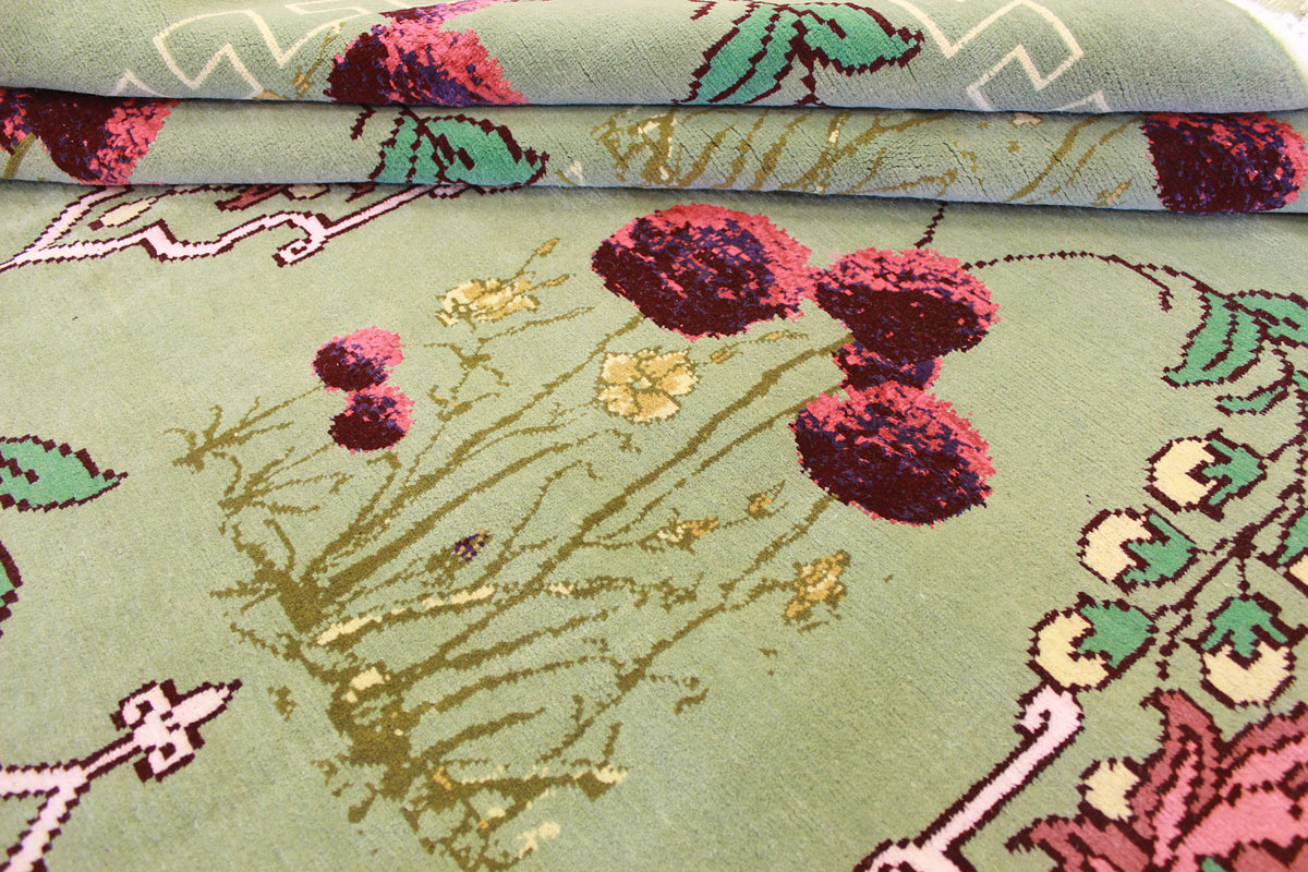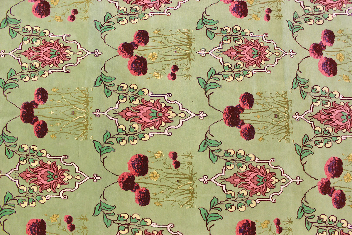 Waraminteppiche sind einer der qualitativ feinsten Teppiche überhaupt. Diese haben etwa 500.000 Knoten per Quadratmeter und haben ihr eigenes spezielles Design mit sehr vielen Vögelabbildungen und Paradiesmuster.