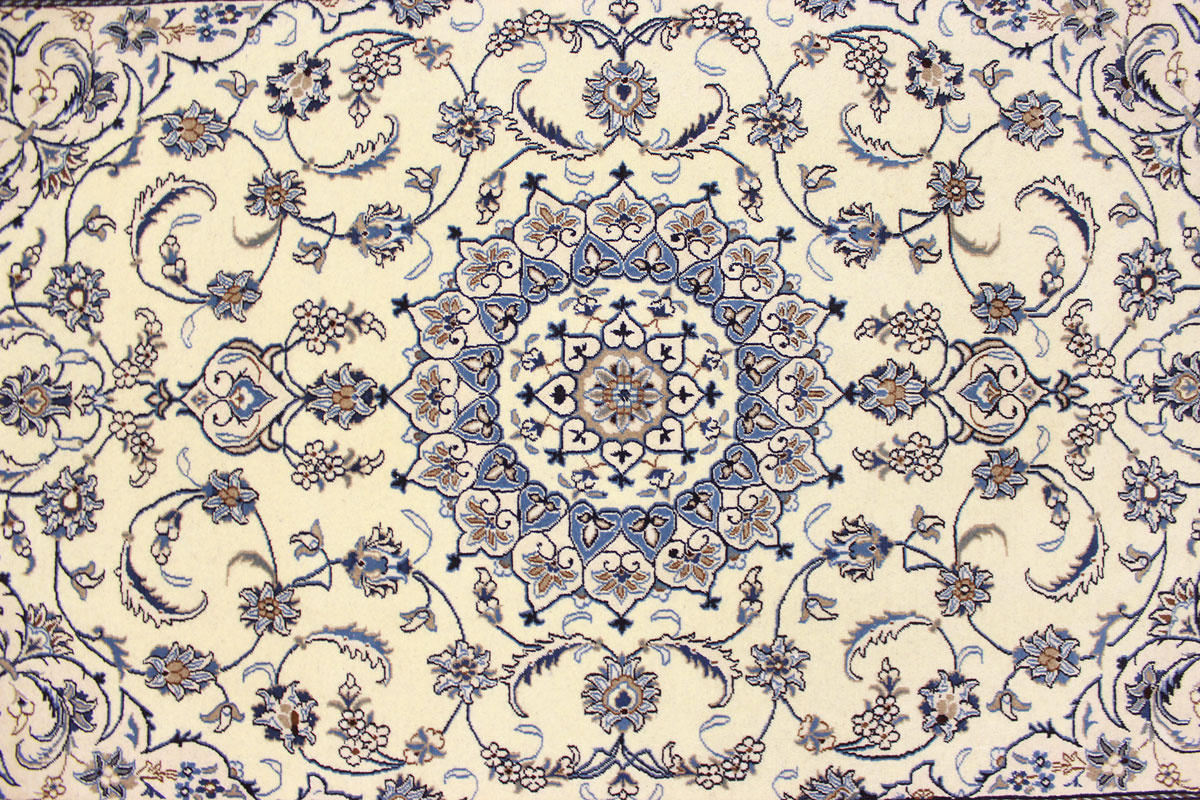 Die Stadt Nain in der Nähe von Isfahan im Zentralpersien ist bekannt für ihre feinen Teppiche, die mehr als eine Million Knoten pro Quadratmeter haben können. Je feiner die Kette, desto feiner kann auch die Knüpfung sein. In der Regel gibt es vier Qualitäten: Nain-Kaschmar (grob geknüpft), Nain-Noh-La (Baumwollfaden der Kette aus 9 Fasern gezwirnt, wodurch 40 Raj auf 7 cm kommen), Nain-Schisch-La (6 Fasern entsprechend 60 Raj), Nain-Tchaha-La (4 Fasern entsprechend 80 Raj). Alle Nain Teppiche sind durchgemustert und mit Medaillon.