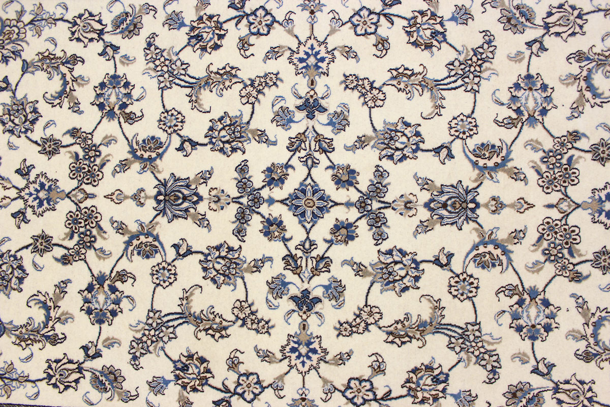 Die Stadt Nain in der Nähe von Isfahan im Zentralpersien ist bekannt für ihre feinen Teppiche, die mehr als eine Million Knoten pro Quadratmeter haben können. Je feiner die Kette, desto feiner kann auch die Knüpfung sein. In der Regel gibt es vier Qualitäten: Nain-Kaschmar (grob geknüpft), Nain-Noh-La (Baumwollfaden der Kette aus 9 Fasern gezwirnt, wodurch 40 Raj auf 7 cm kommen), Nain-Schisch-La (6 Fasern entsprechend 60 Raj), Nain-Tchaha-La (4 Fasern entsprechend 80 Raj). Alle Nain Teppiche sind durchgemustert und mit Medaillon.