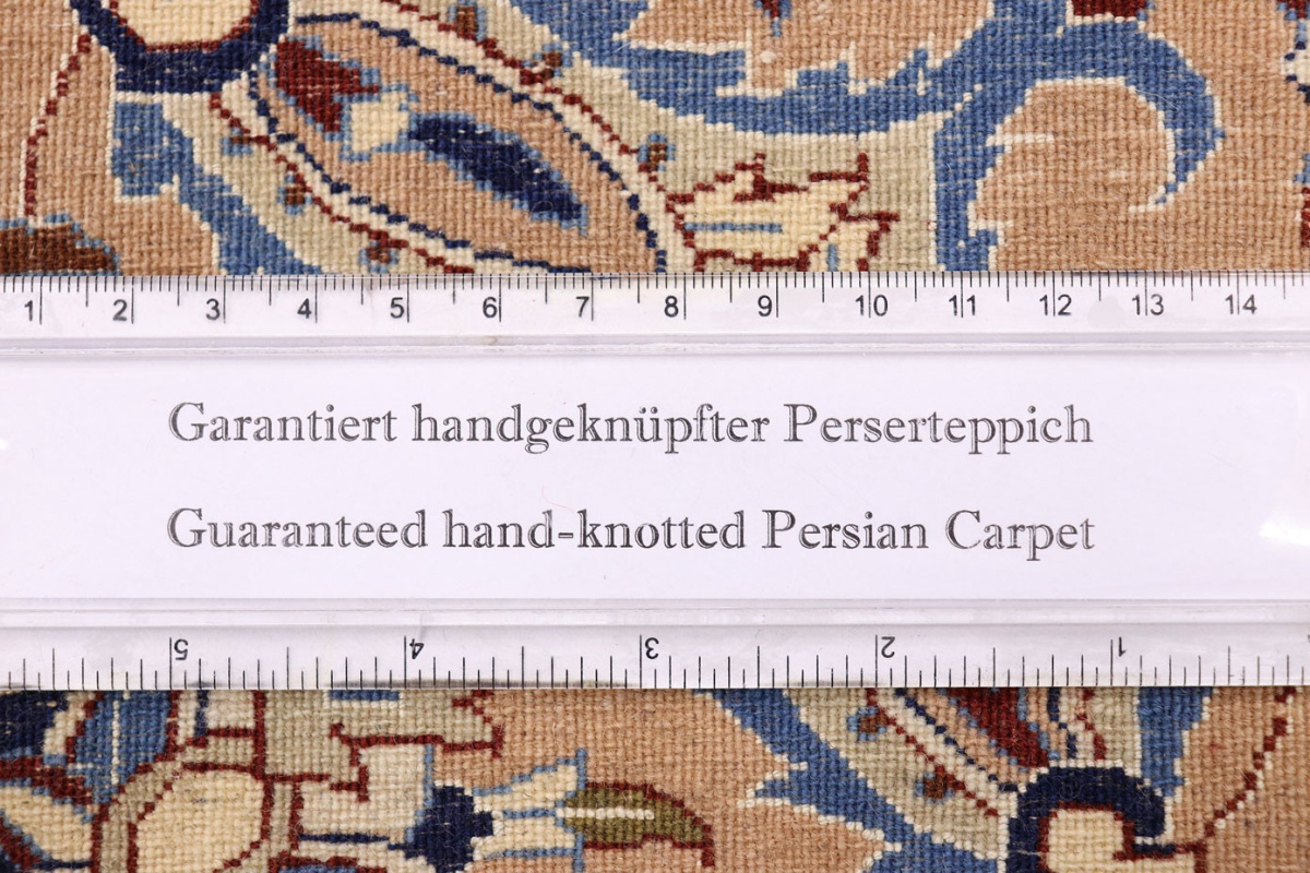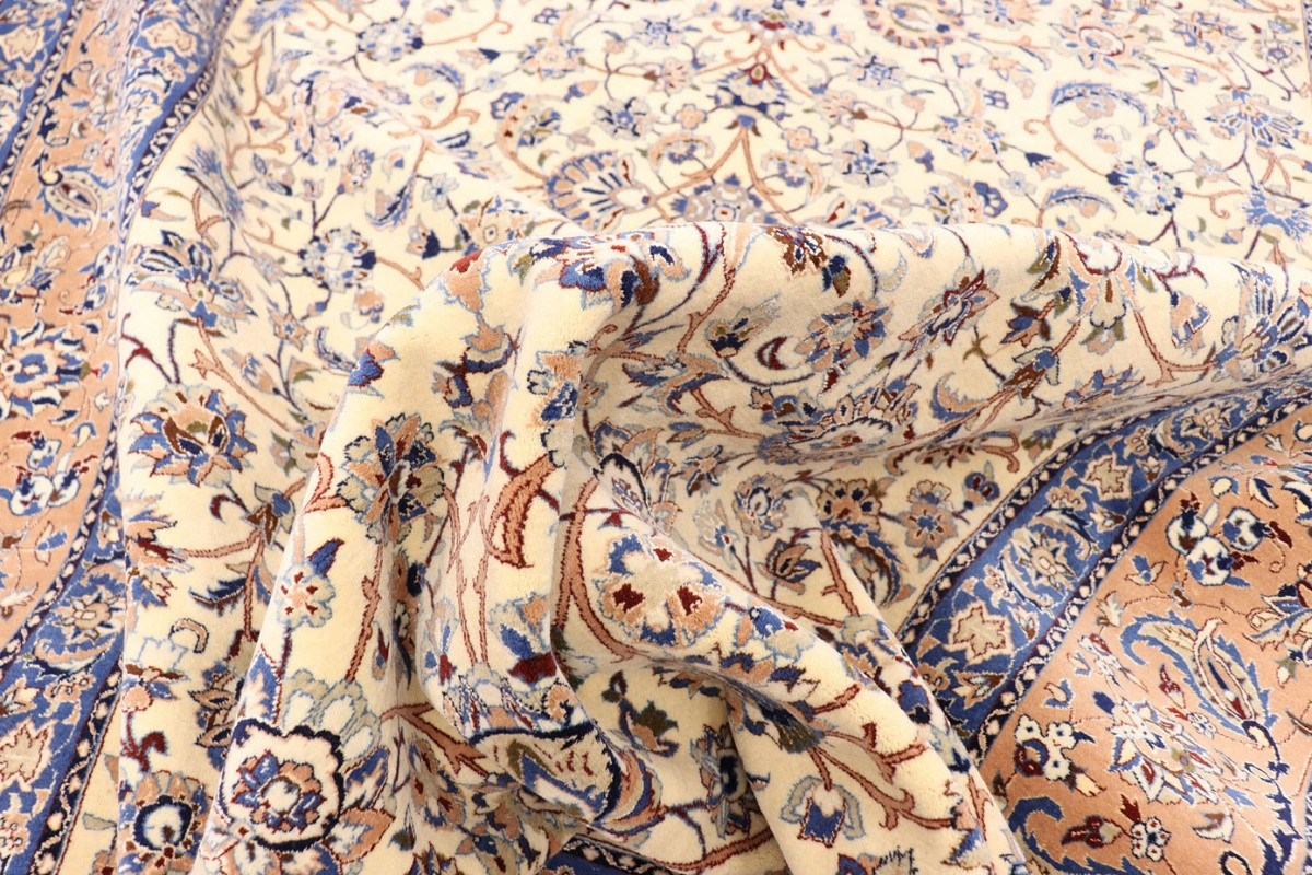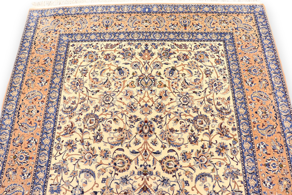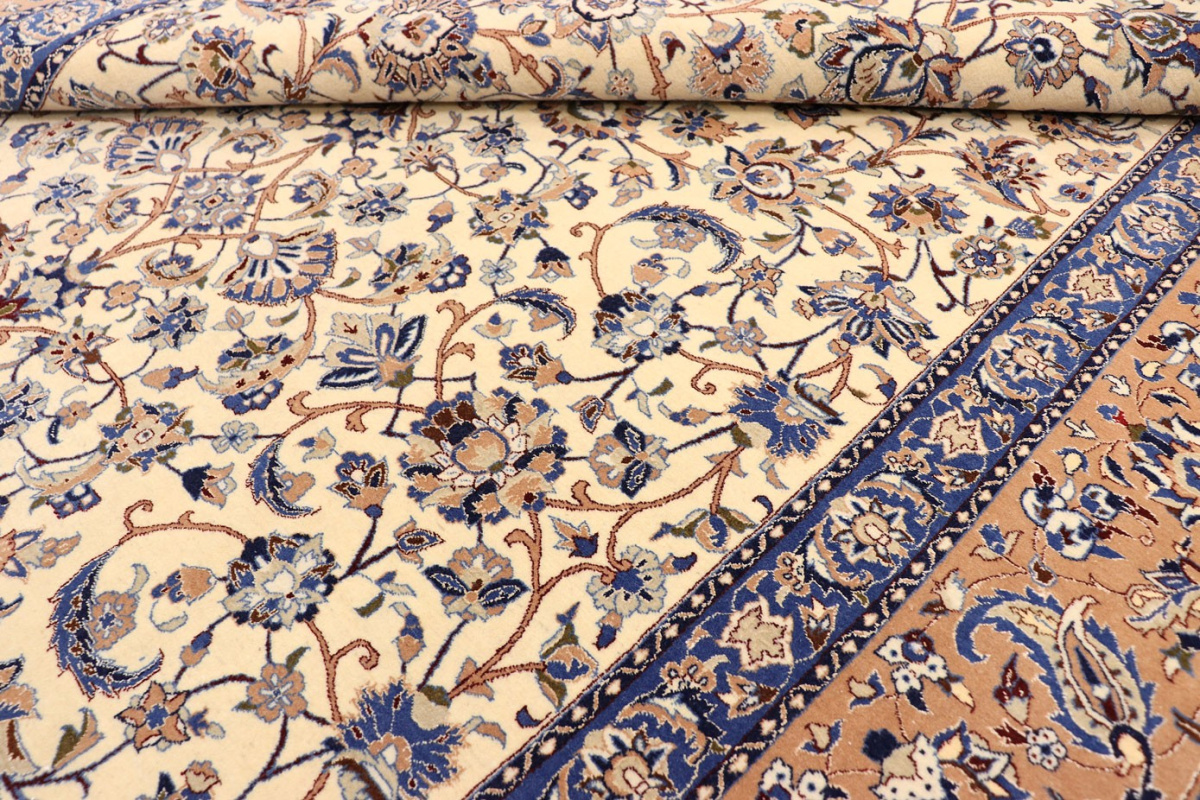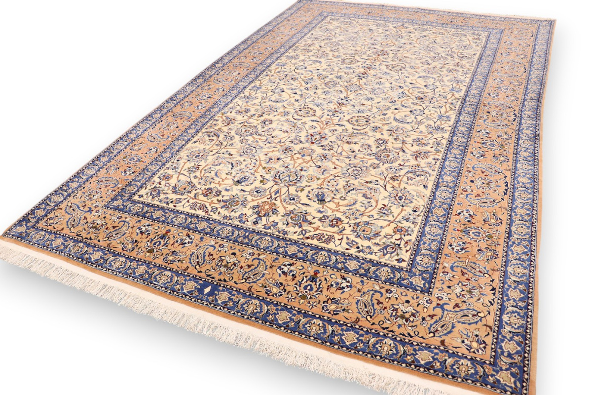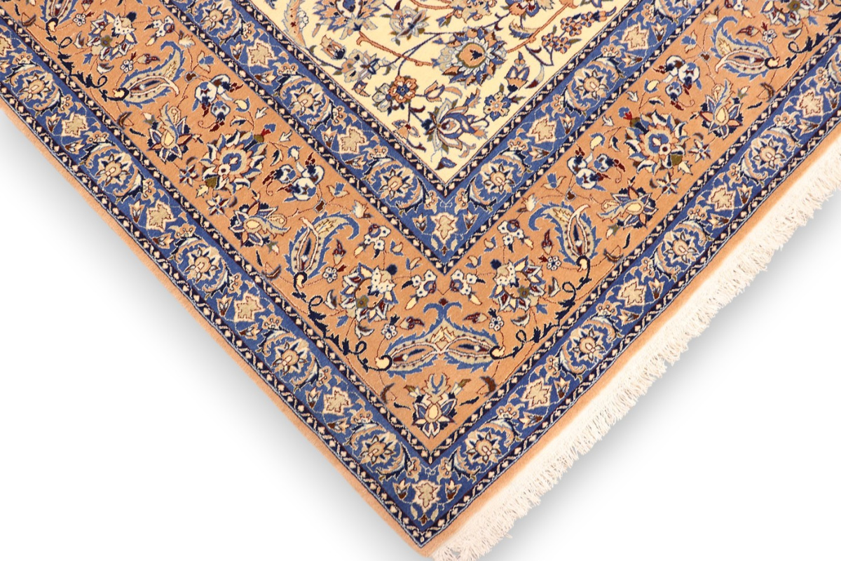Nain Teppiche sind entweder durchgemustert oder mit Medallion. Typische Farbkombinationen von Nain Teppichen sind Blau-Beige oder Rot-Beige und selten Grün-Beige.