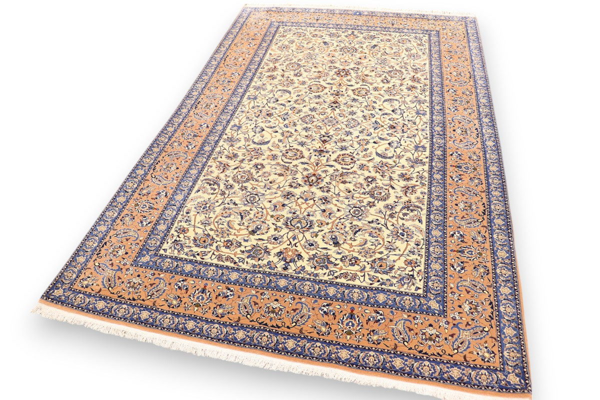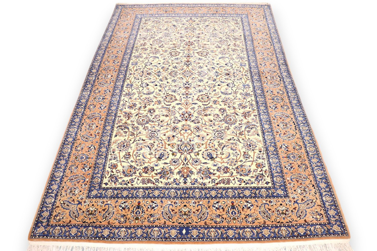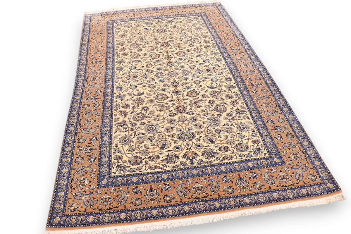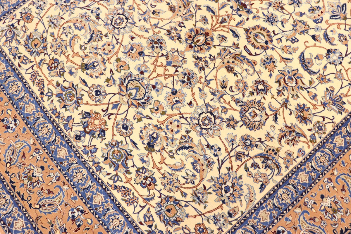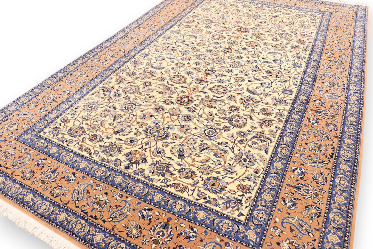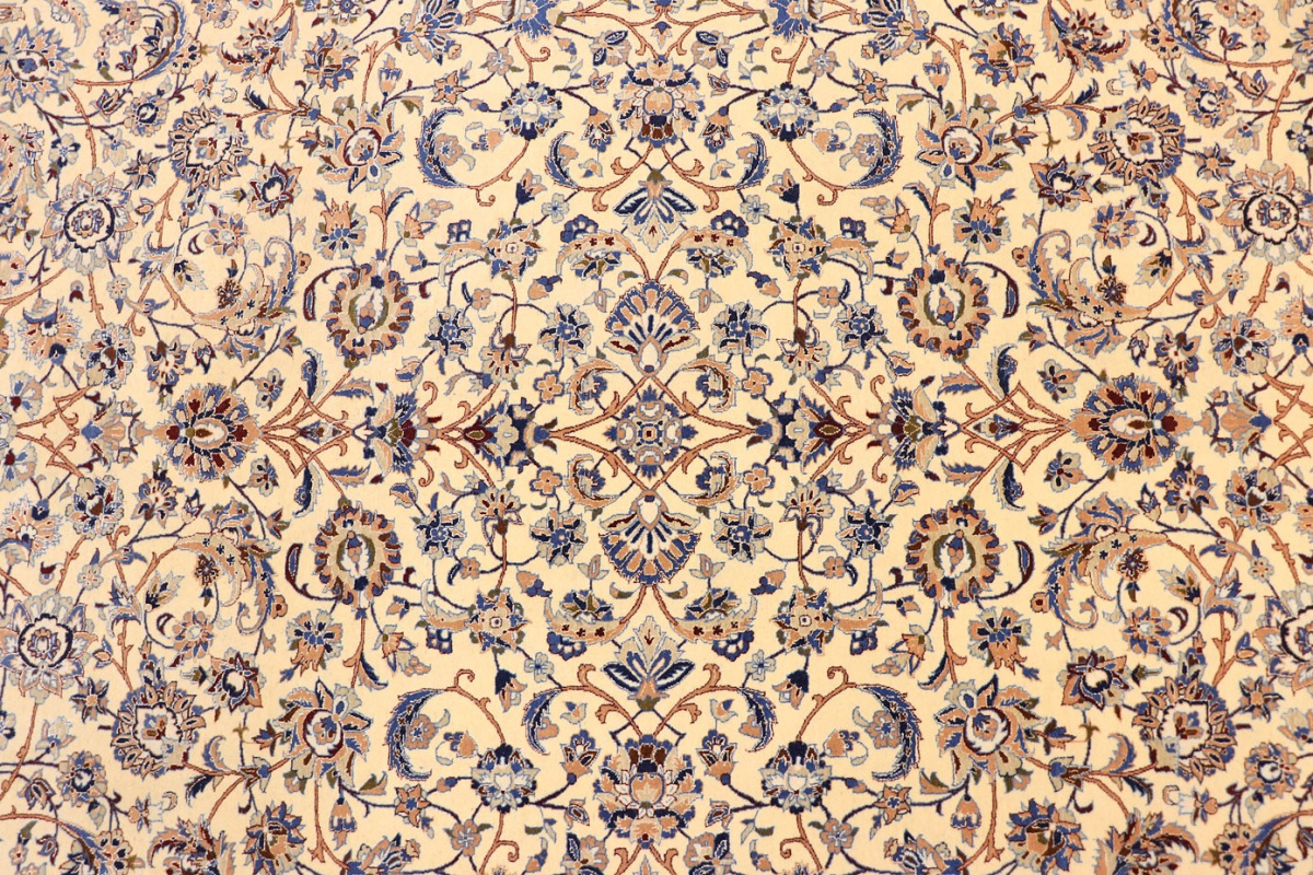 Nain Teppiche sind entweder durchgemustert oder mit Medallion. Typische Farbkombinationen von Nain Teppichen sind Blau-Beige oder Rot-Beige und selten Grün-Beige.