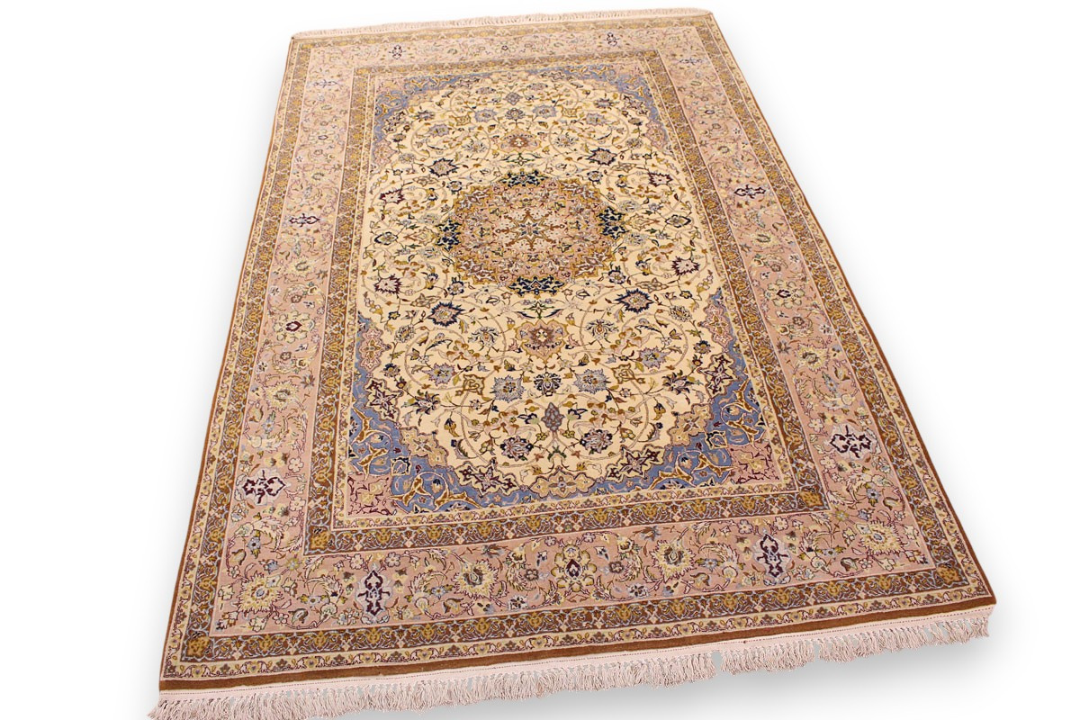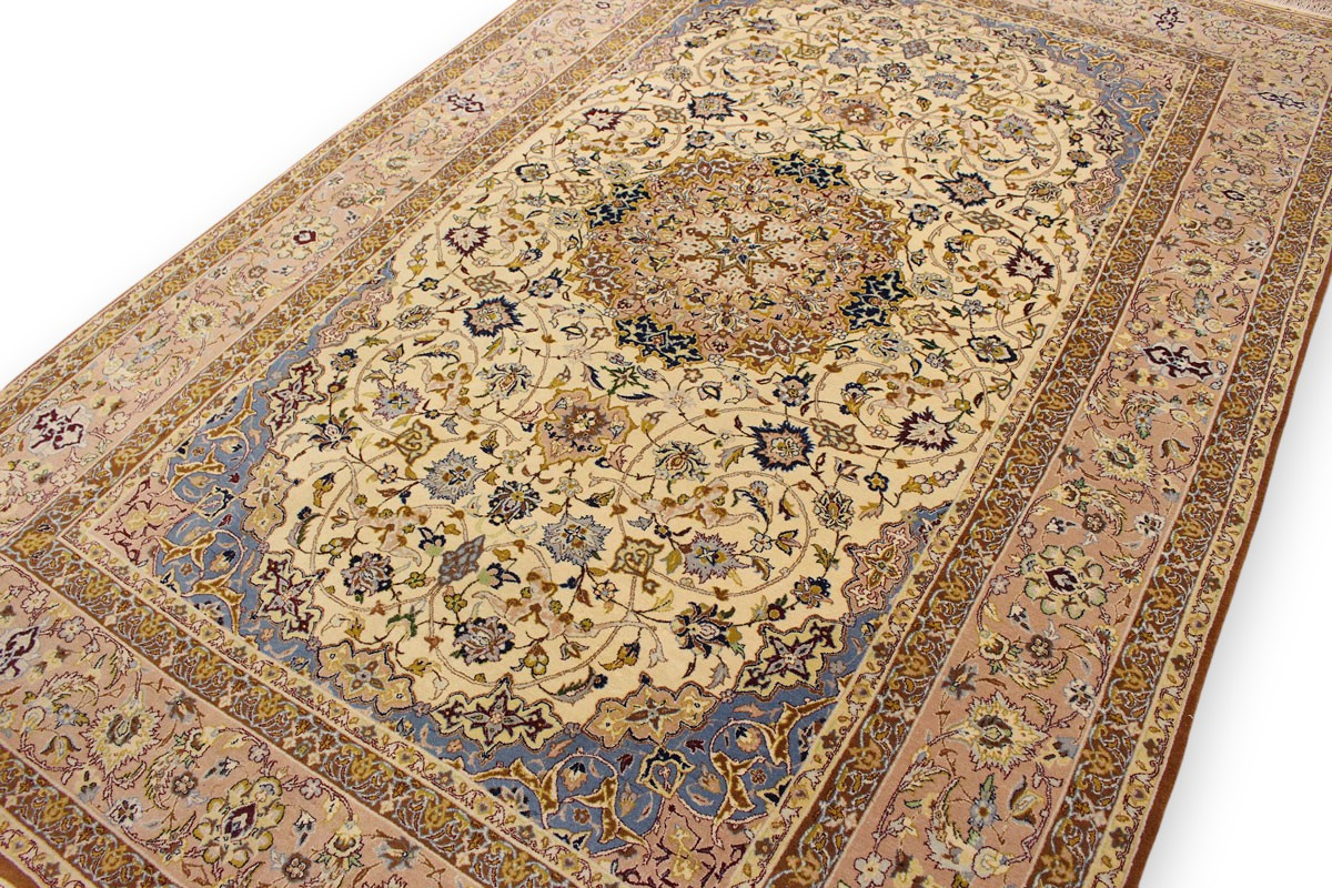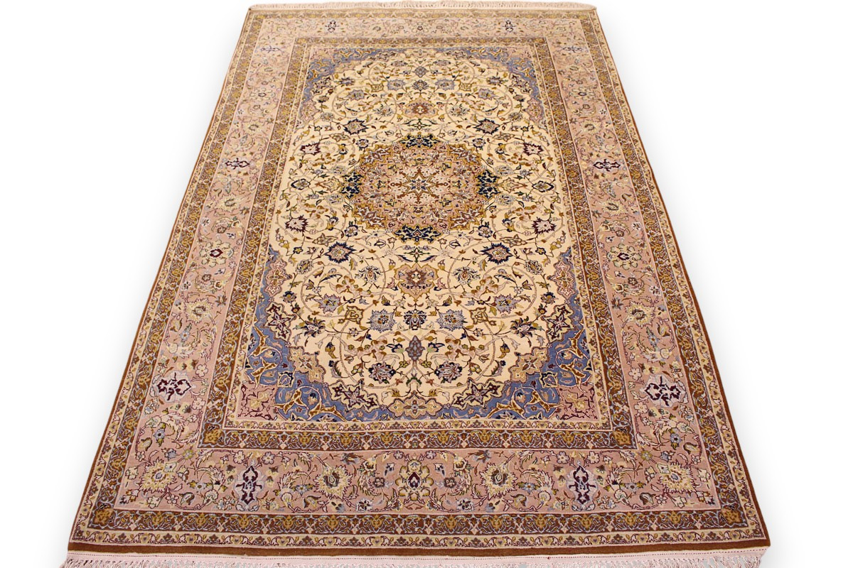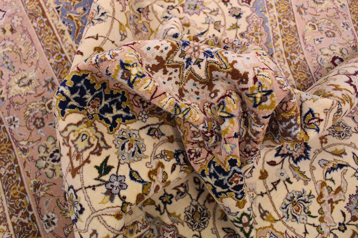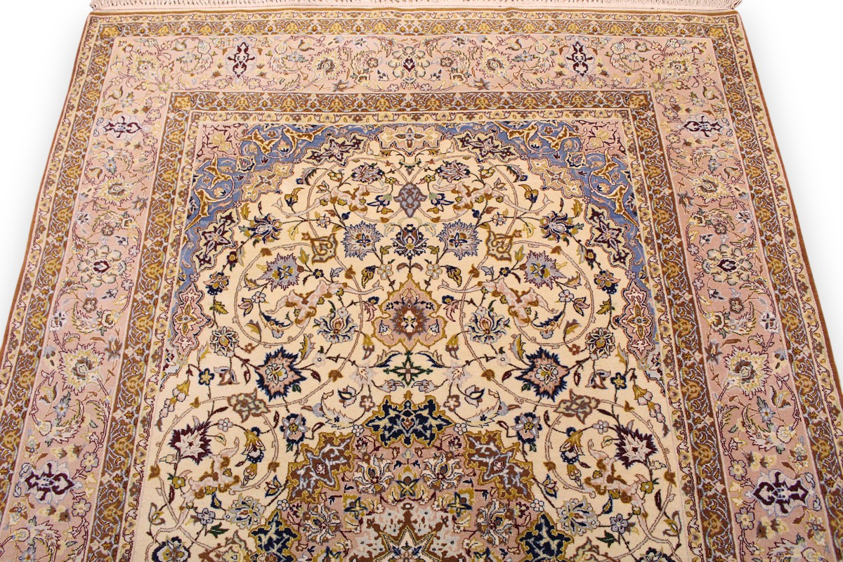 Feiner Perserteppich Isfahan mit Seide 235x151 cm Beige