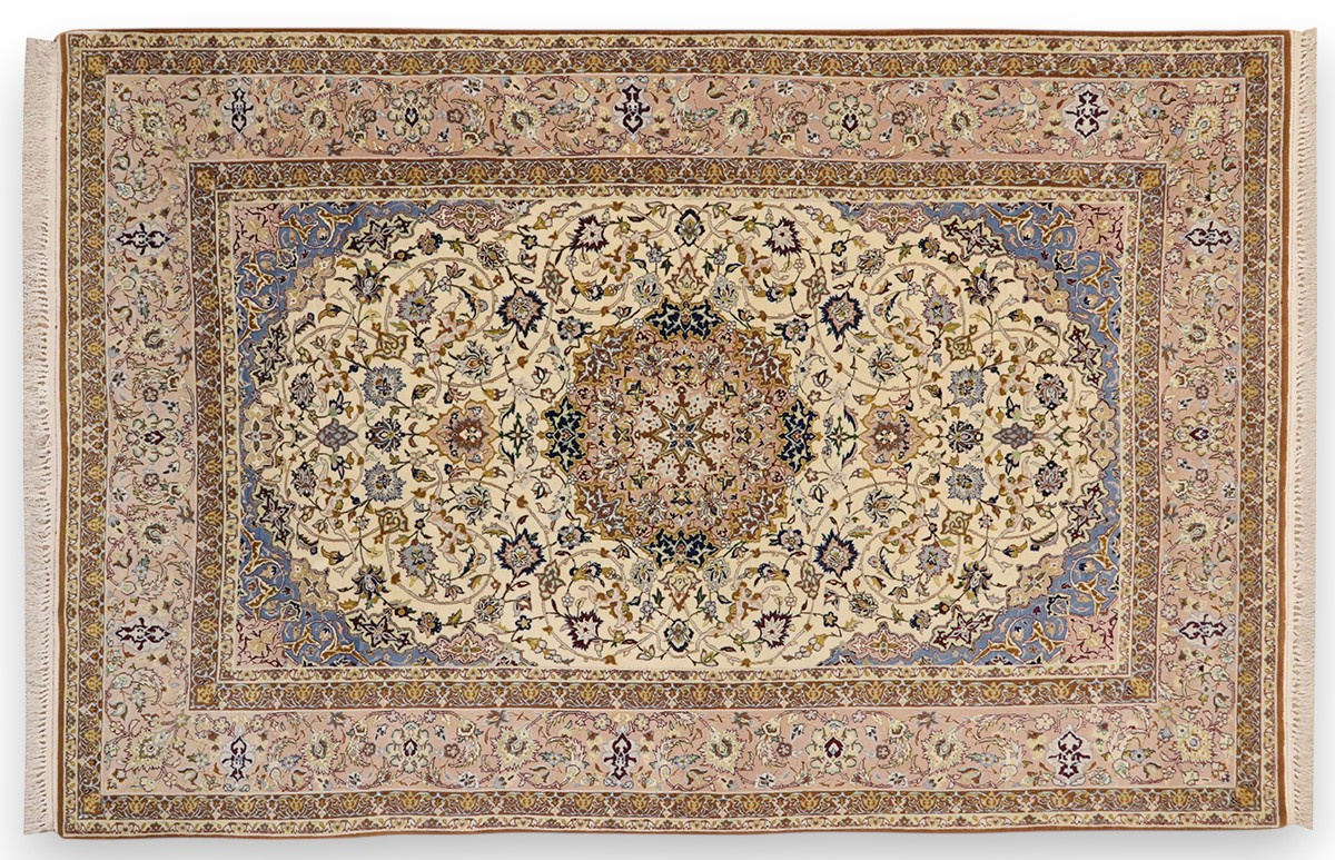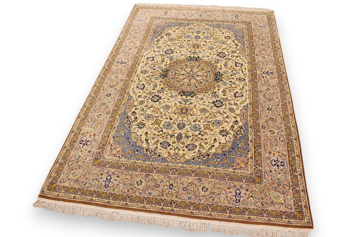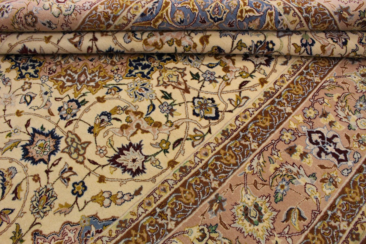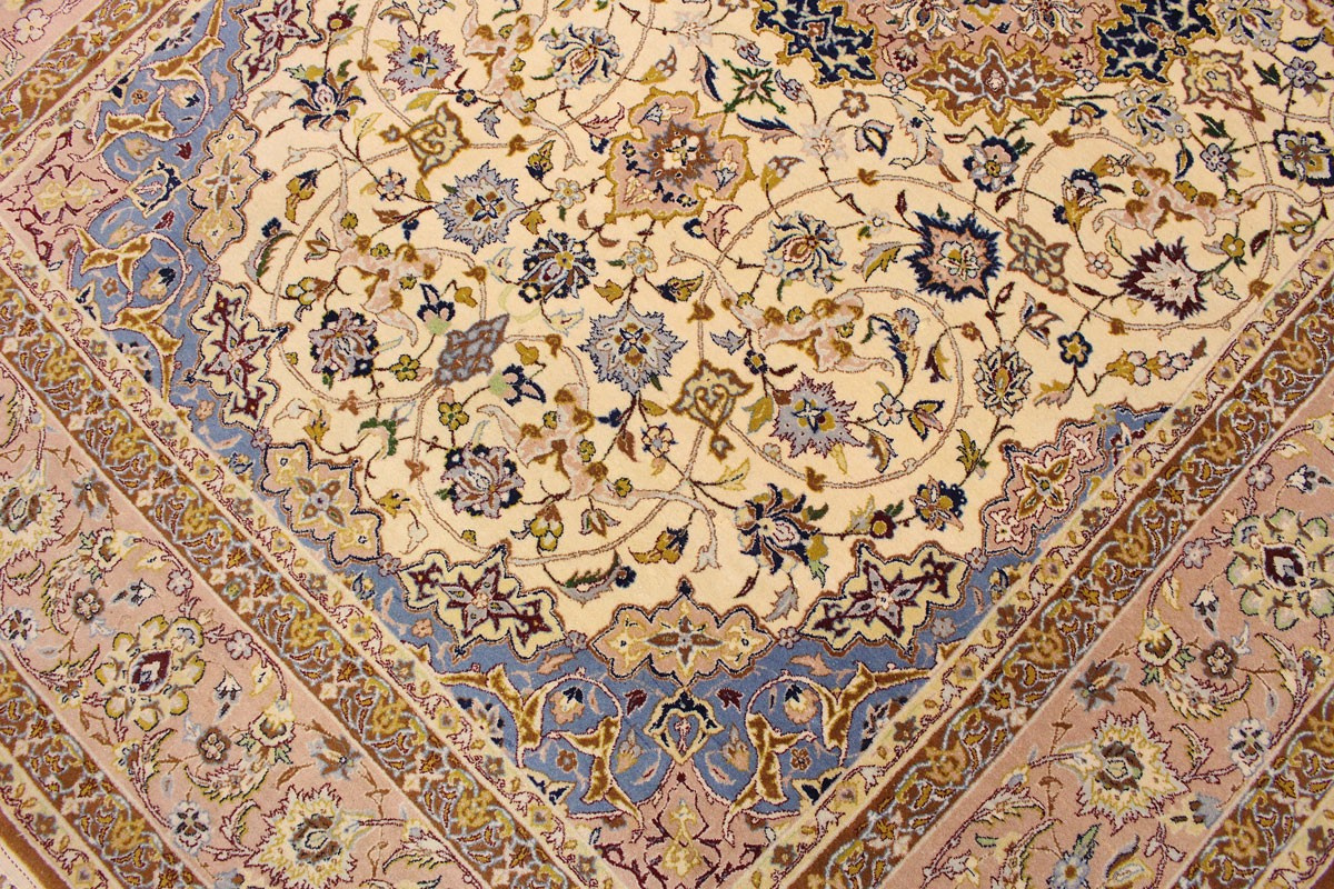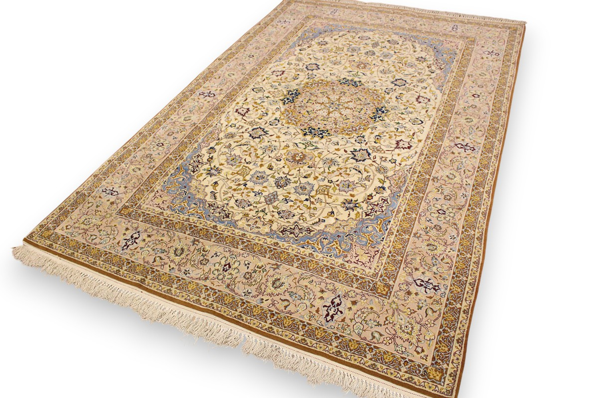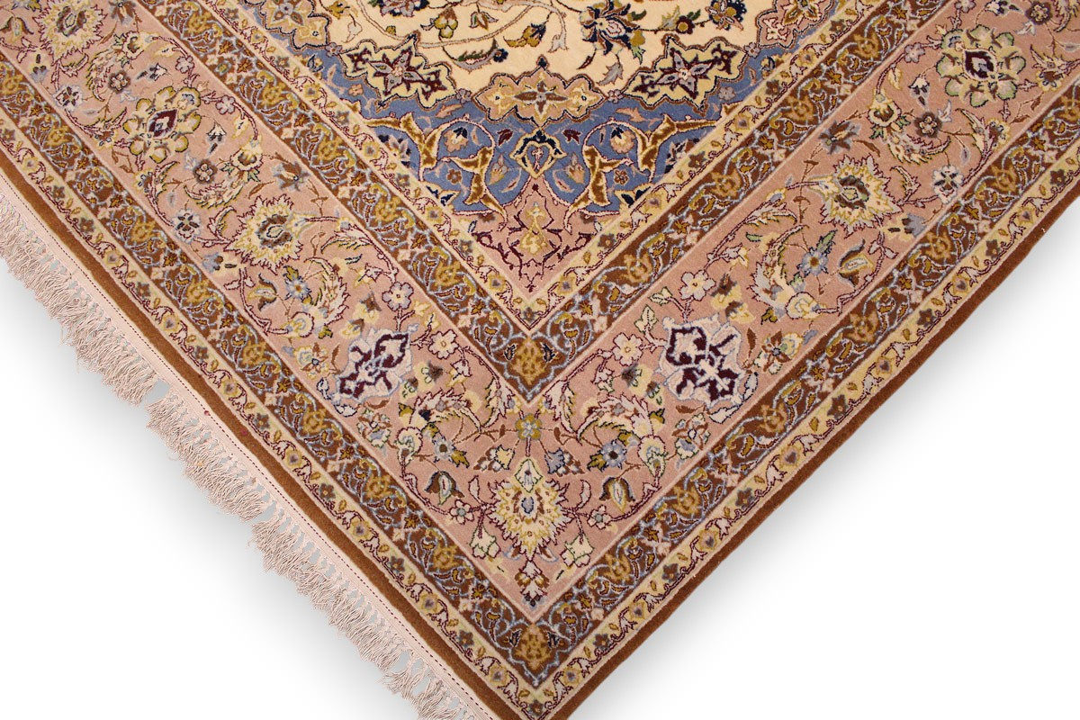 Feiner Perserteppich Isfahan mit Seide 235x151 cm Beige