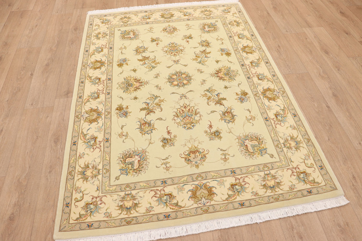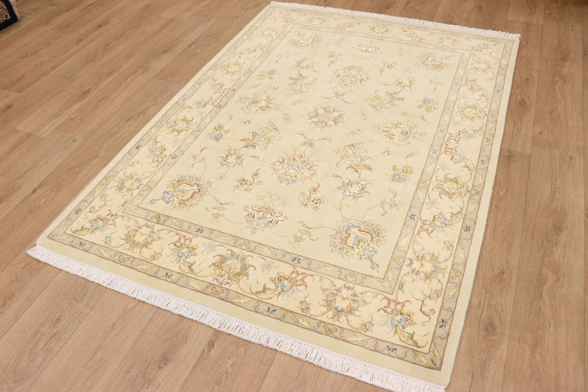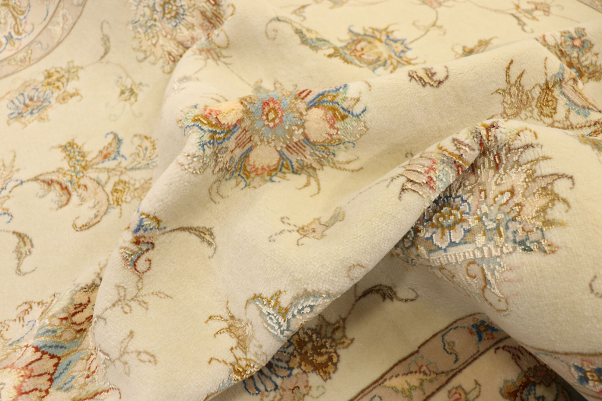 Perser Teppich Täbriz mit Seide 203x145 cm Beige