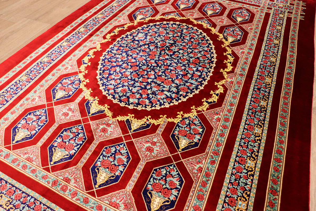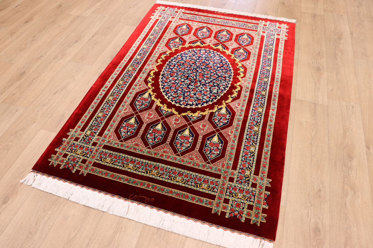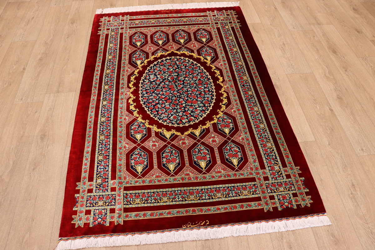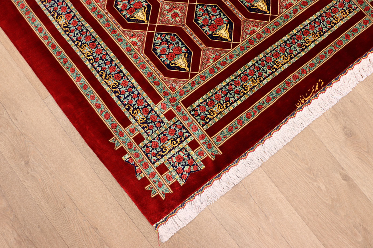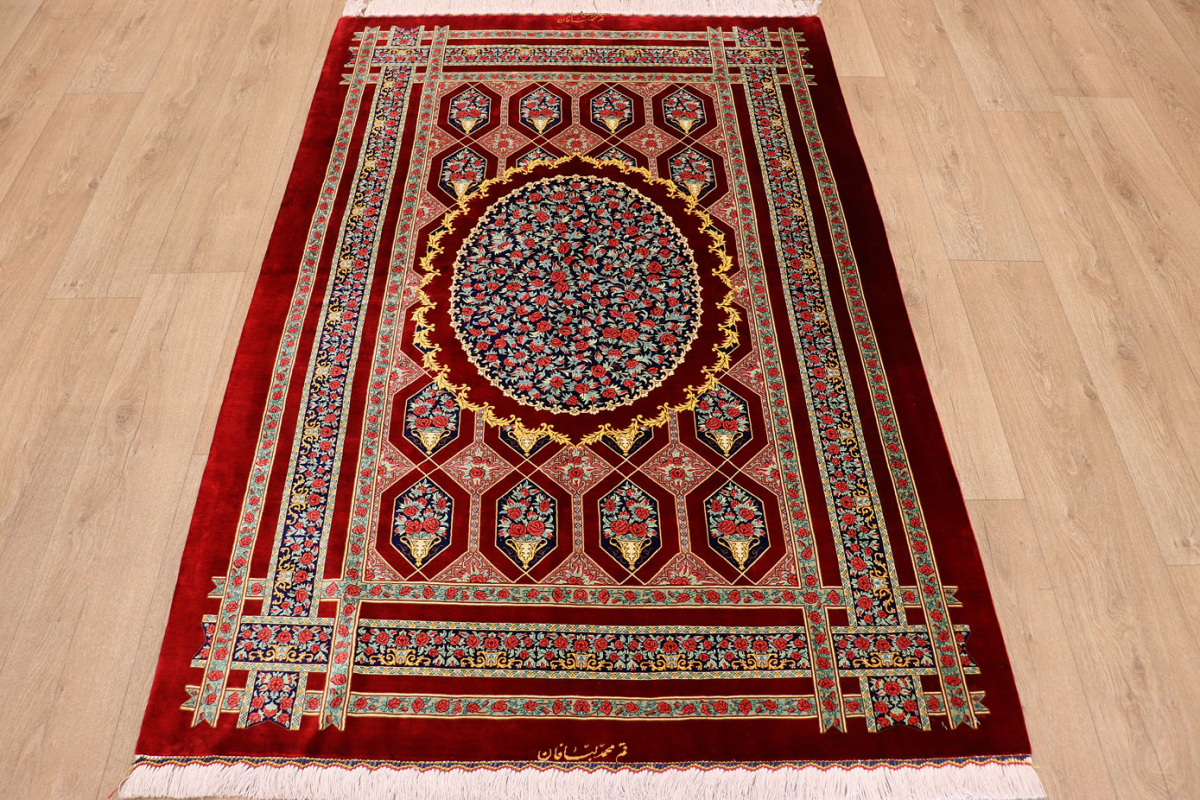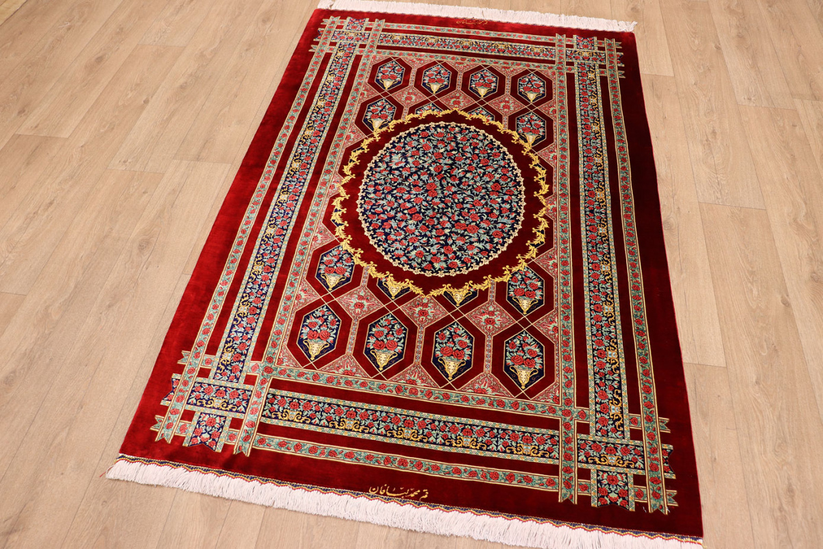 Exklusiver Seidenteppich Ghom Rot 200x130 cm