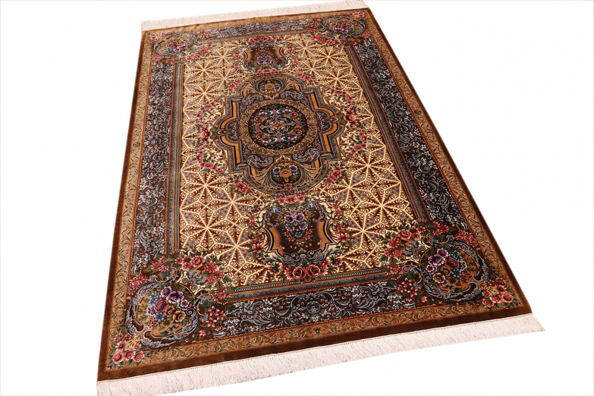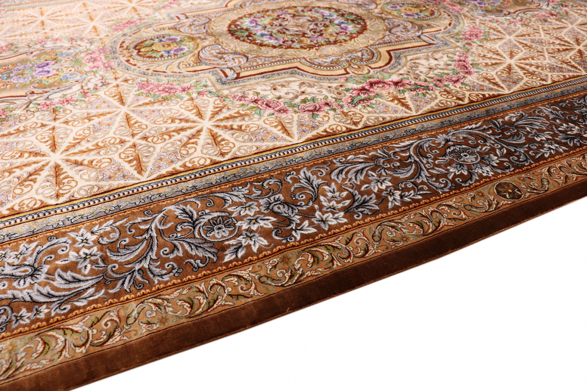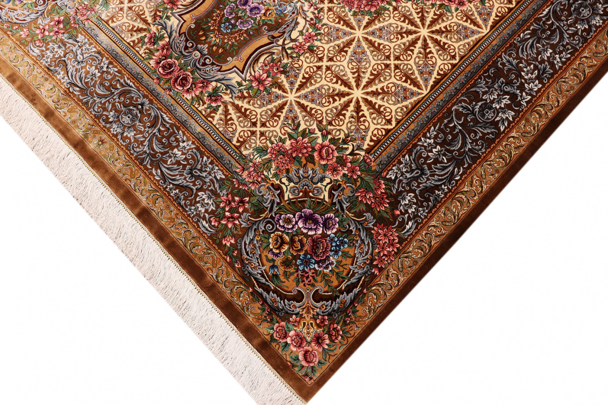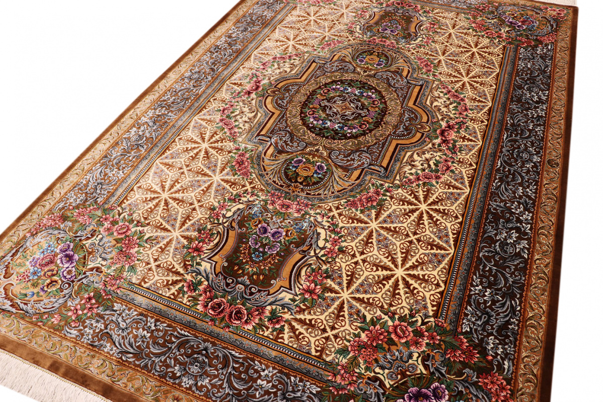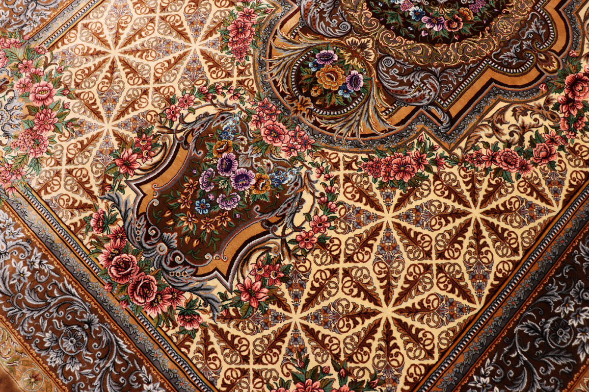 Exklusiver Seidenteppich Ghom Braun 208x136 cm