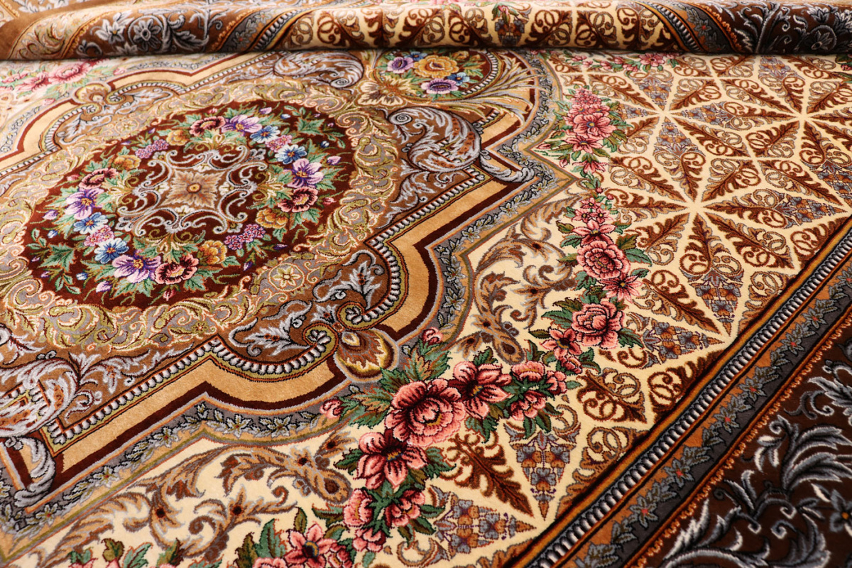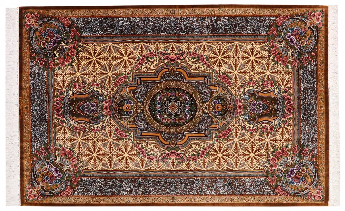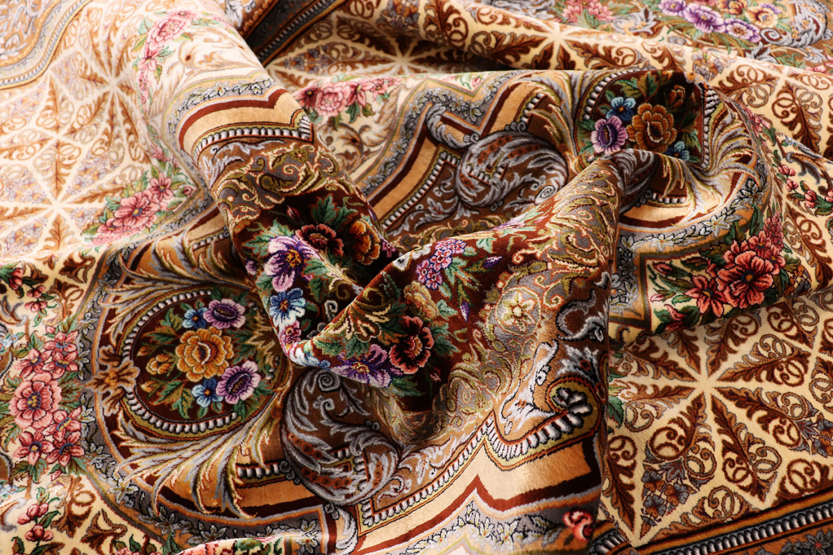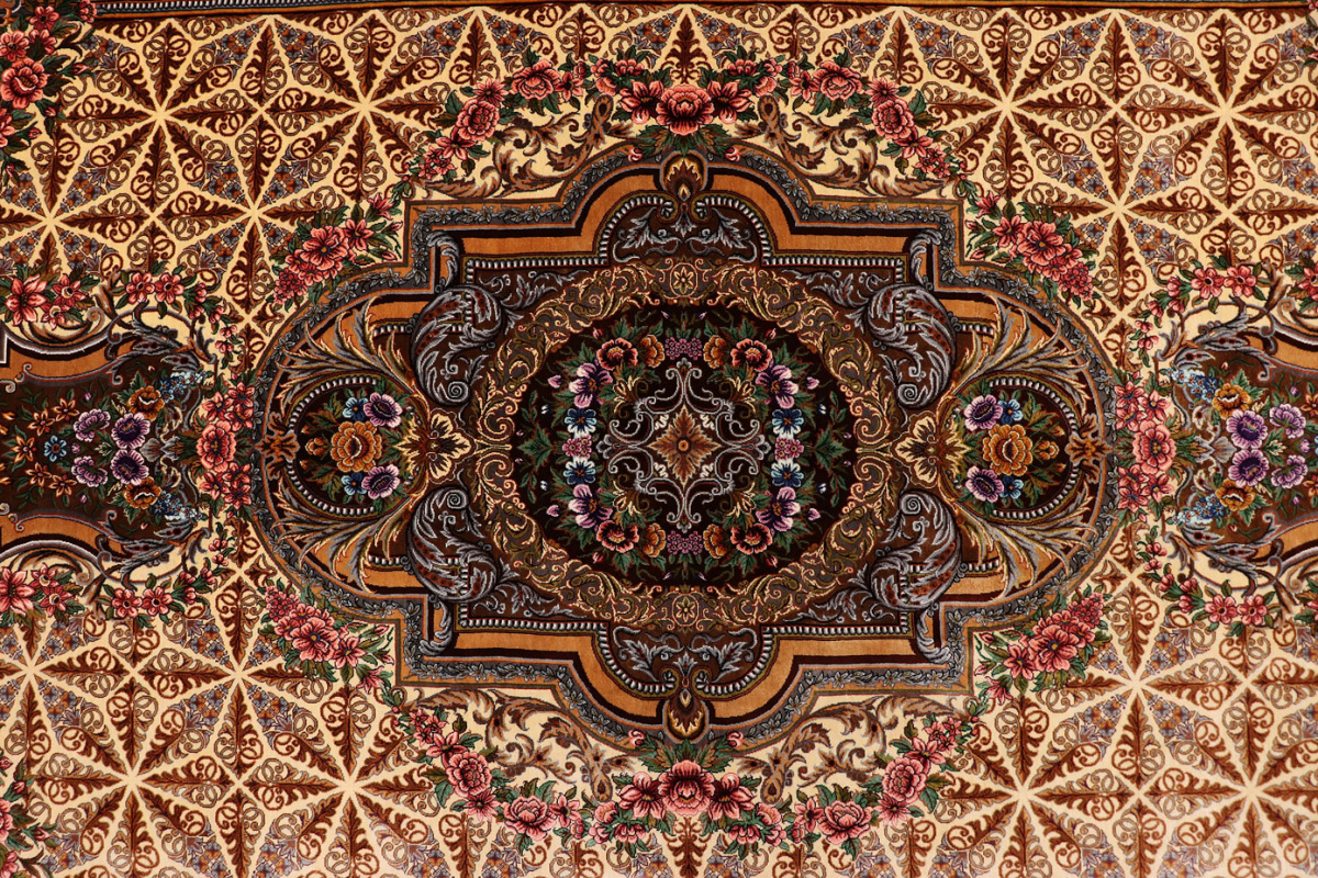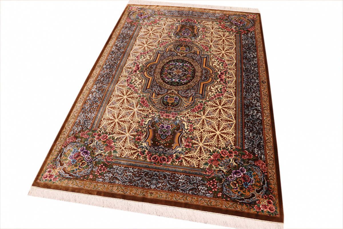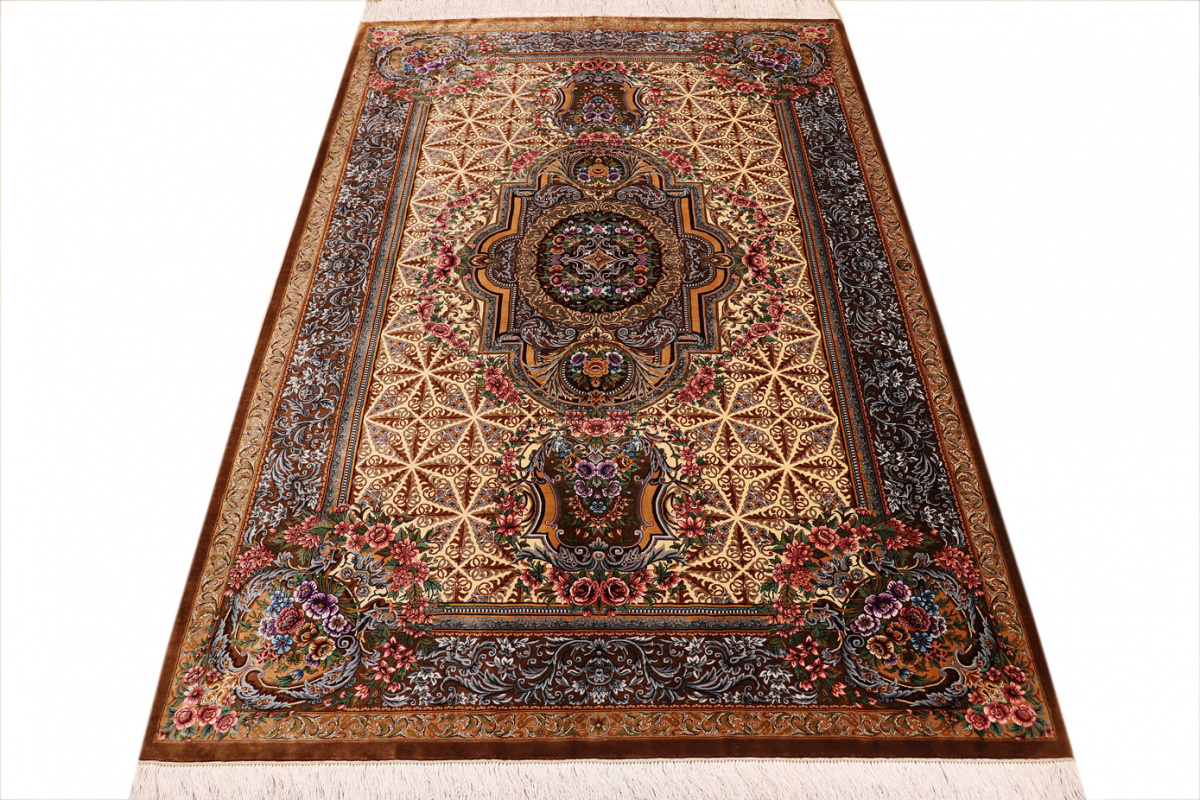 Exklusiver Seidenteppich Ghom Braun 208x136 cm