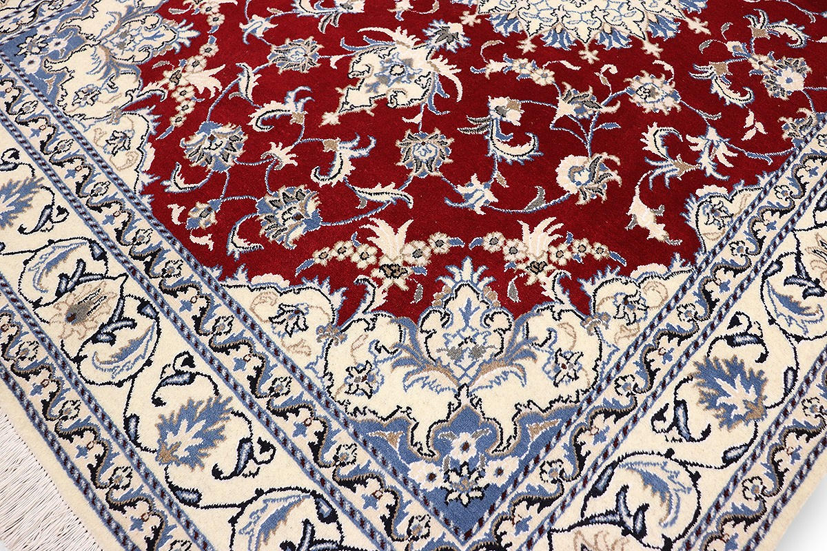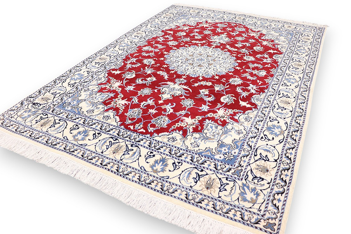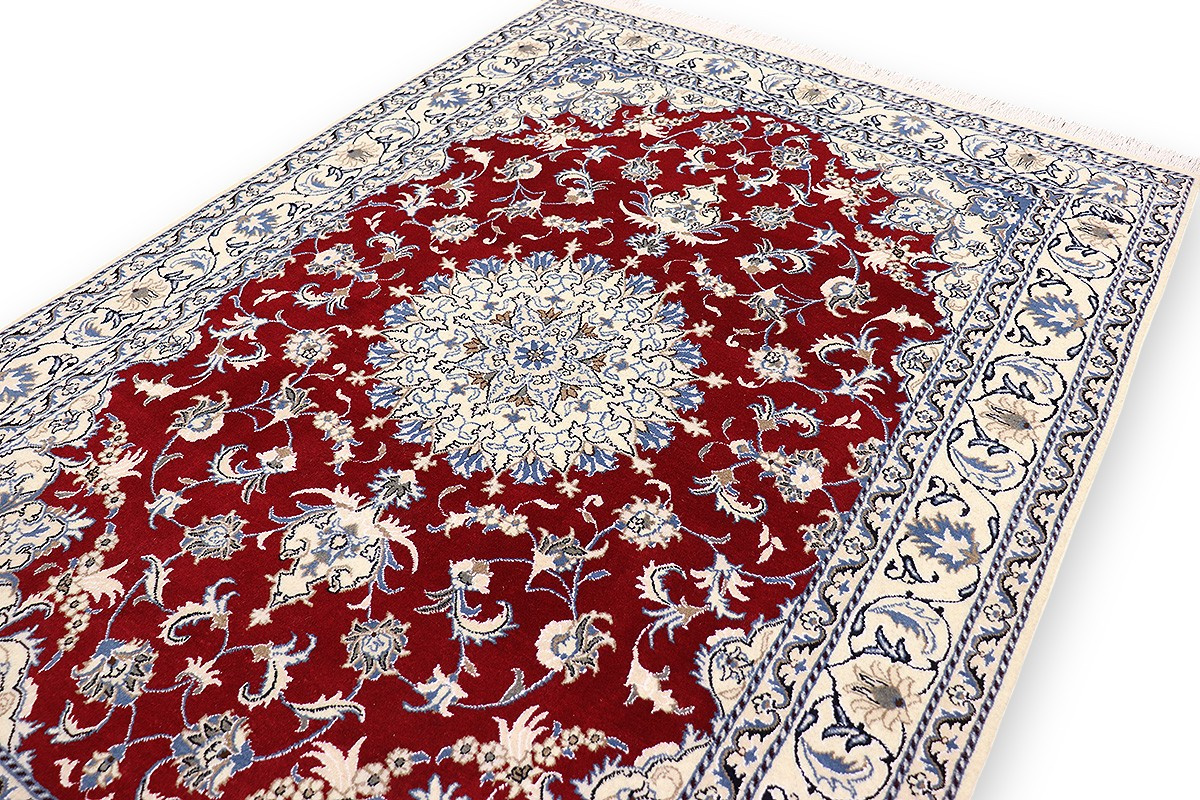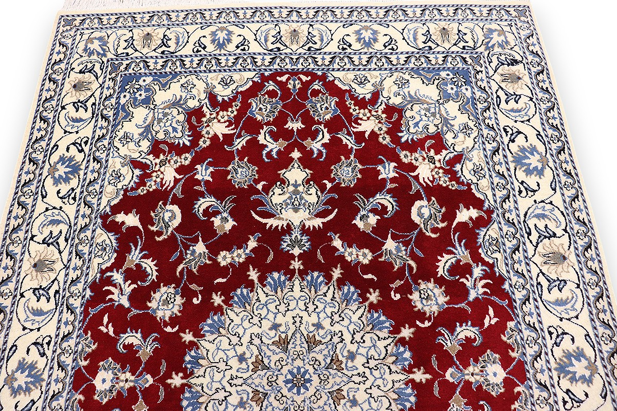 Die Stadt Nain in der Nähe von Isfahan im Zentralpersien ist bekannt für ihre feinen Teppiche, die mehr als eine Million Knoten pro Quadratmeter haben können. Je feiner die Kette, desto feiner kann auch die Knüpfung sein. In der Regel gibt es vier Qualitäten: Nain-Kaschmar (grob geknüpft), Nain-Noh-La (Baumwollfaden der Kette aus 9 Fasern gezwirnt, wodurch 40 Raj auf 7 cm kommen), Nain-Schisch-La (6 Fasern entsprechend 60 Raj), Nain-Tchaha-La (4 Fasern entsprechend 80 Raj). Alle Nain Teppiche sind durchgemustert und mit Medaillon.